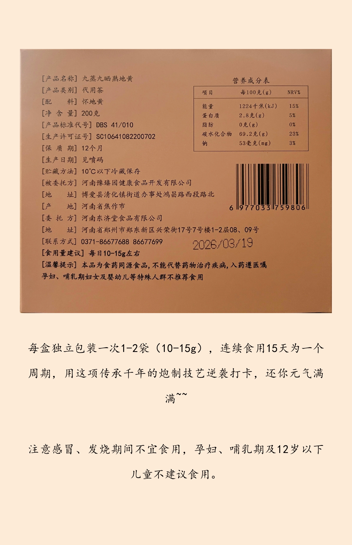 东济堂 九蒸九晒怀地黄,油足肉厚, 滋补上品 开袋即食 泡水煲汤