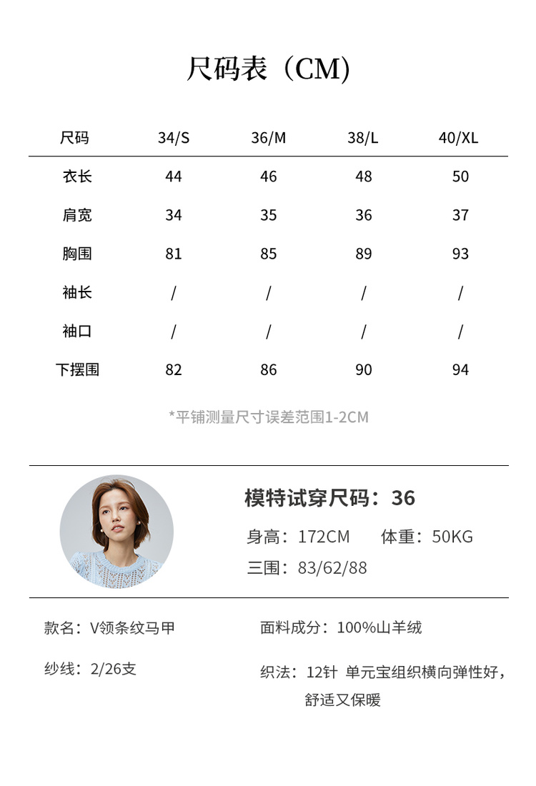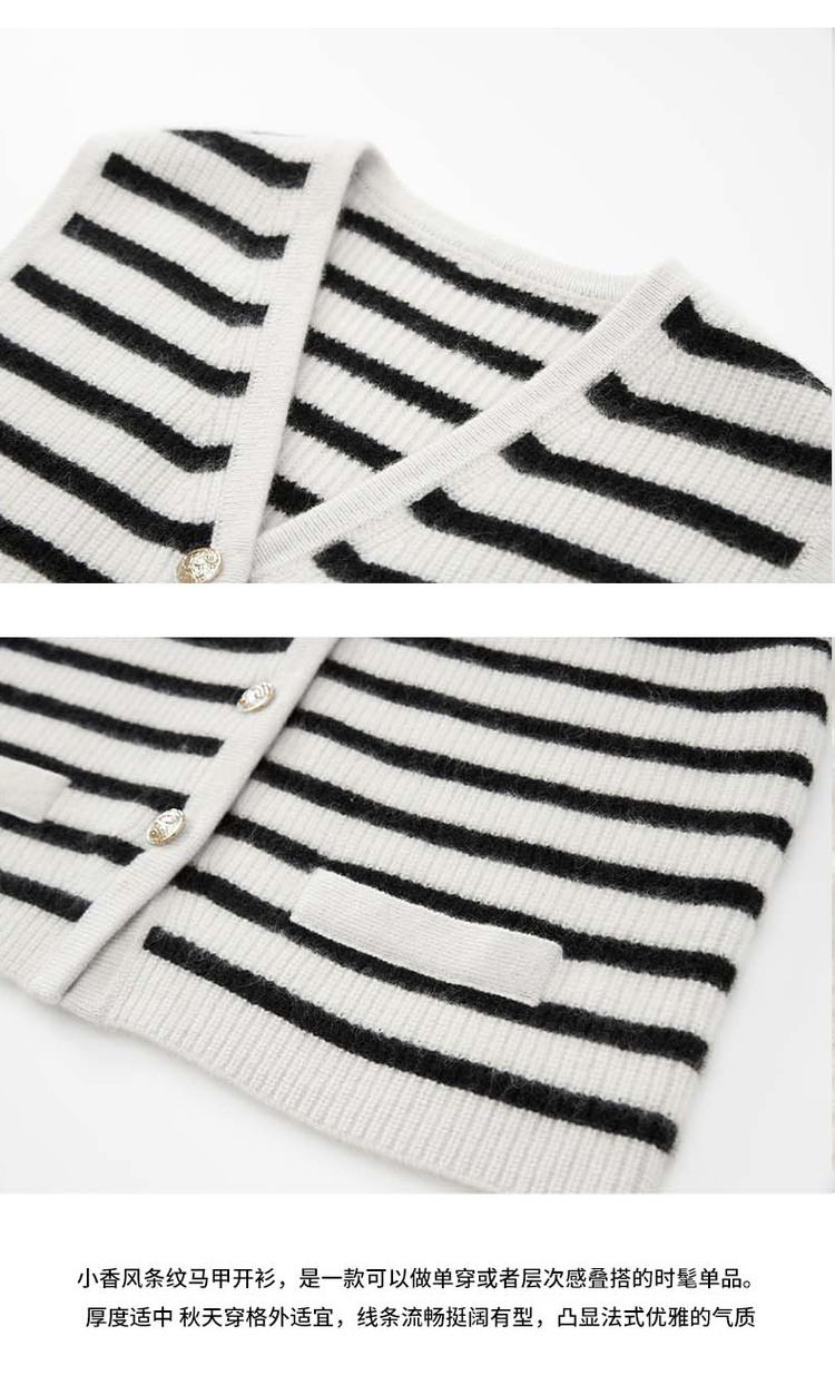 现货VogoPetitev领条纹马甲100%山羊绒BP131E1407