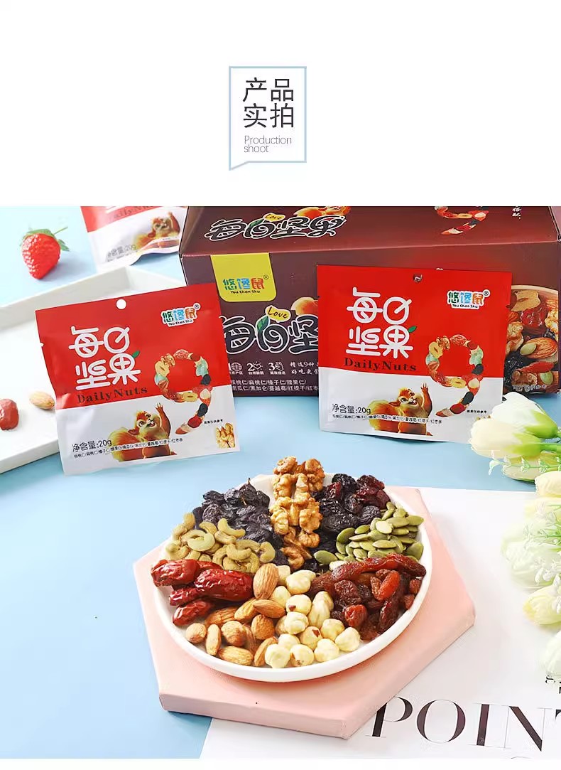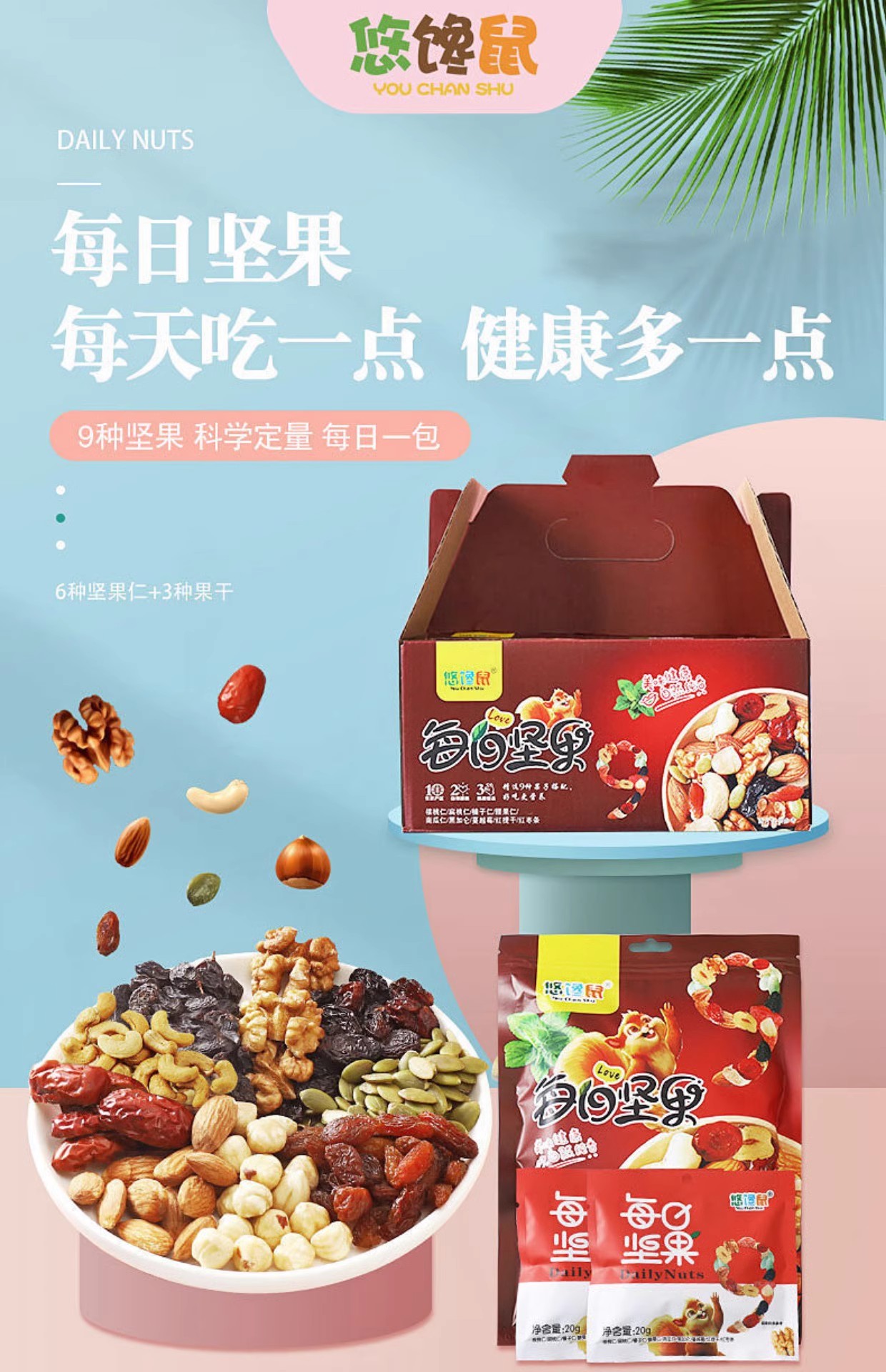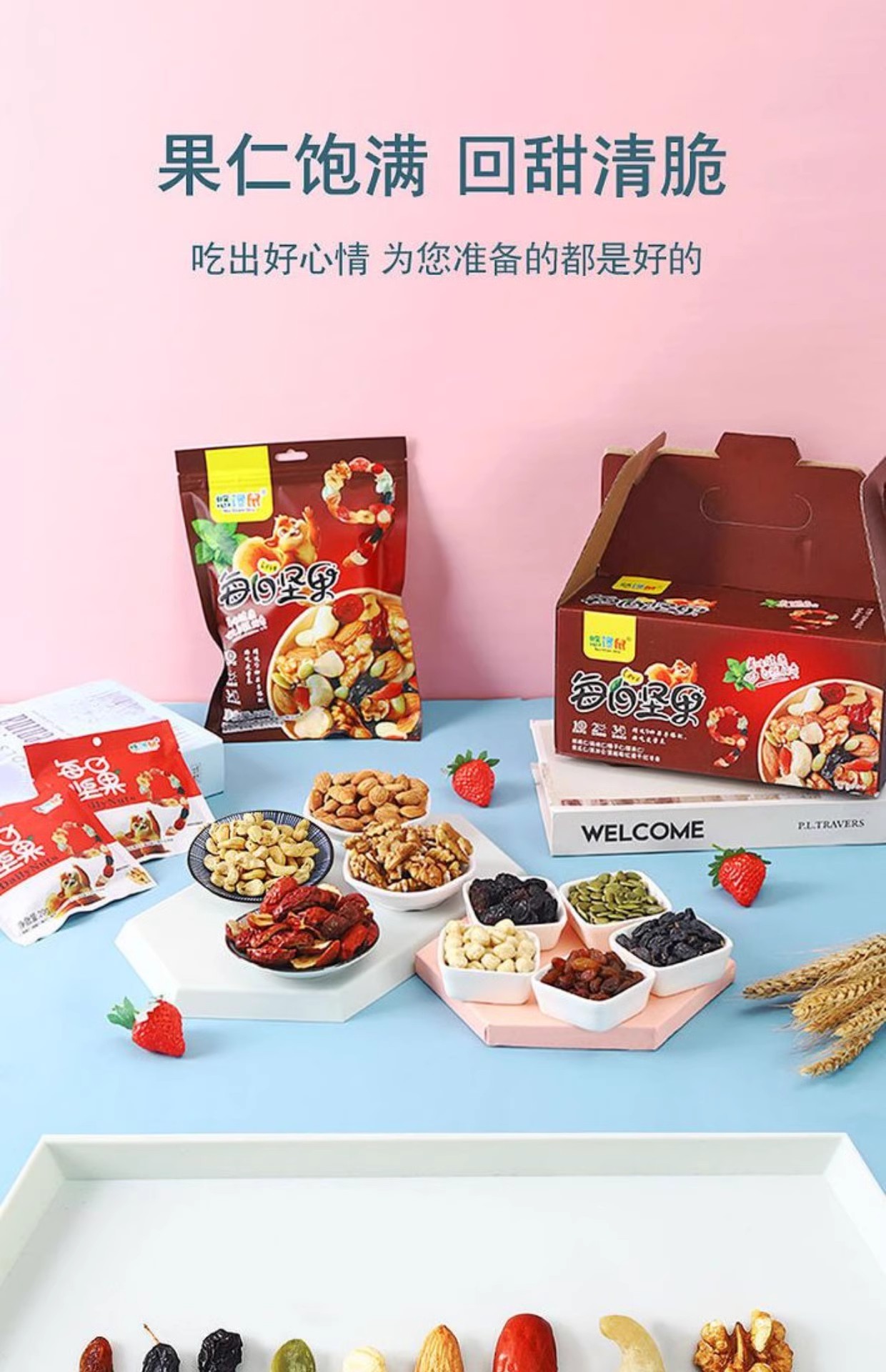 【果仁饱满,回甜清脆!】每日坚果年货大礼包,30包600g礼盒装,九种坚果混合儿童网红休闲零食,外观时尚、可爱!