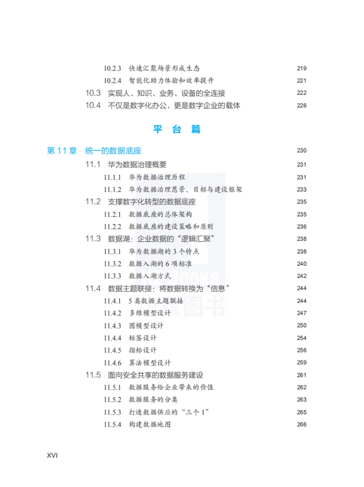 第11章给出了华为数据底座的整体框架和构建策略,分别介绍了数据湖和数据主题联接的建设实践,并提出了通过数据服务来促进数据消费。