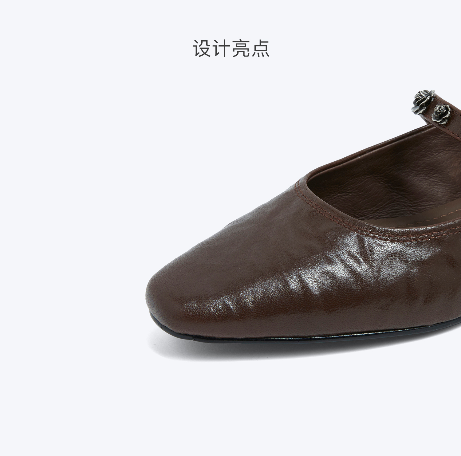 康莉KYQ51029商场同款粗跟真皮玛丽珍鞋女低跟复古优雅小皮鞋