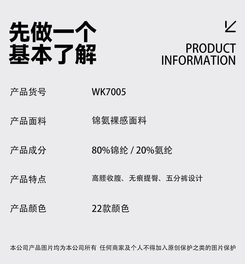 跃牌【轻匀系列】新款NS裸感五分瑜伽裤女夏季无T紧身高腰提臀健身瑜伽短裤WF7005