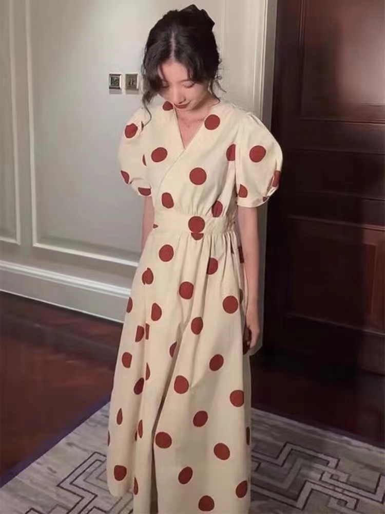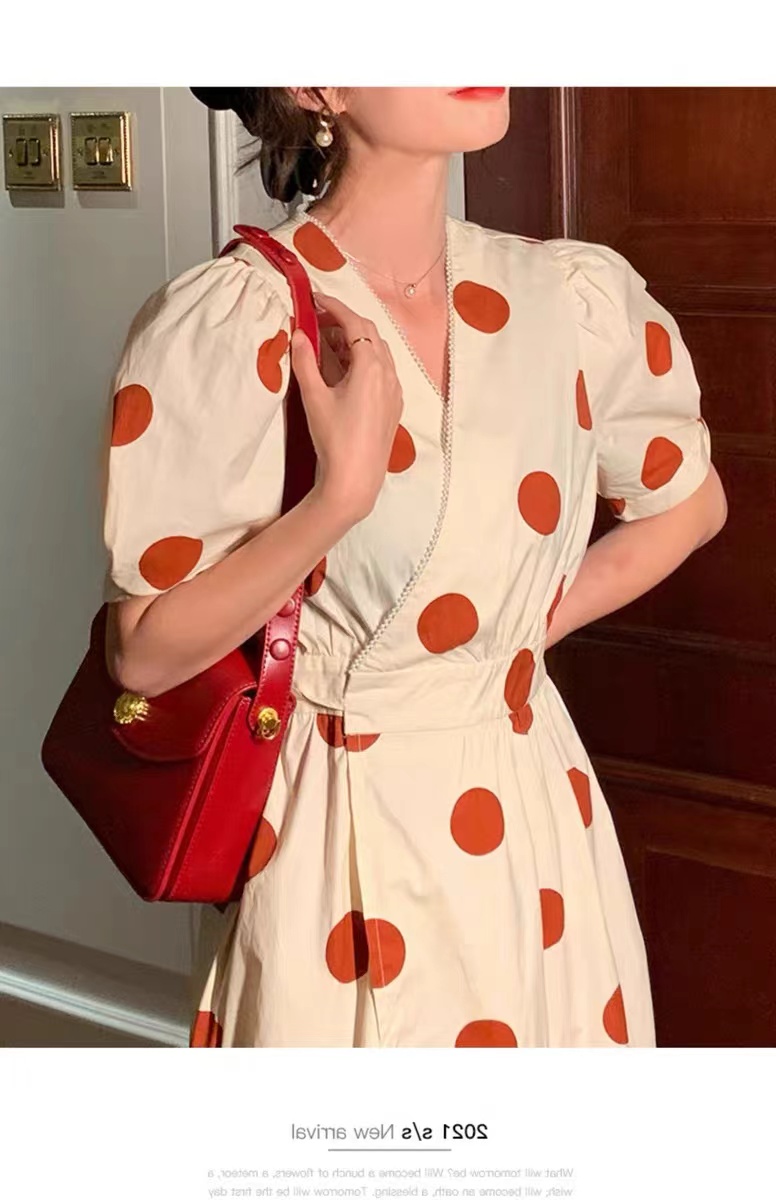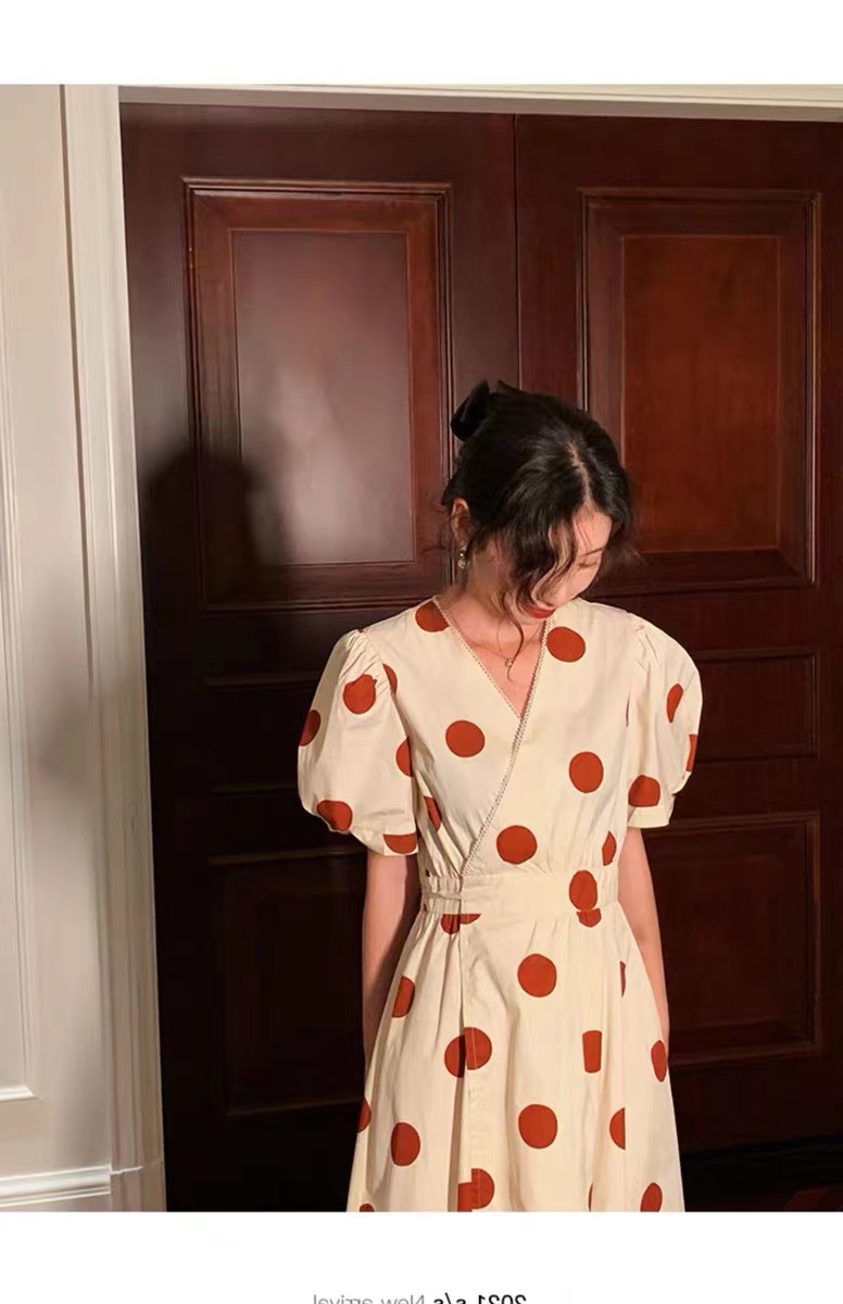 NO 退→样衣清仓(微瑕)!一片式波点V领连衣裙—喜出