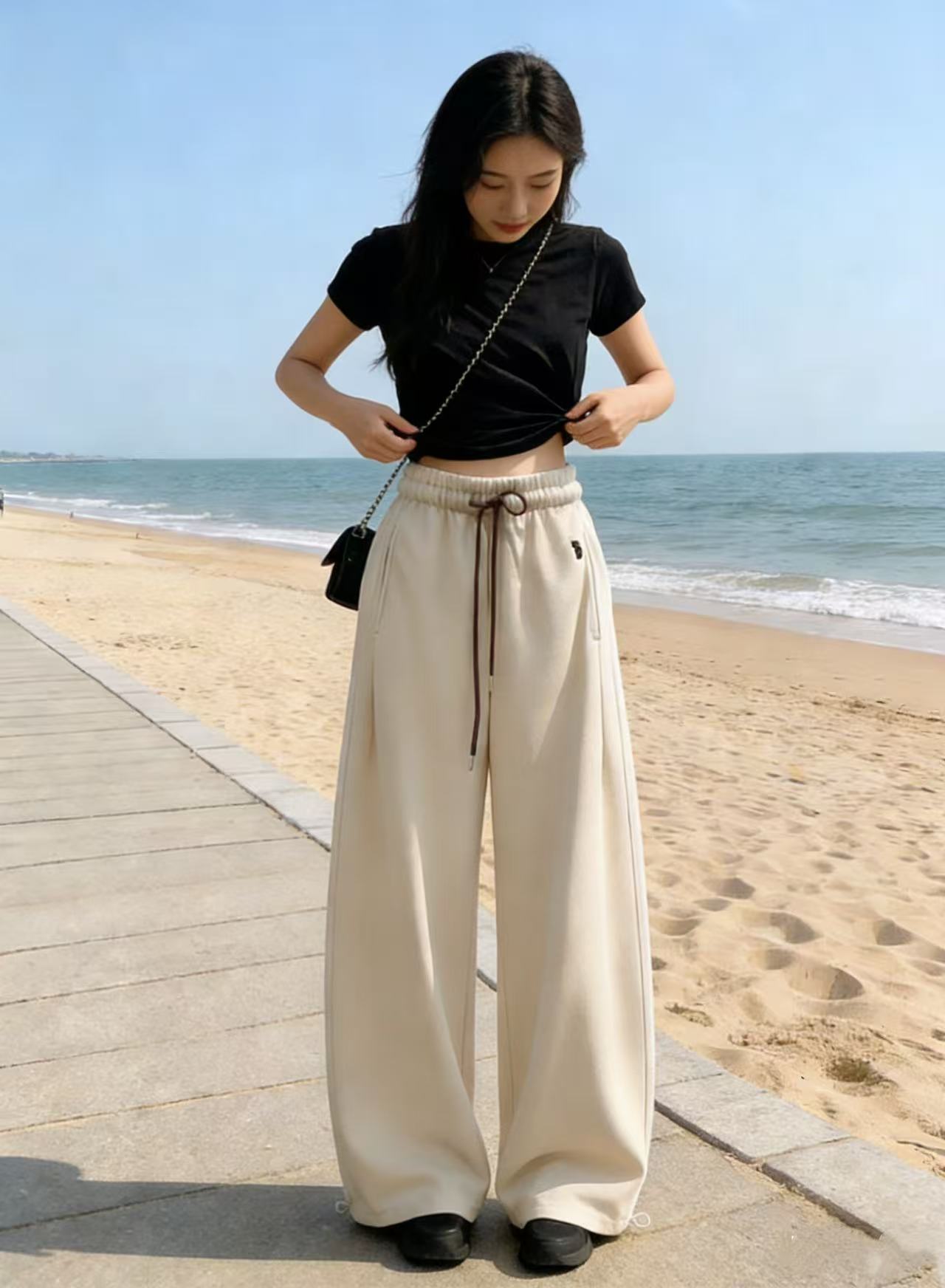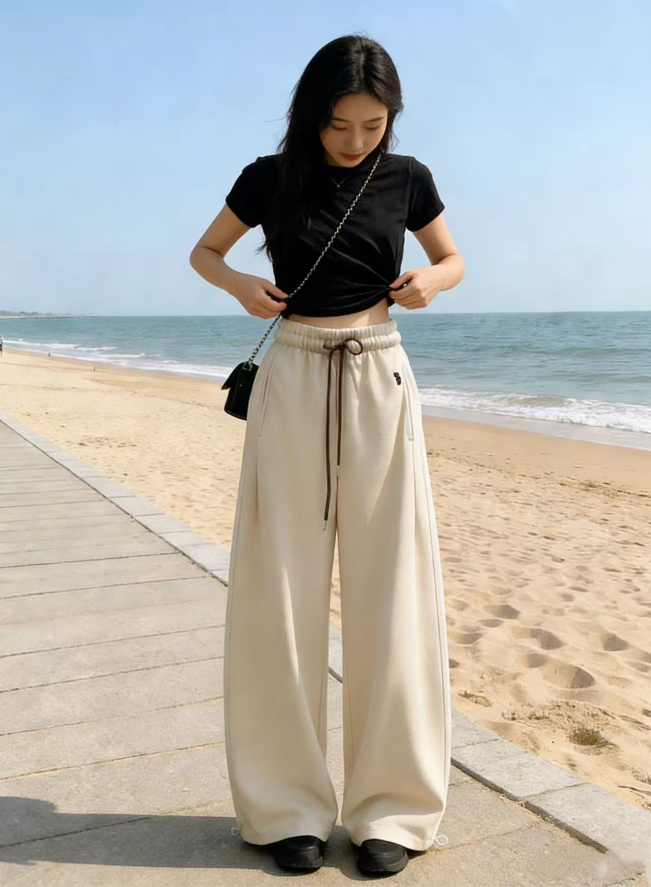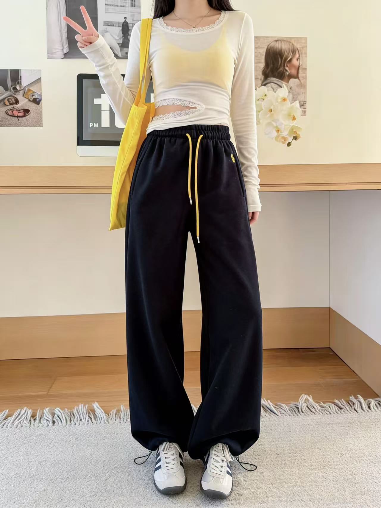 418良粉节|2026 活动爆款 【自营】6117爆款两穿休闲裤小码刺绣撞色腰绳休闲直筒裤-喜出