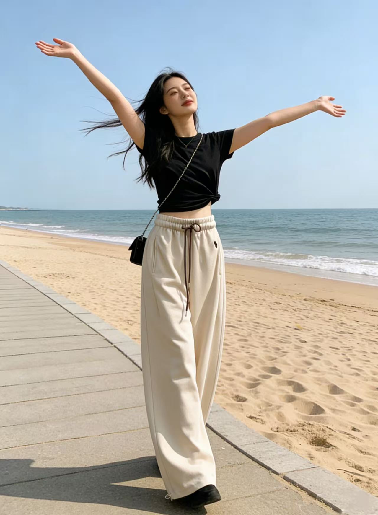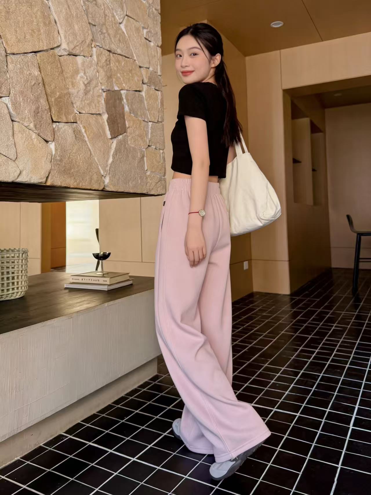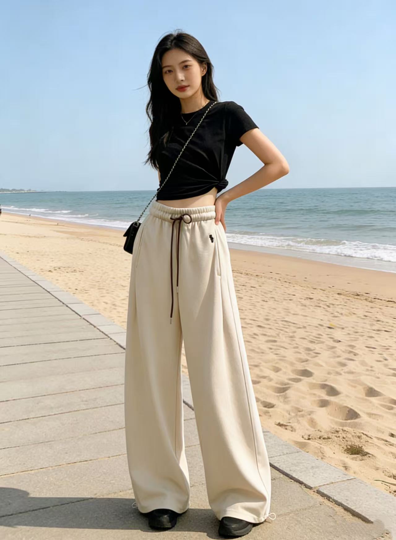 418良粉节|2026 活动爆款 【自营】6117爆款两穿休闲裤小码刺绣撞色腰绳休闲直筒裤-喜出