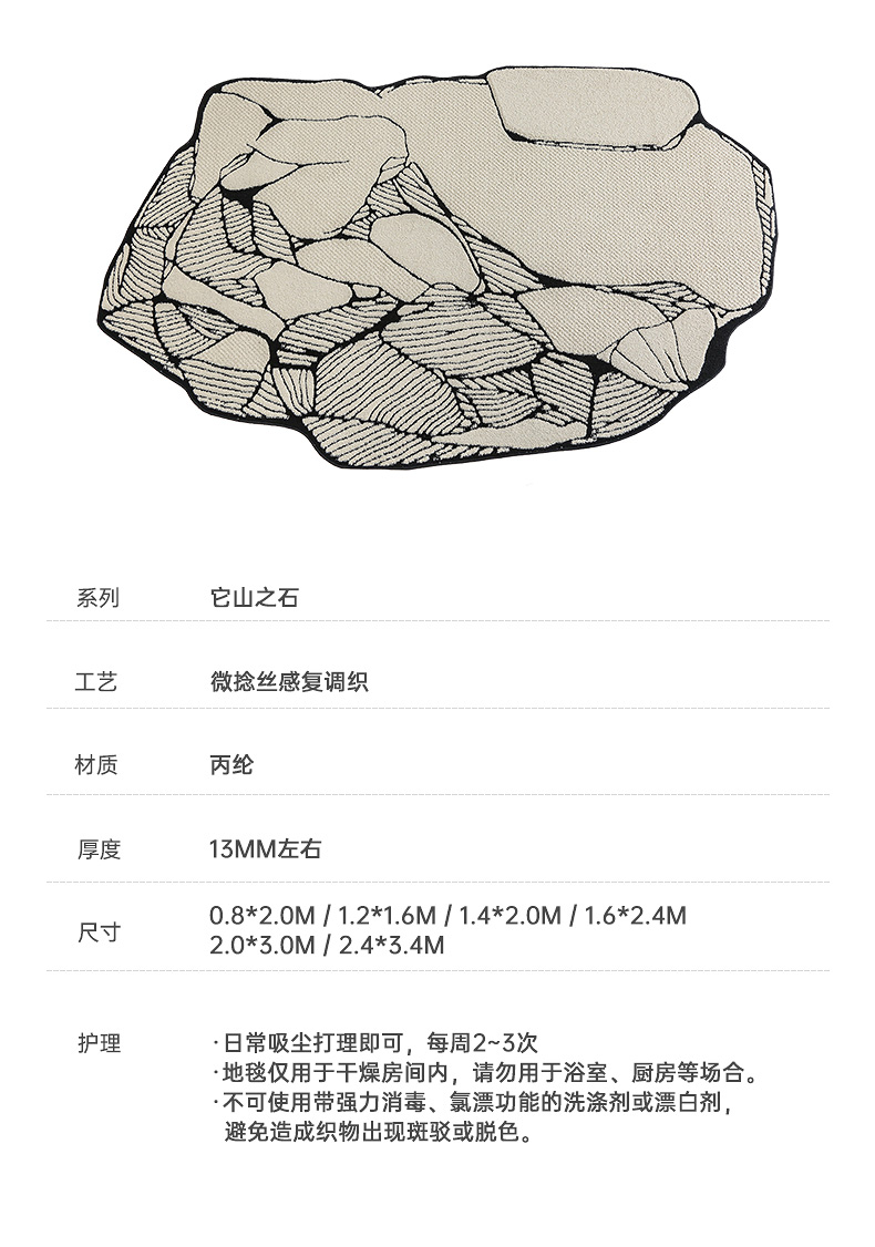 陌希 它山之石不规则高级地毯客厅整铺卧室房间床边