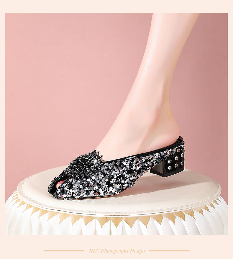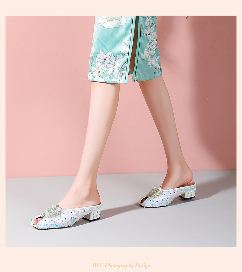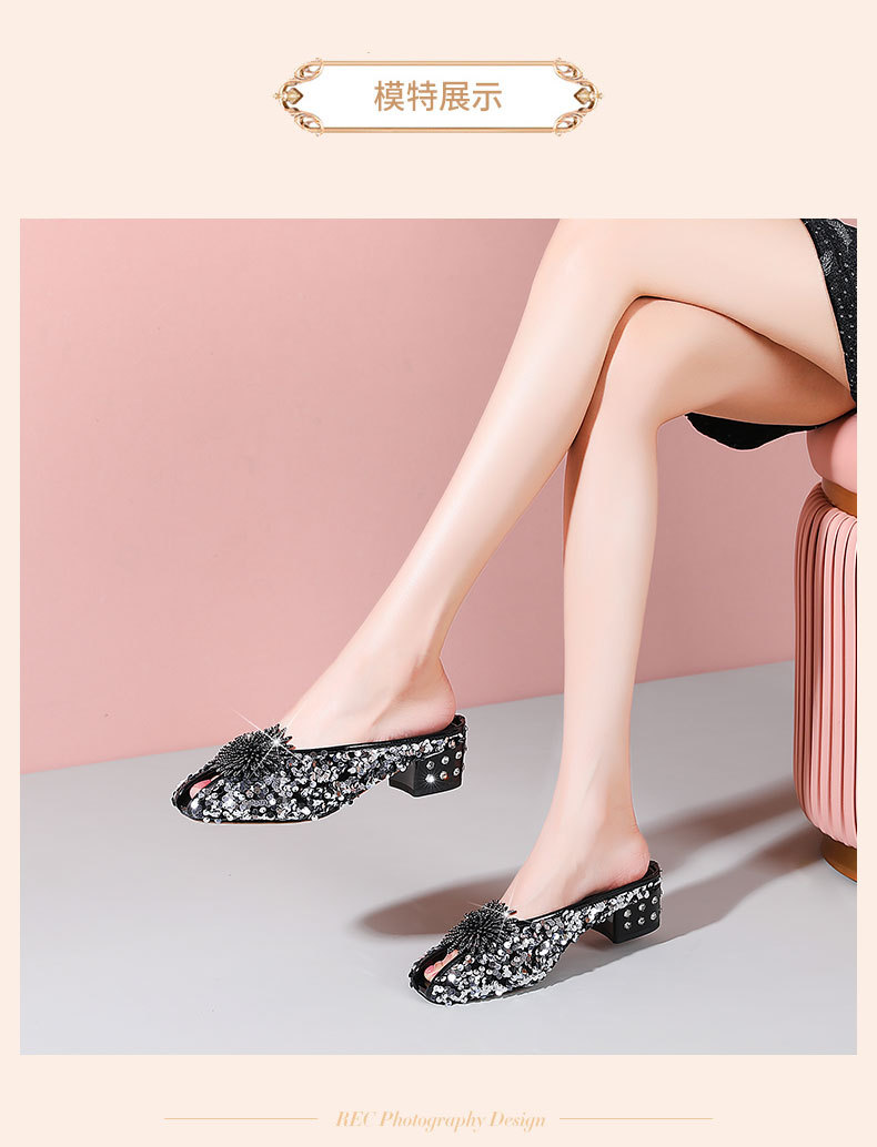 时尚外穿中跟鱼嘴半拖鞋懒人穆勒鞋YSML-A096-201