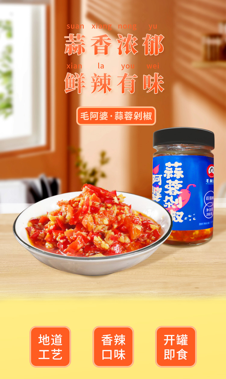 【湖南特产】毛阿婆蒜蓉剁椒218g/瓶 旅行装 携带方便