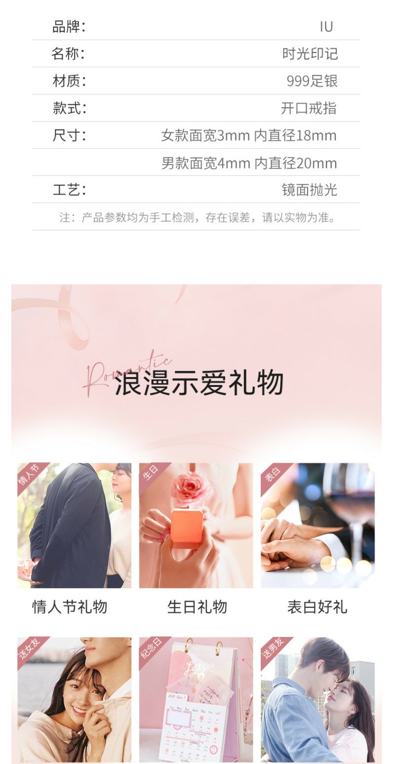 IU999足银时光印记戒指送女友闺蜜节日生日礼物