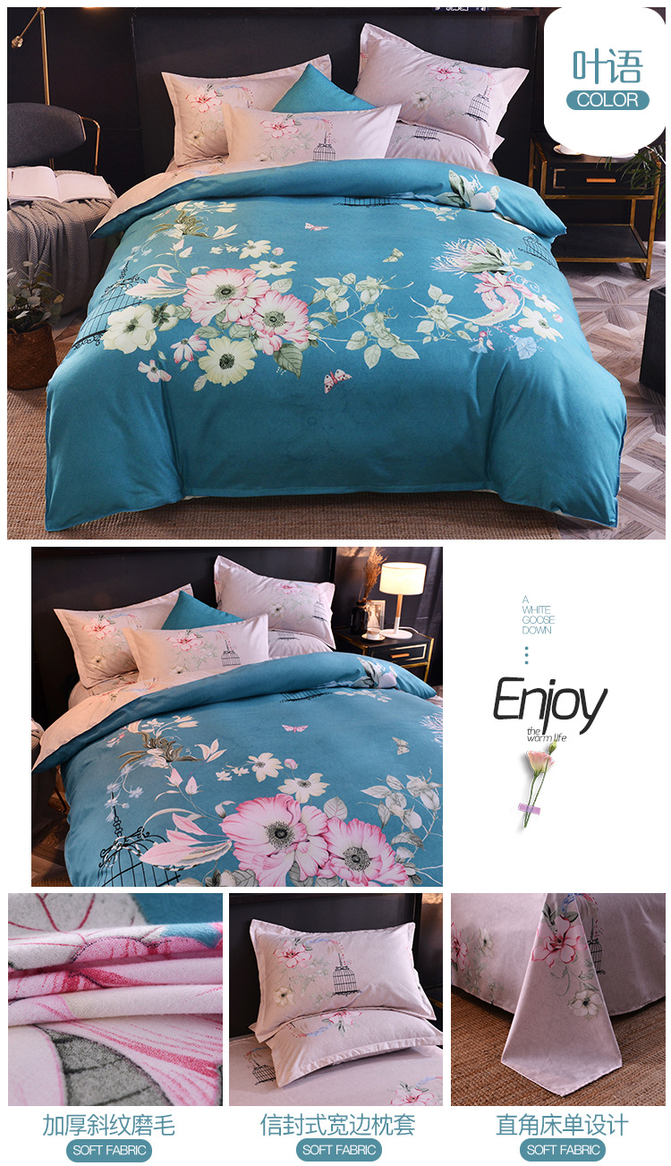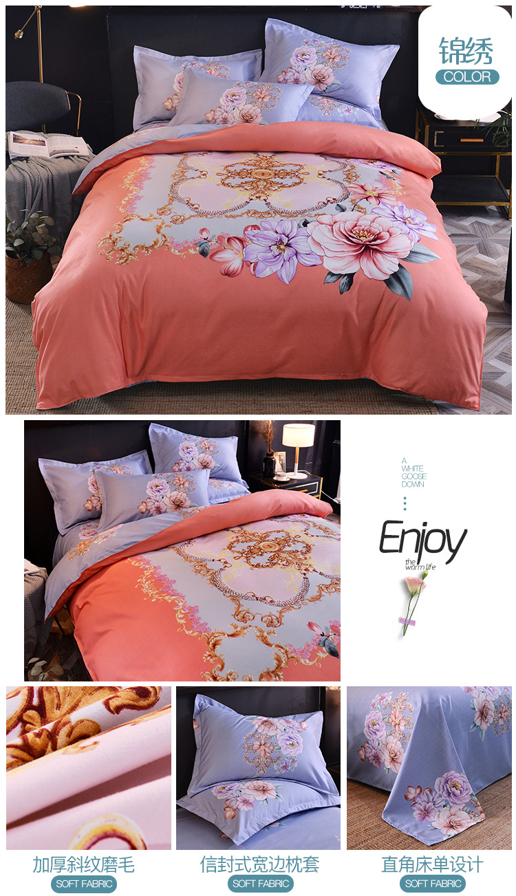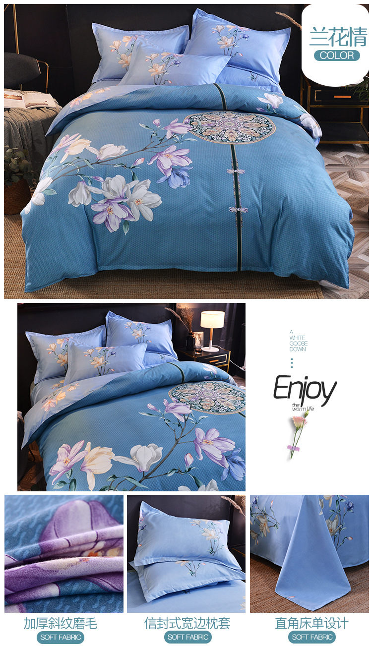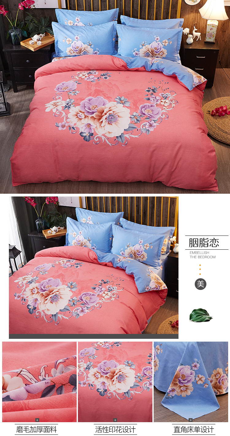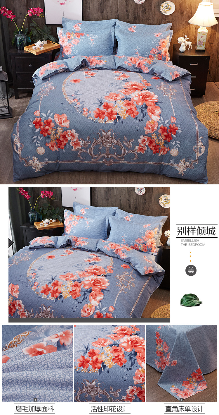 ABC-QW-18爆款活性斜纹磨毛大版花全棉四件套