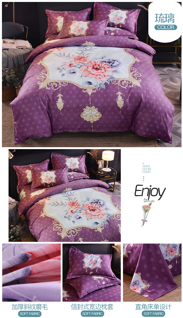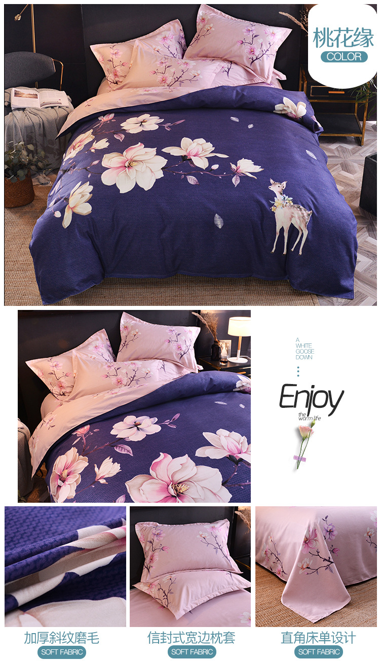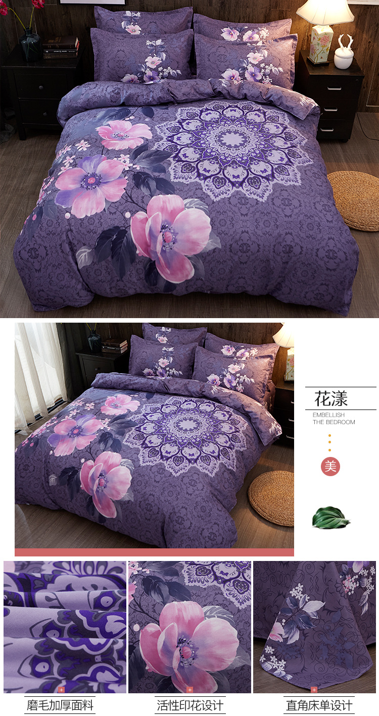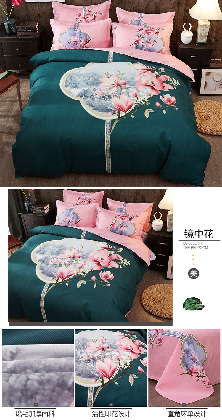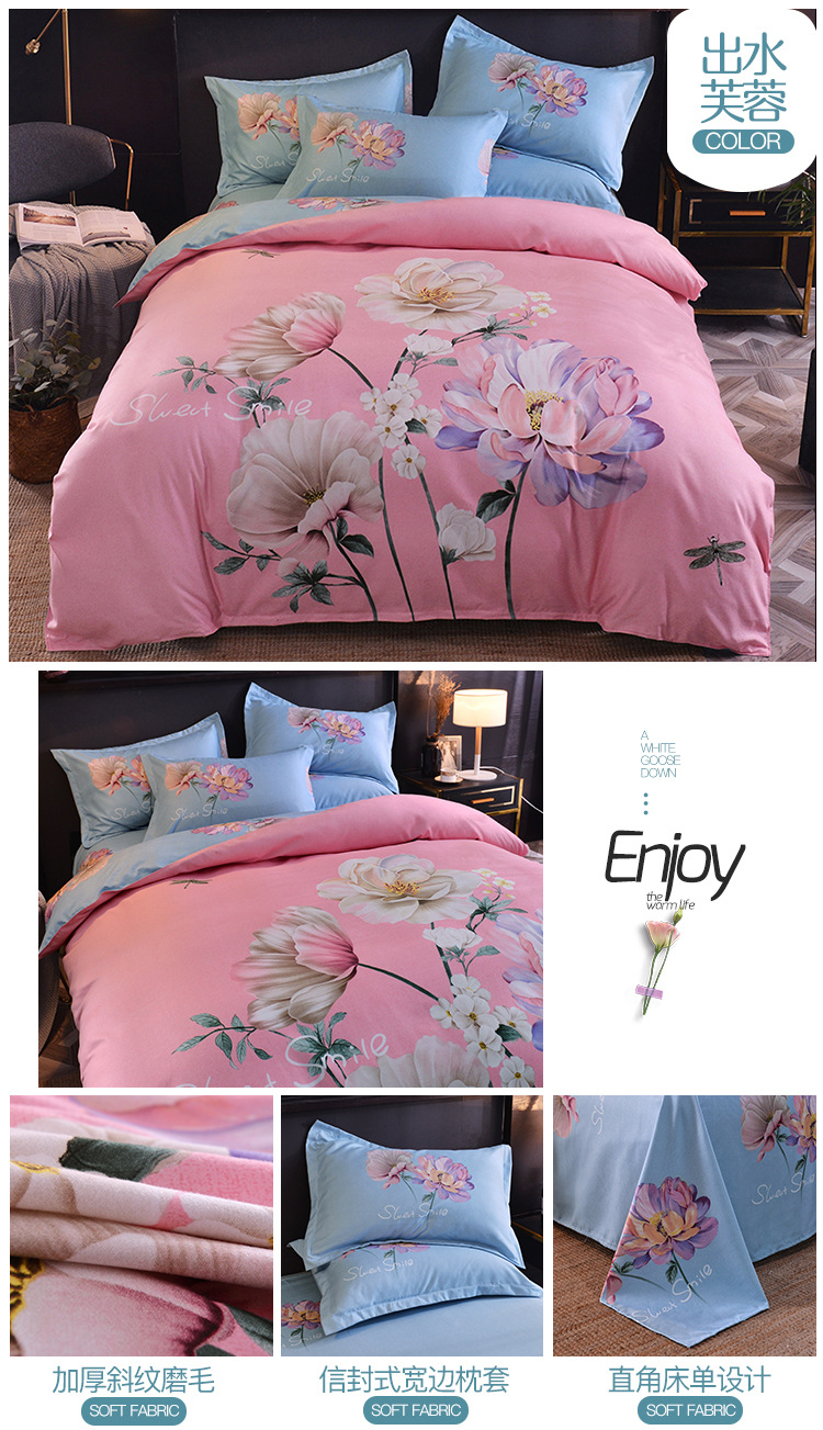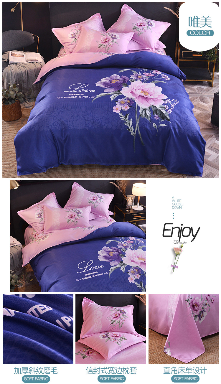 ABC-QW-18爆款活性斜纹磨毛大版花全棉四件套