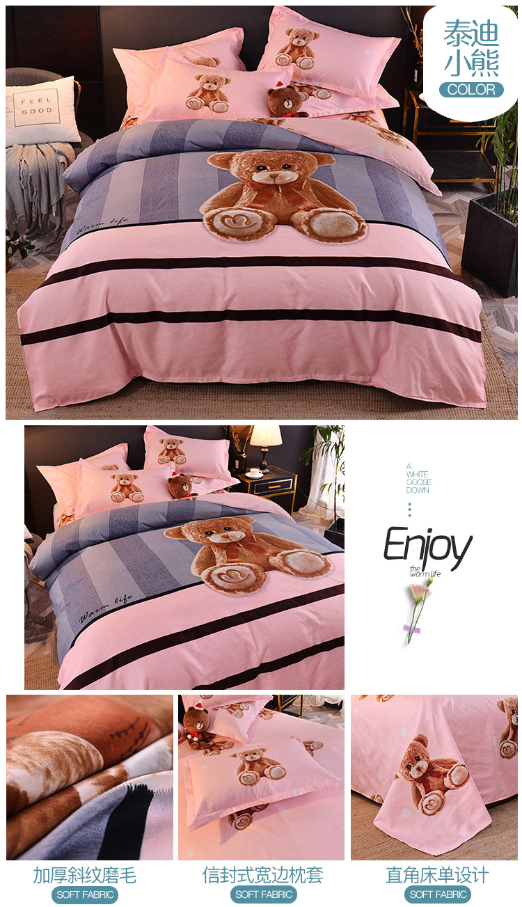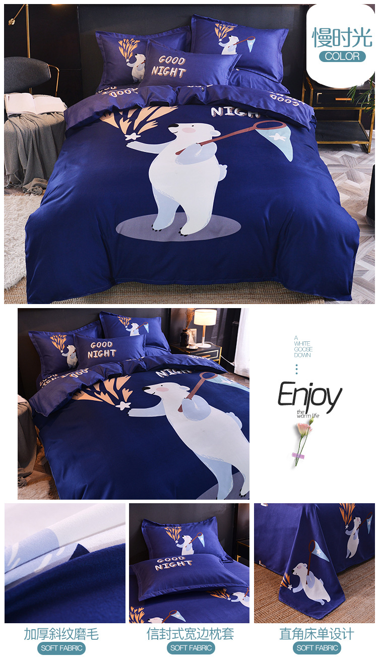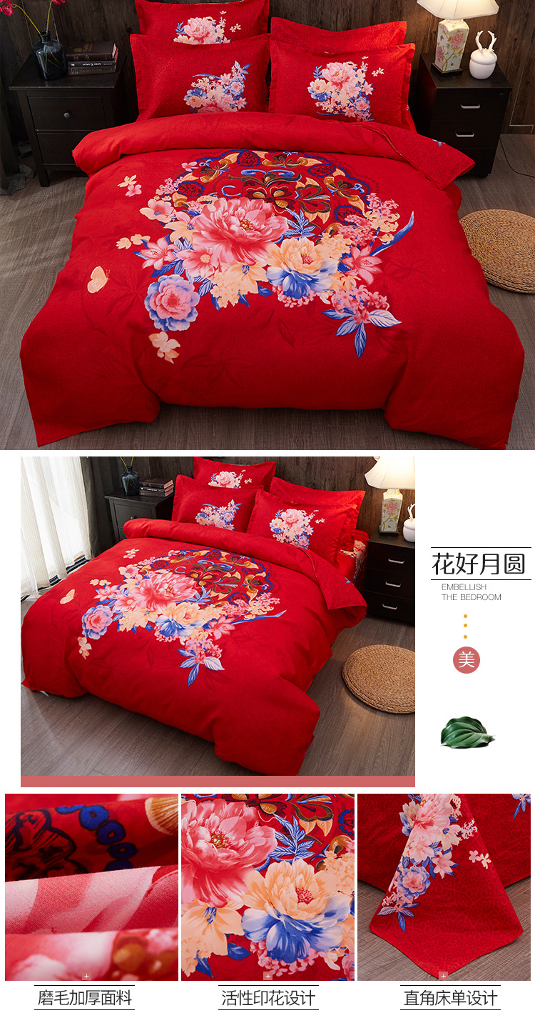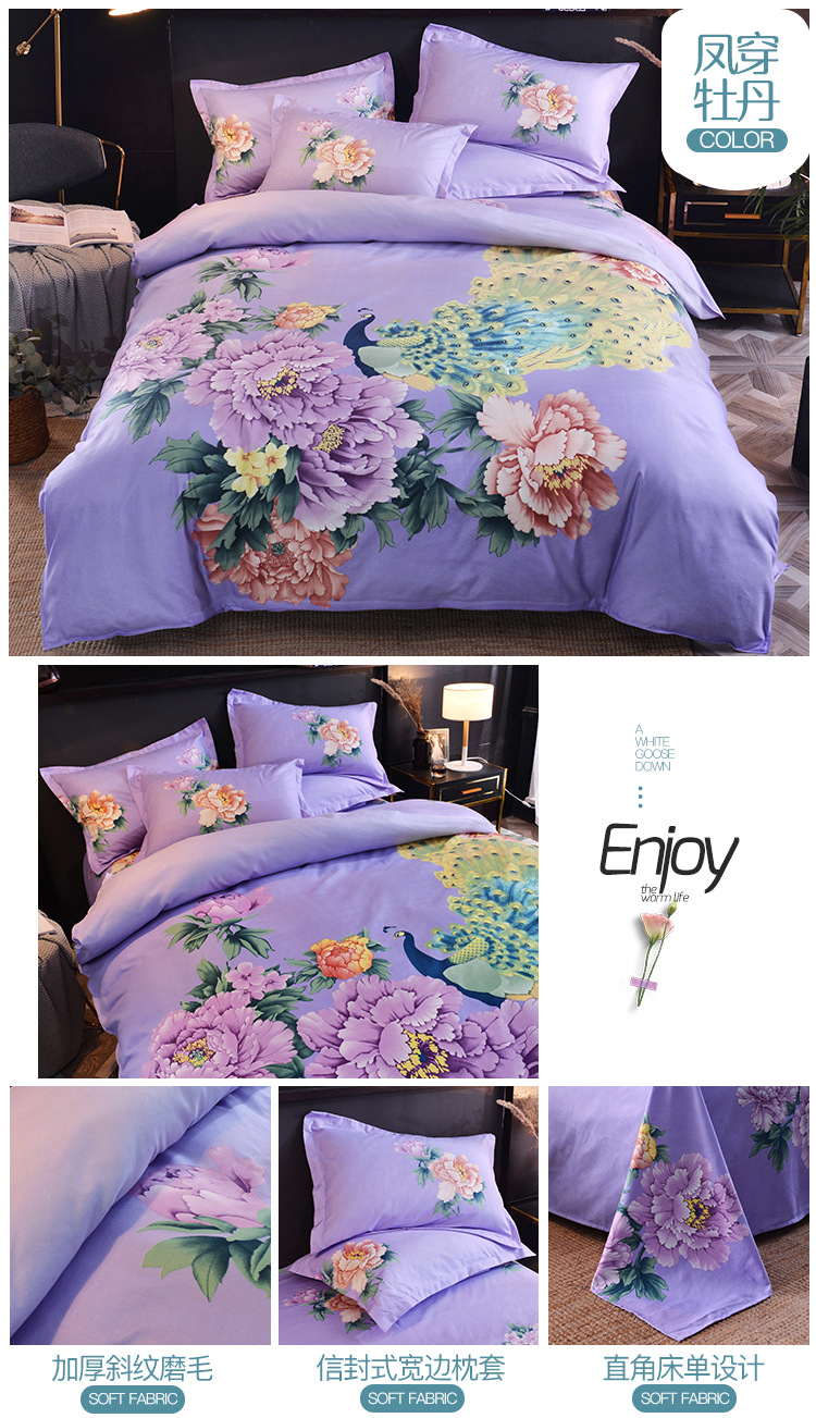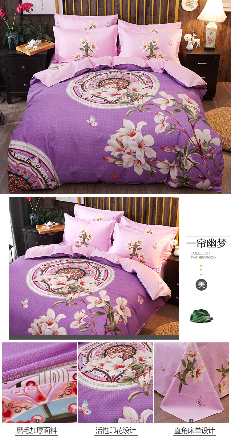 ABC-QW-18爆款活性斜纹磨毛大版花全棉四件套
