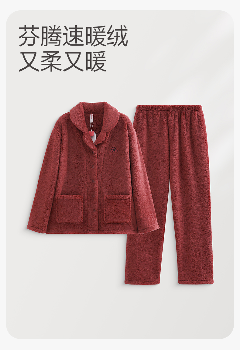芬腾女士睡衣秋冬季珊瑚绒新款套装女款加绒加厚法兰绒保暖家居服