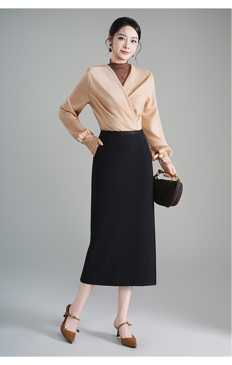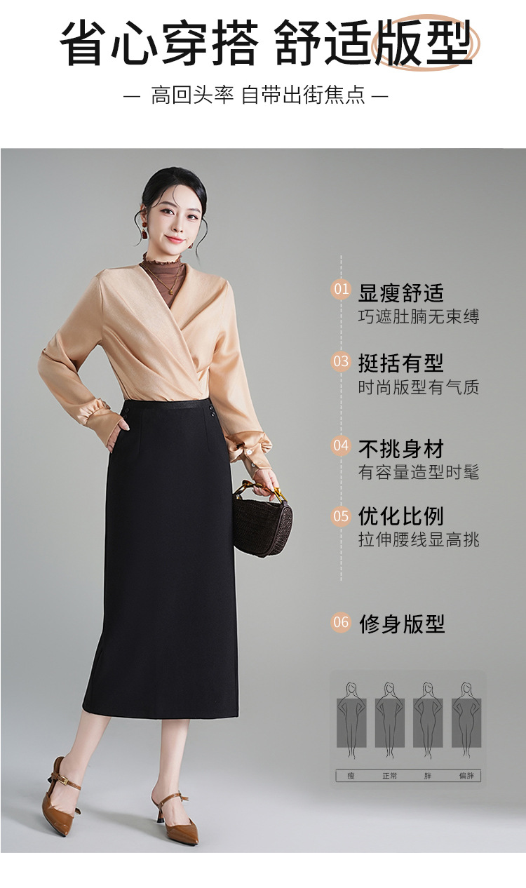 QYM 772-Y西装半身裙中长款开衩包臀裙直筒一步裙 商品图2