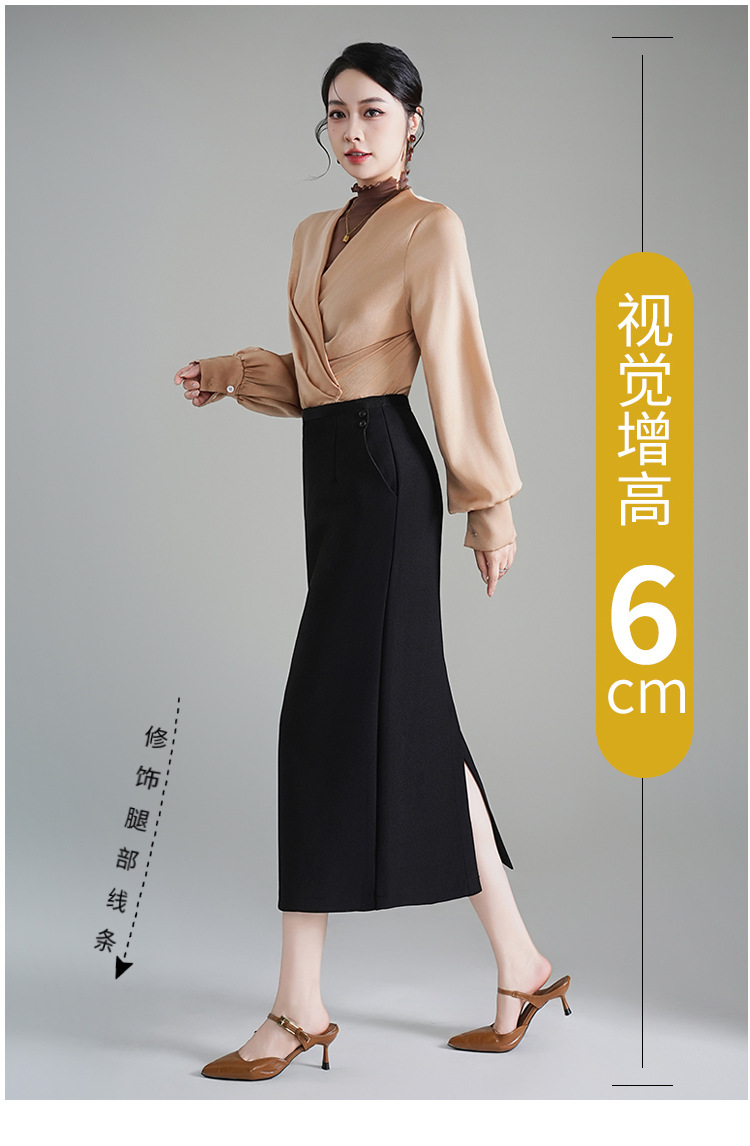 QYM 772-Y西装半身裙中长款开衩包臀裙直筒一步裙 商品图4
