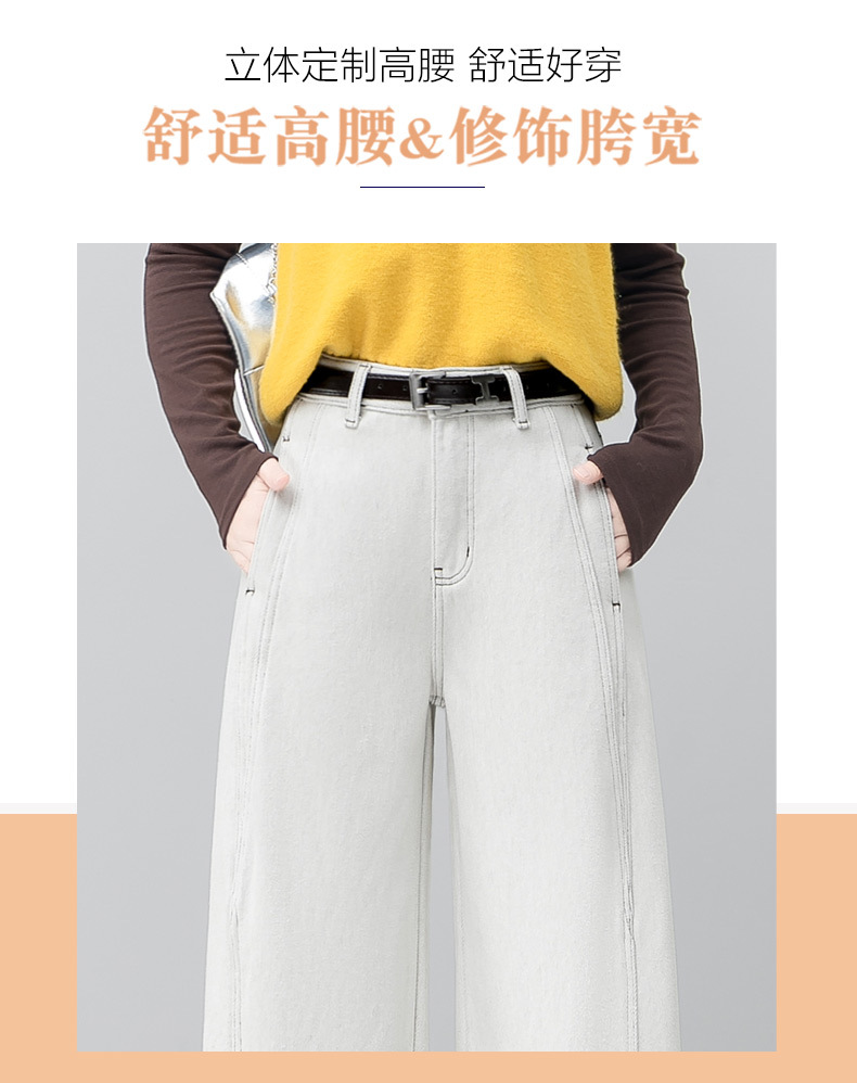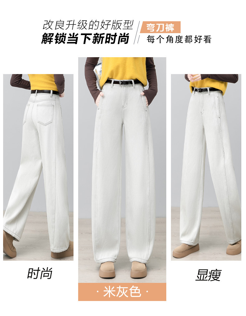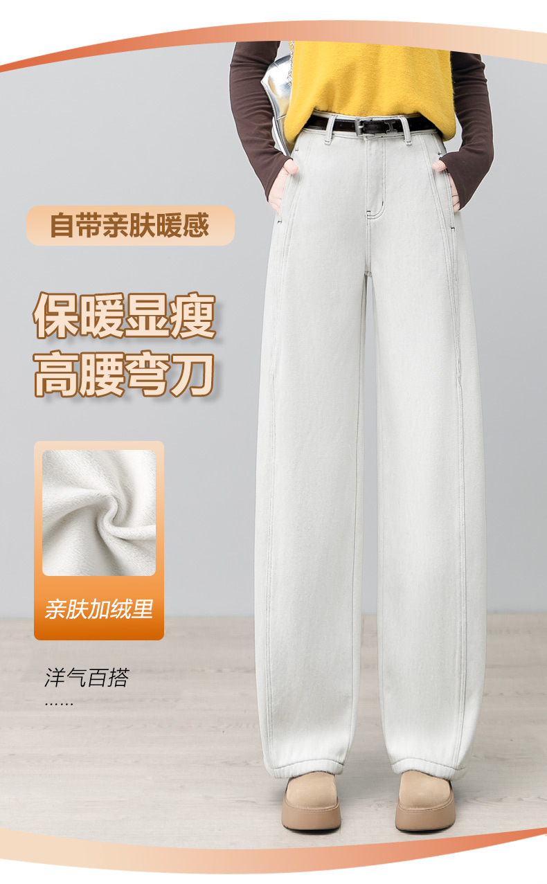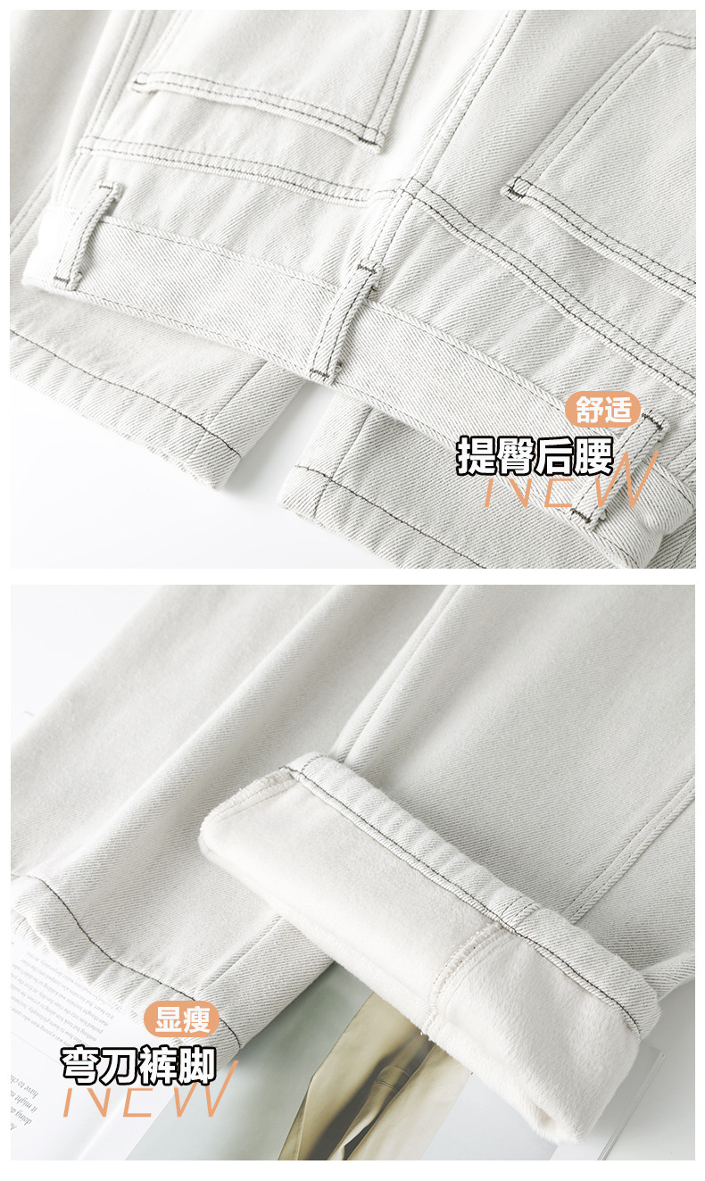YM 2846水洗棉牛仔裤加绒加厚显瘦保暖弯刀裤宽松高腰镰刀裤 商品图4