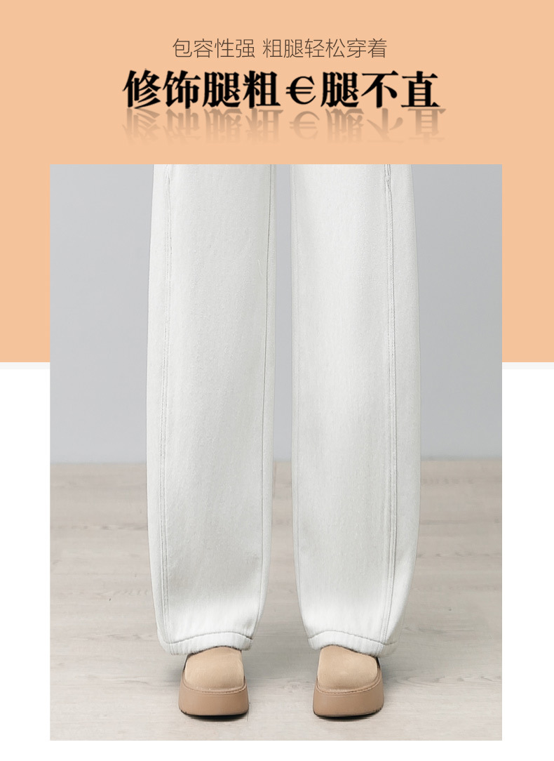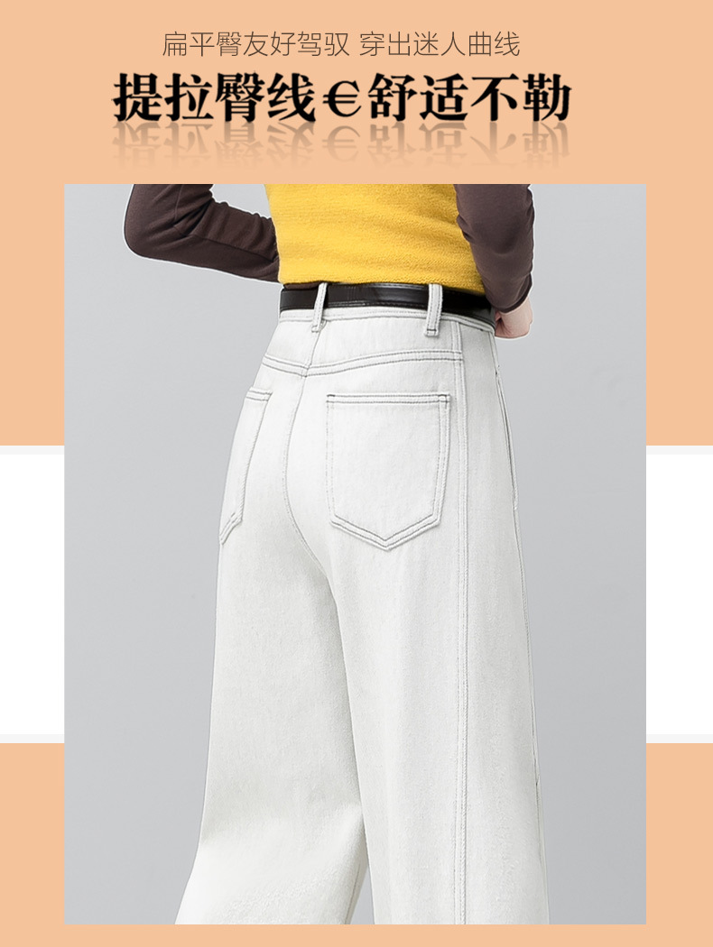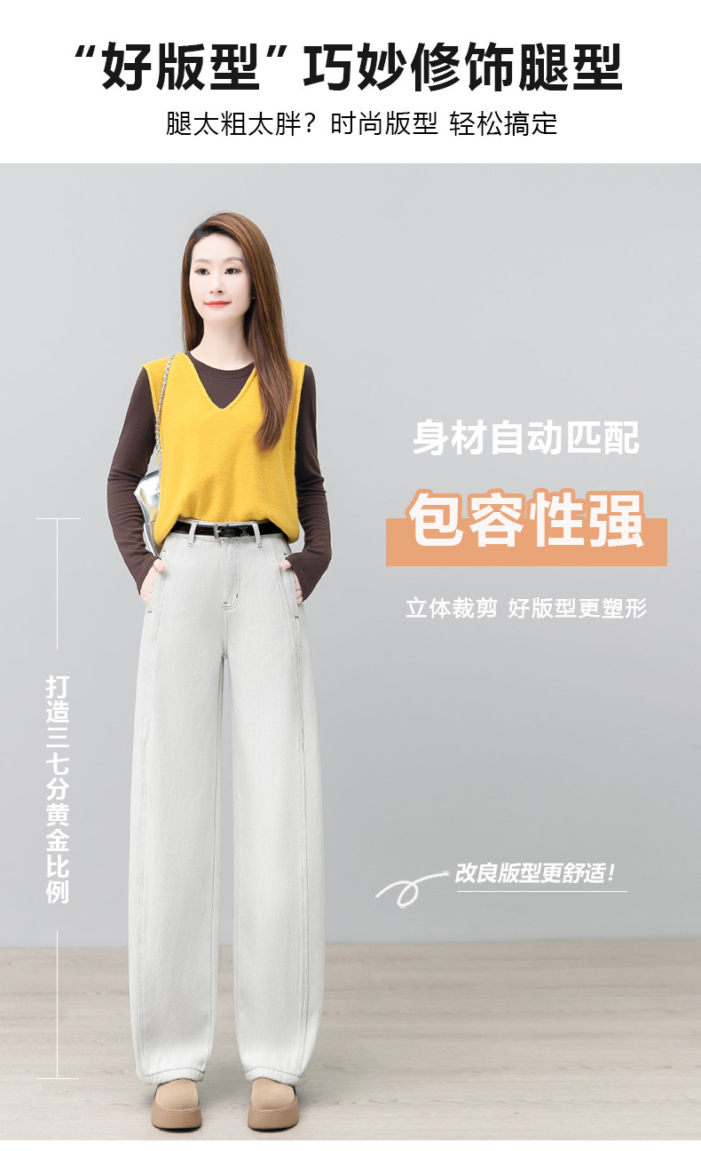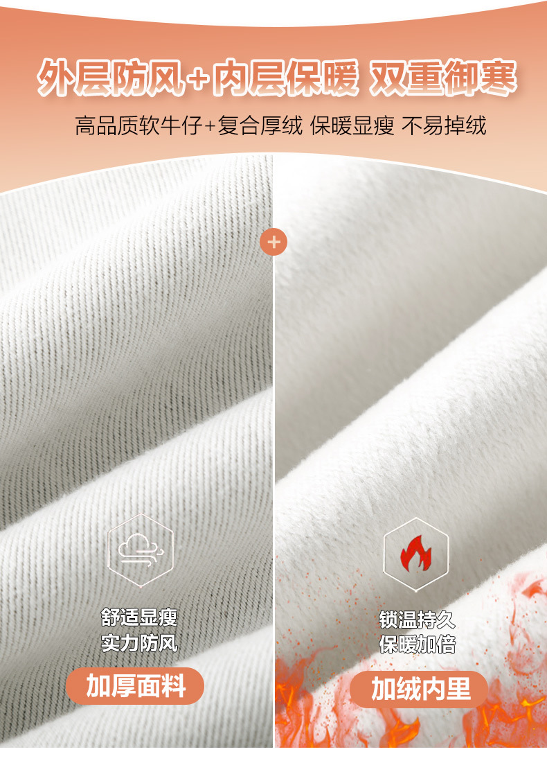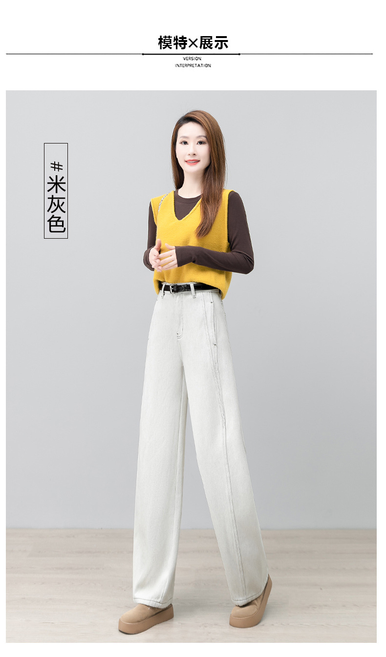 YM 2846水洗棉牛仔裤加绒加厚显瘦保暖弯刀裤宽松高腰镰刀裤 商品图4