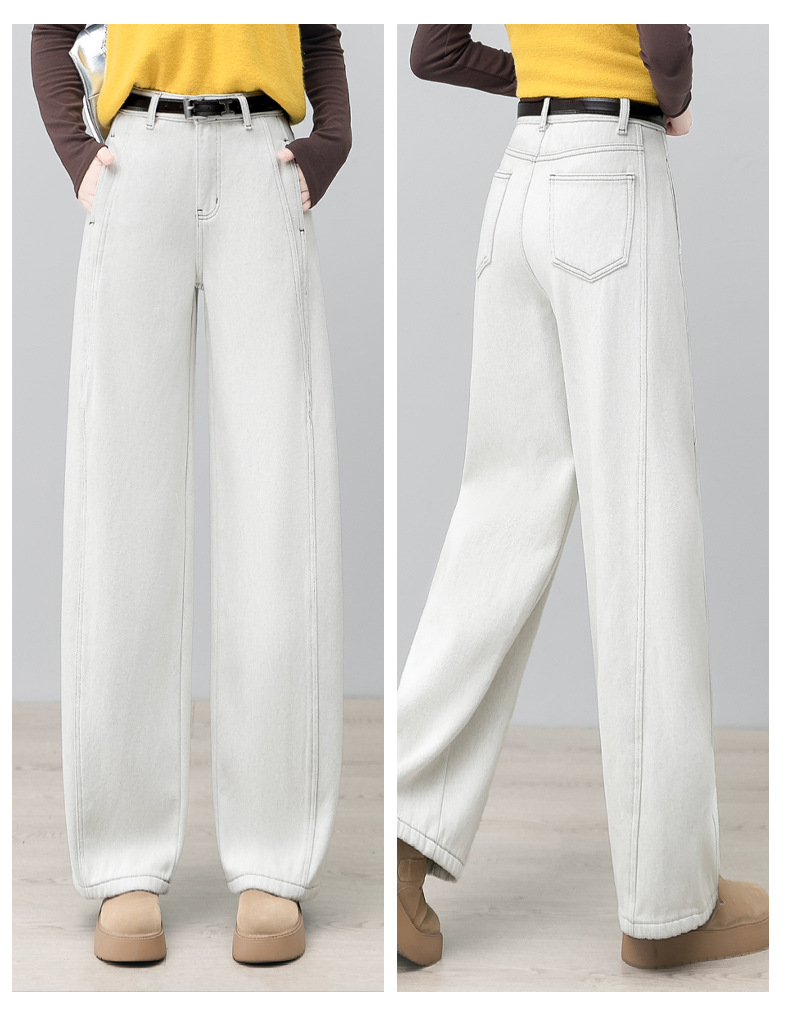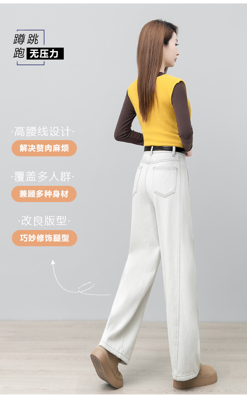 YM 2846水洗棉牛仔裤加绒加厚显瘦保暖弯刀裤宽松高腰镰刀裤 商品图2