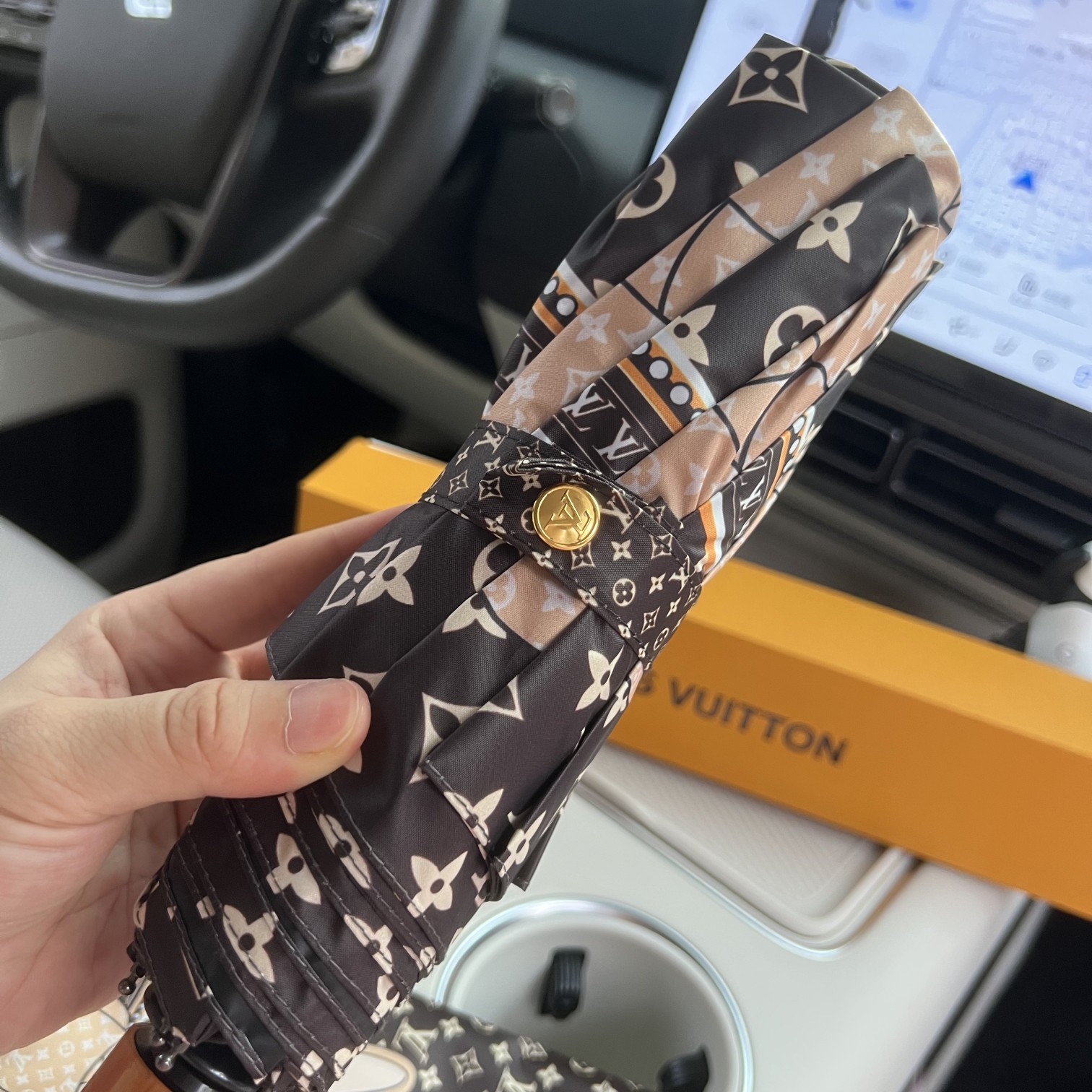 配礼盒LV路易威登 潮人必备 极品精品自动伞重磅呈现 一直以奢华以对时尚的独特设计而享有盛誉 独特的lv图案奢华突显品味 大气而精致 新涂层技术伞布 带来令人惊喜的遮光效果 让防晒及隔热性能更优保障 伞骨的好坏 决定一把雨伞品质好坏 伞架材料由合金伞杆 碳纤维伞骨制成 坚韧度非常强 第一代210T碰击布防晒拒水技术 阻隔99%直射伞面的紫外线 杜绝夏季晒伤 清爽出行 即使是在下雨的日子里,也能享受最优雅的漫步