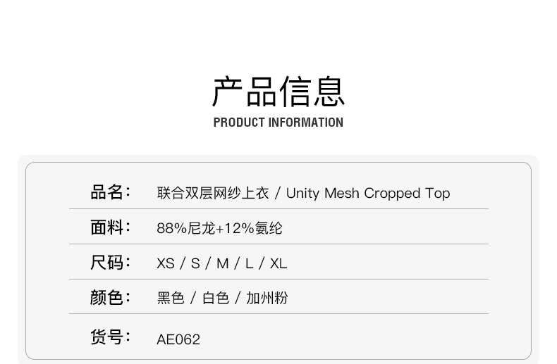 【新品】联合双层网纱上衣 UNITY MESH CROPPED TOP