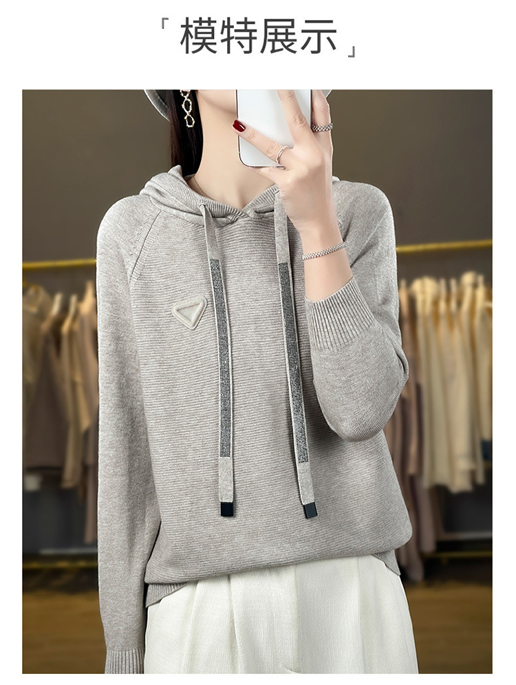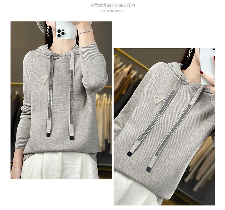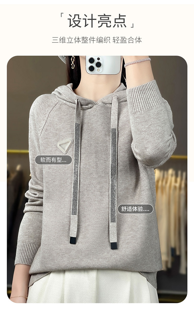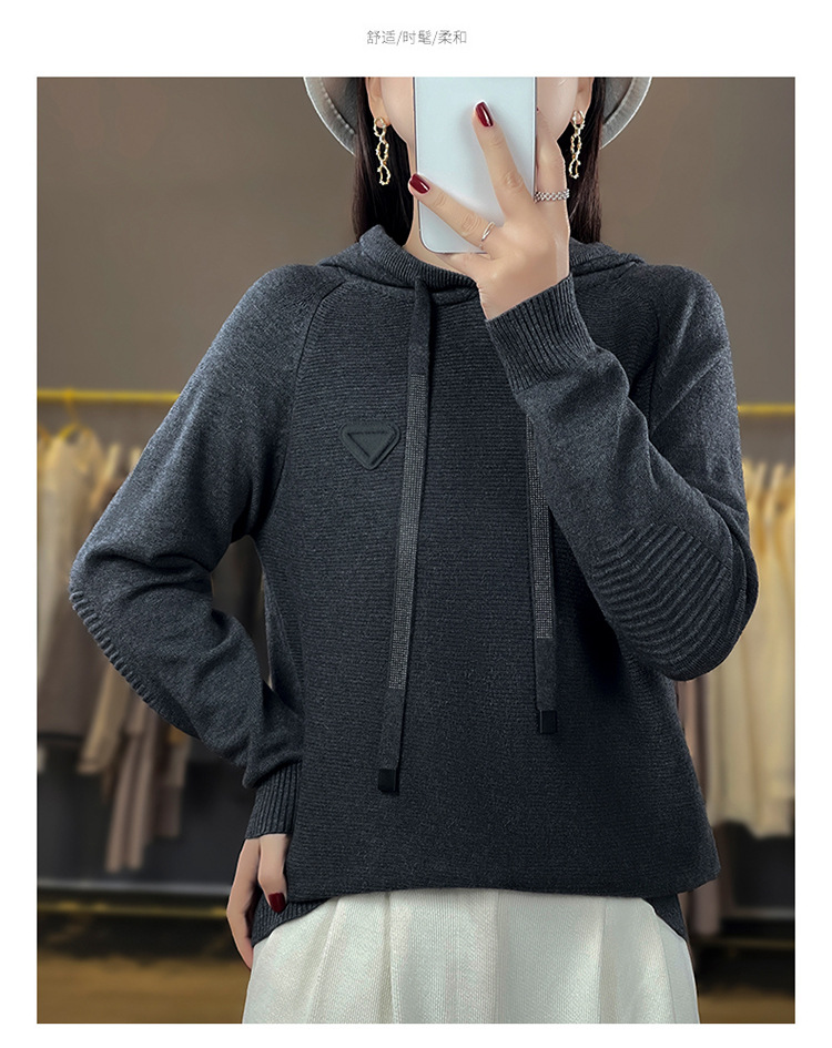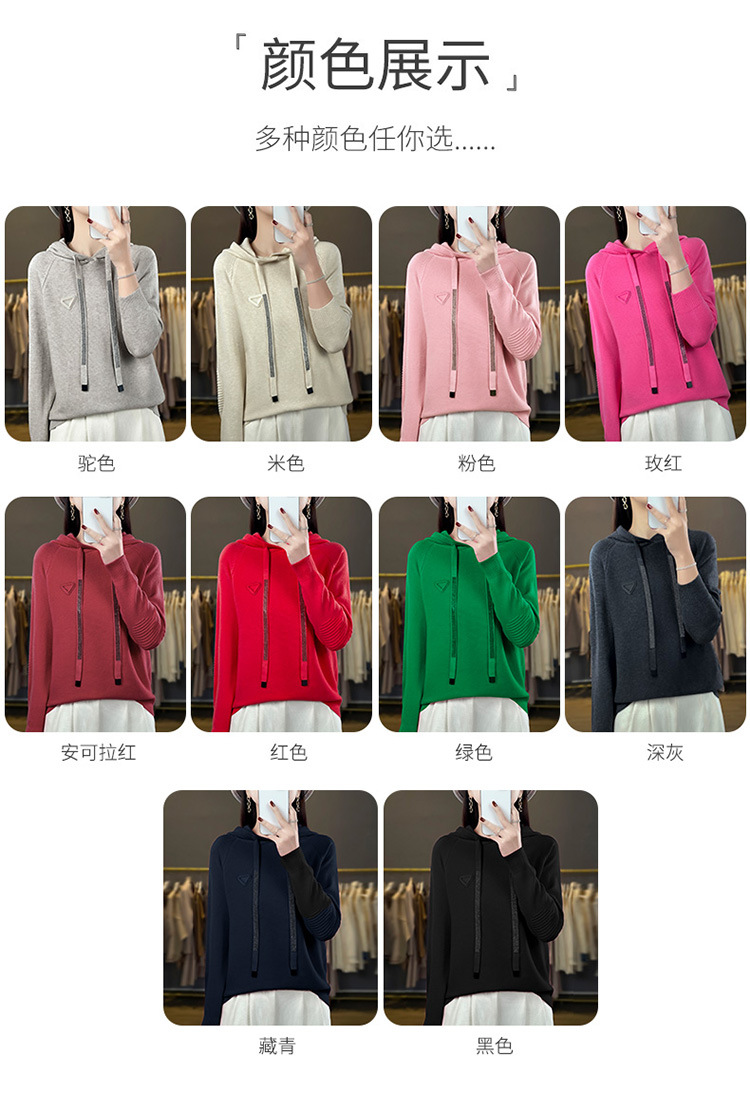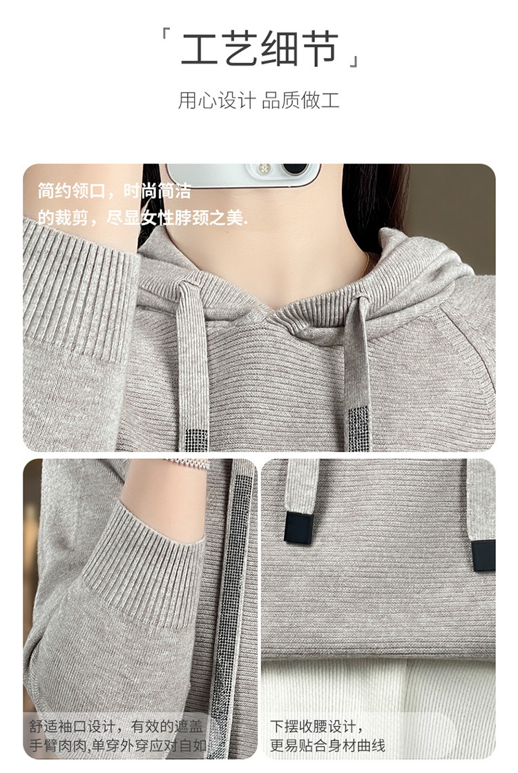 FCY MS8173加密连帽针织衫宽松纯色时尚连帽毛衣