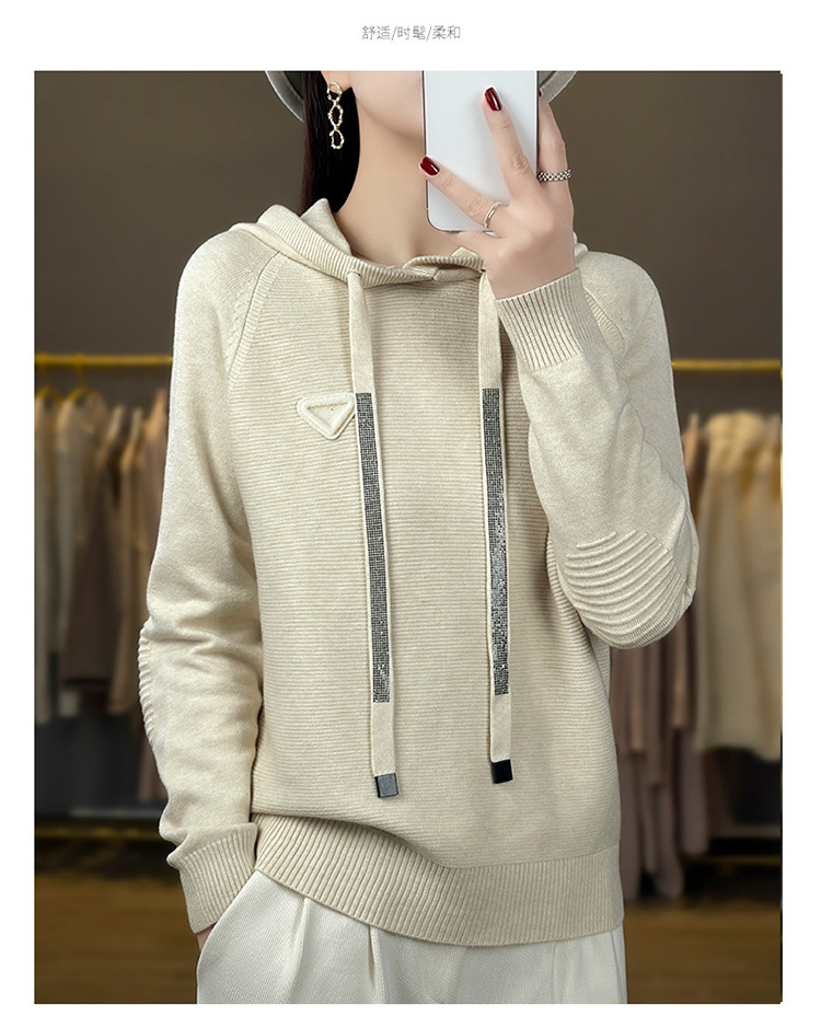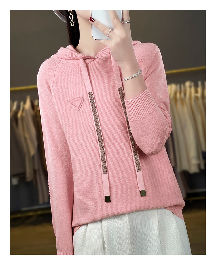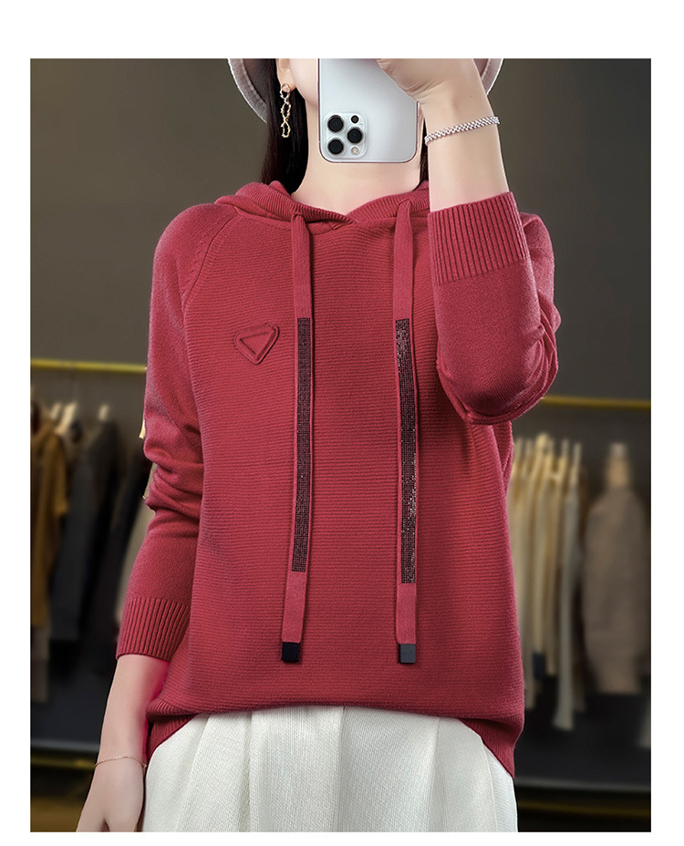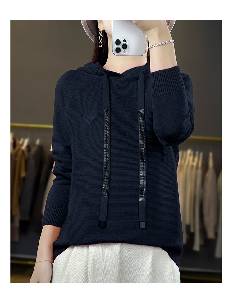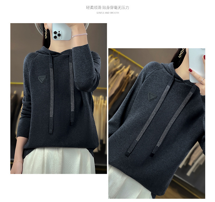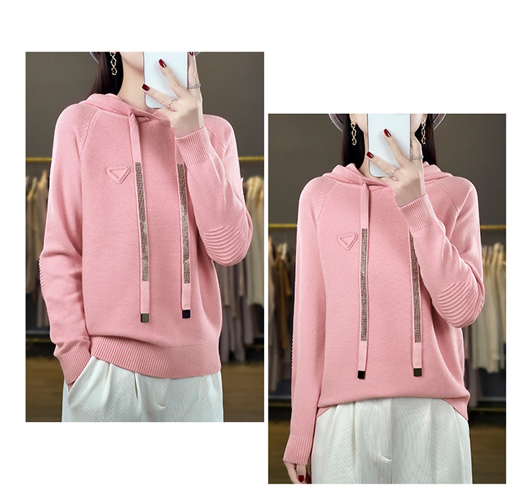 FCY MS8173加密连帽针织衫宽松纯色时尚连帽毛衣