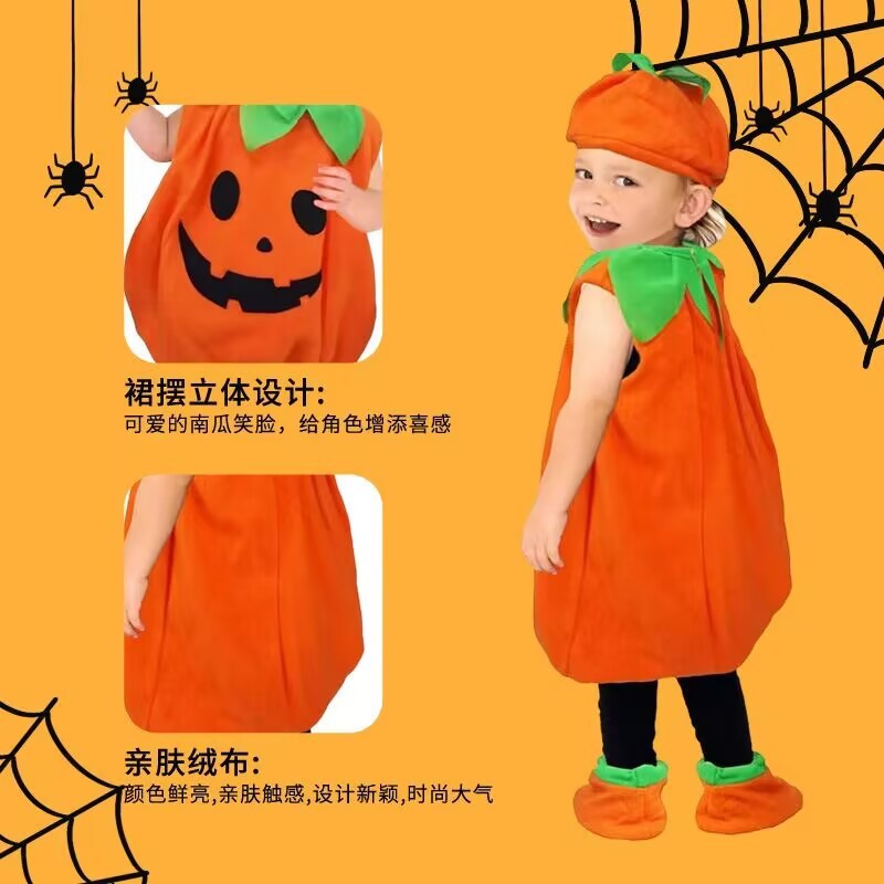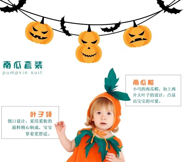 【萌宝南瓜套装!万圣节经典装扮】儿童万圣节南瓜服装婴儿cosplay造型演出服可爱南瓜宝宝服装。rc