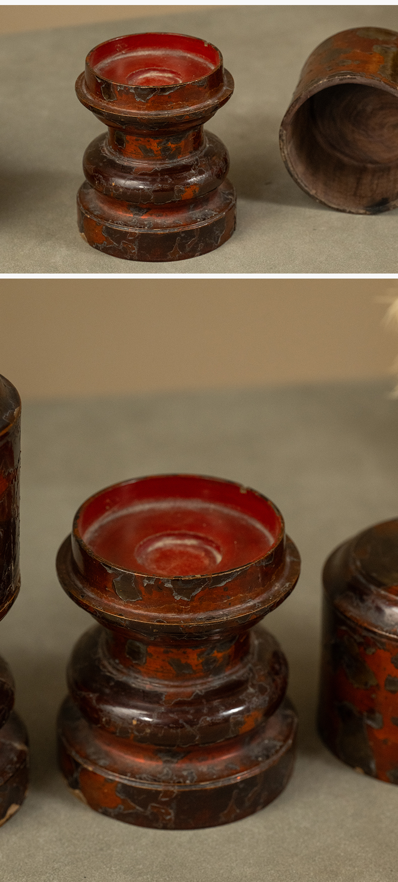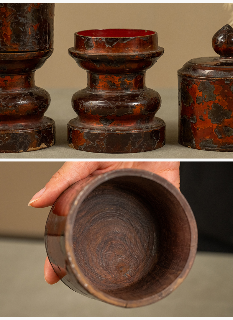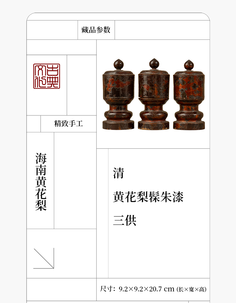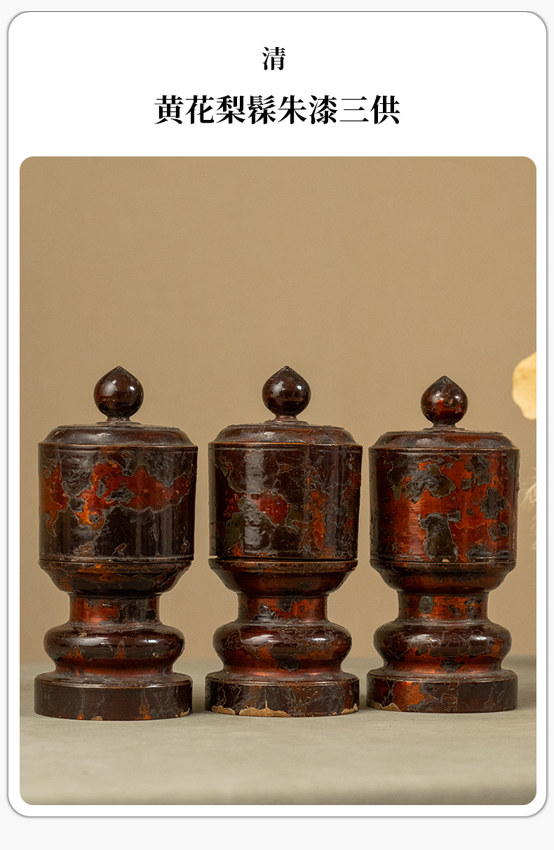 清 黄花梨髹朱漆三供