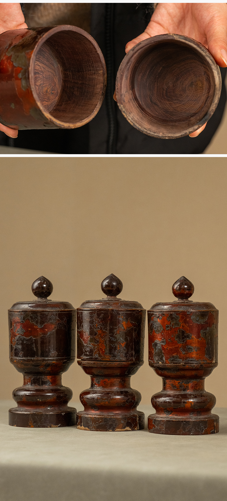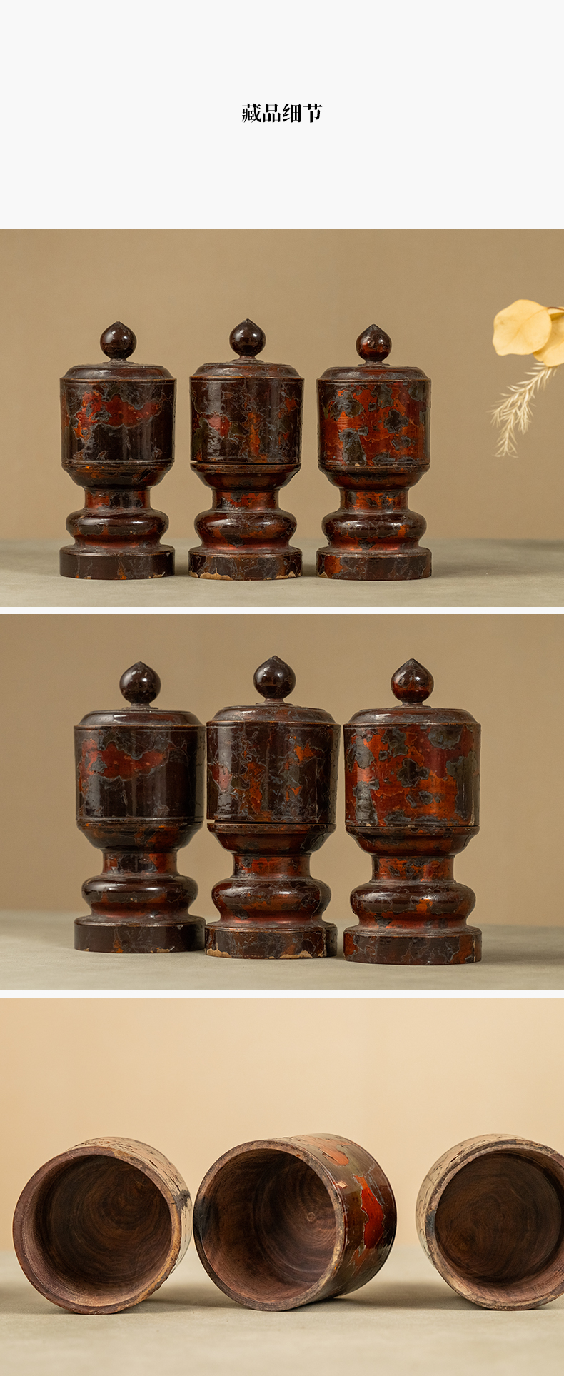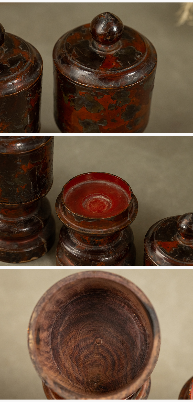 清 黄花梨髹朱漆三供