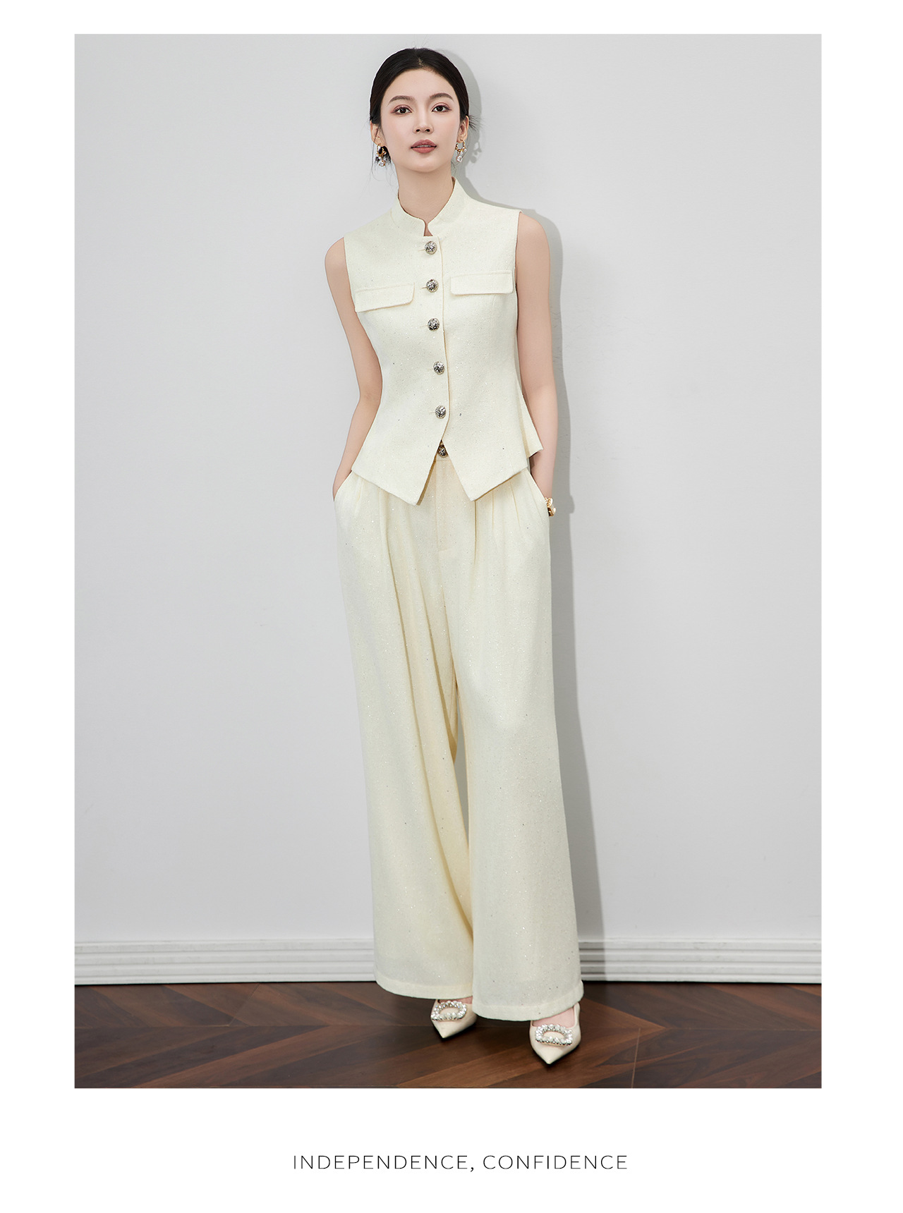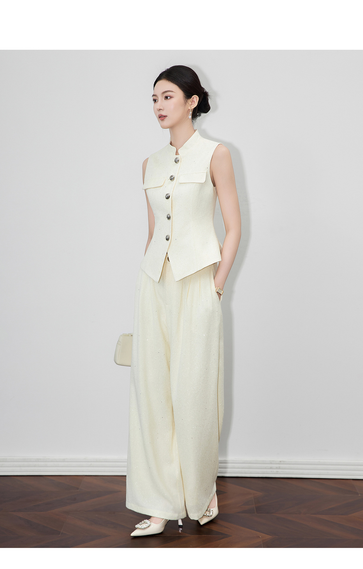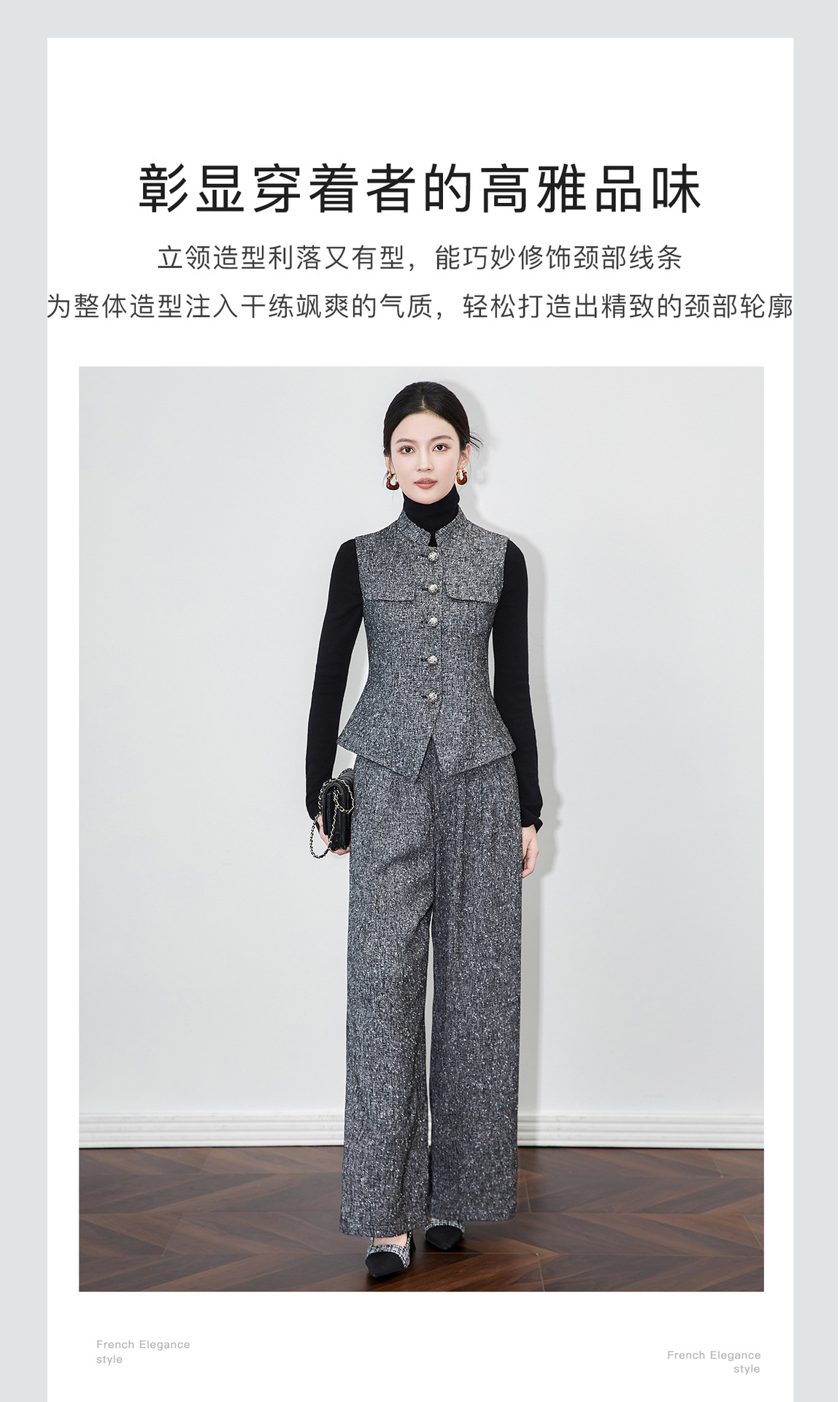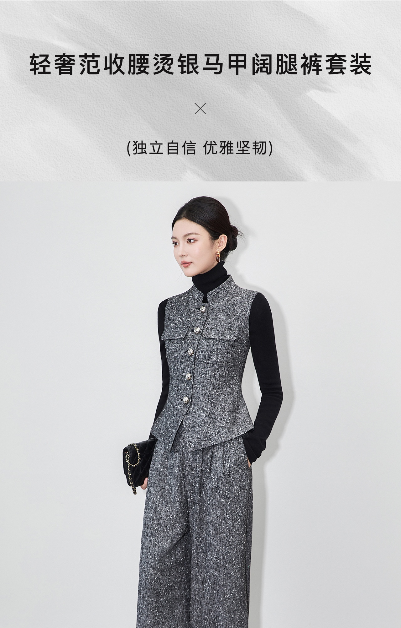 「高货wl」全新升级【铂金会员441/天猫589/差价148】(99222)洛诗琳2025秋冬小香风粗花呢收腰马甲高腰直筒长裤两件套