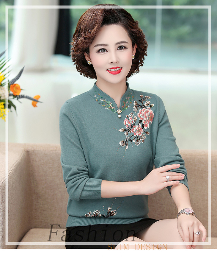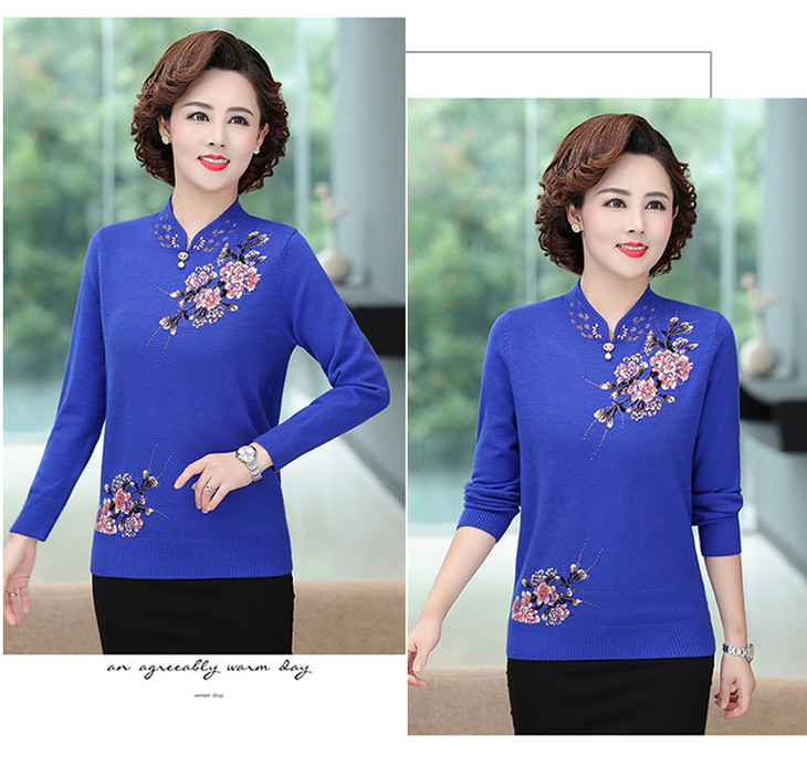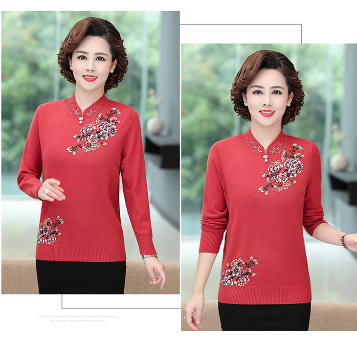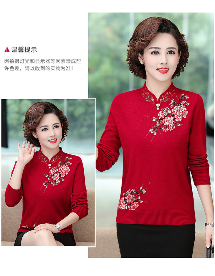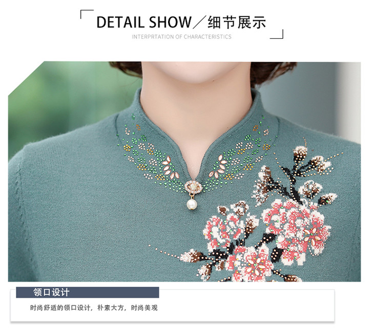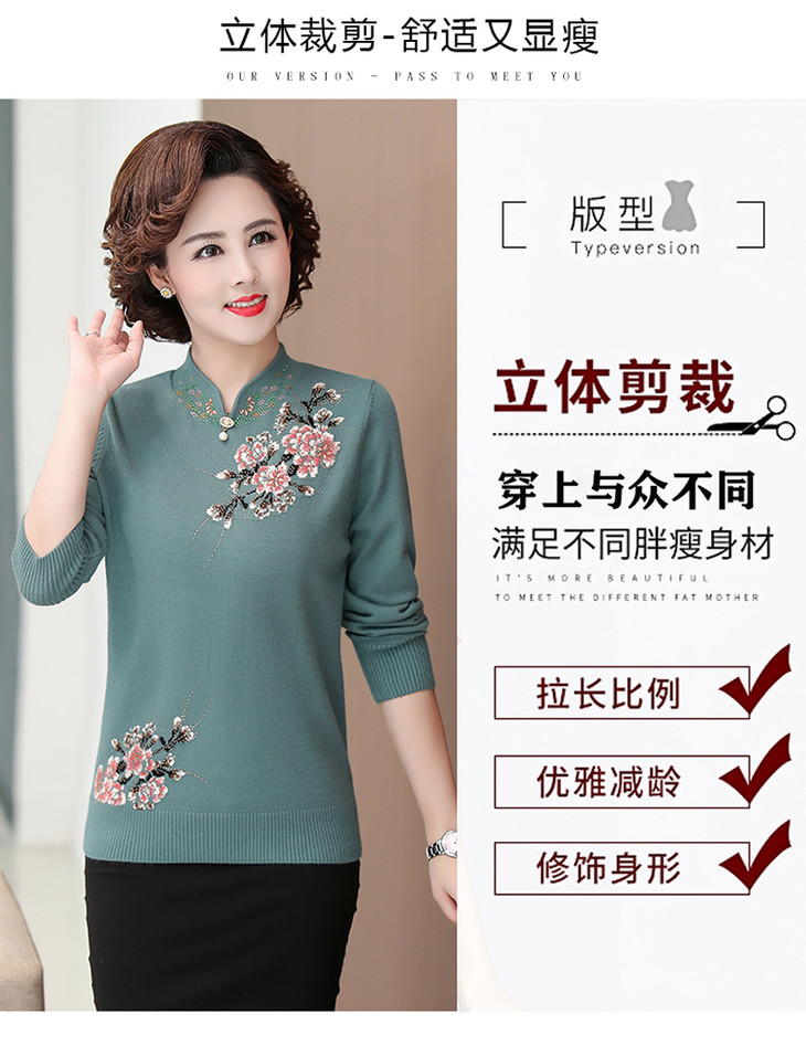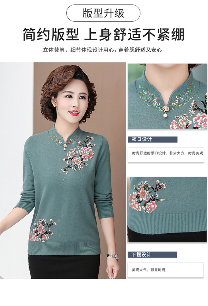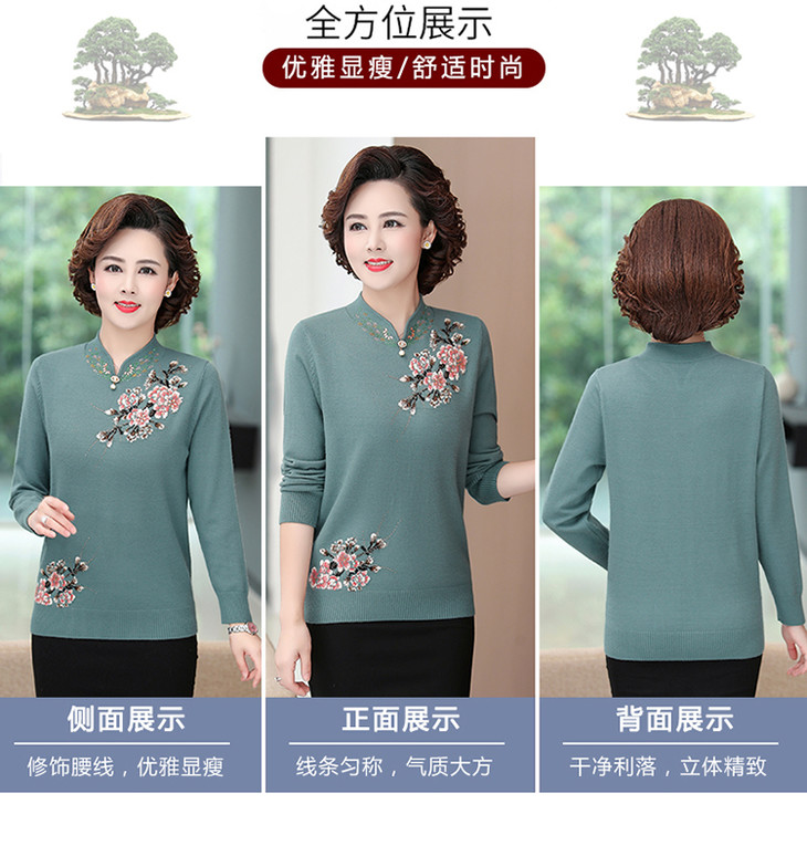 W-265788新款中老年洋气旗袍领刺绣花打底衫Y