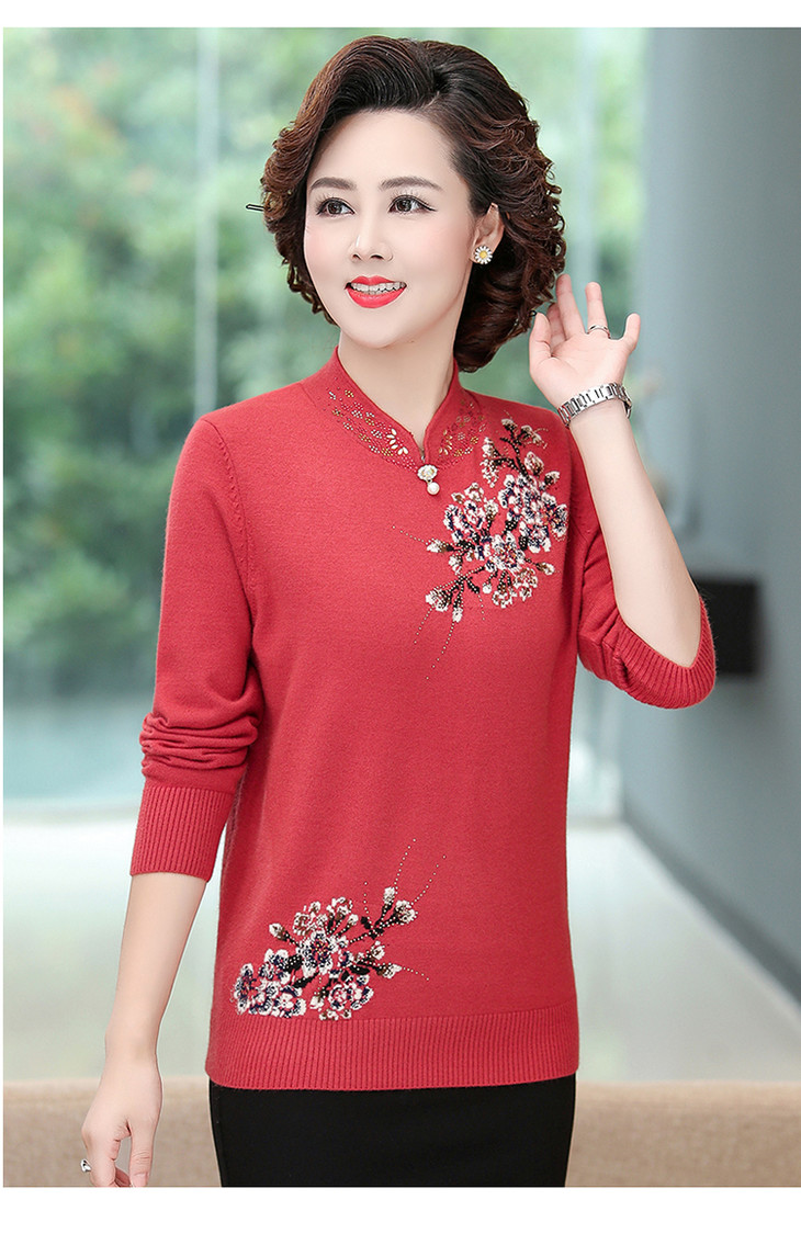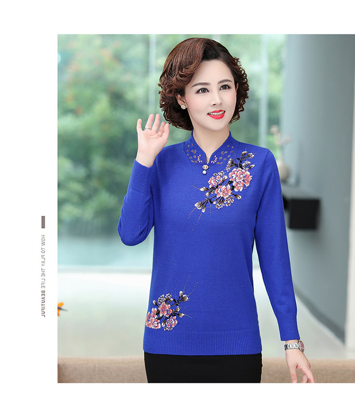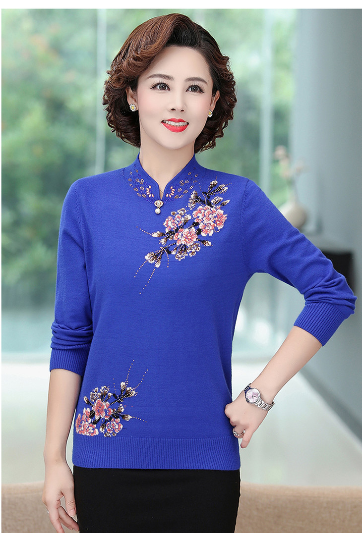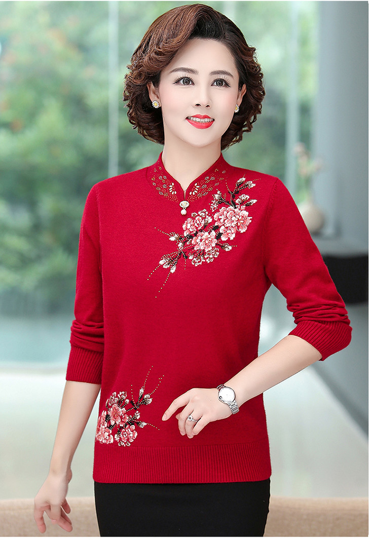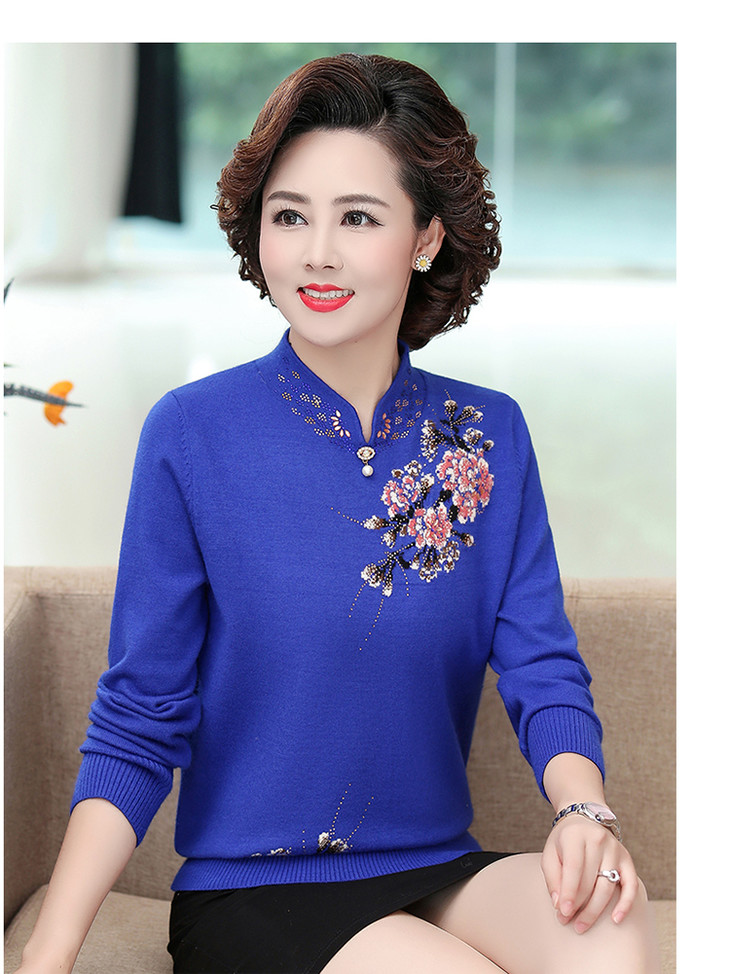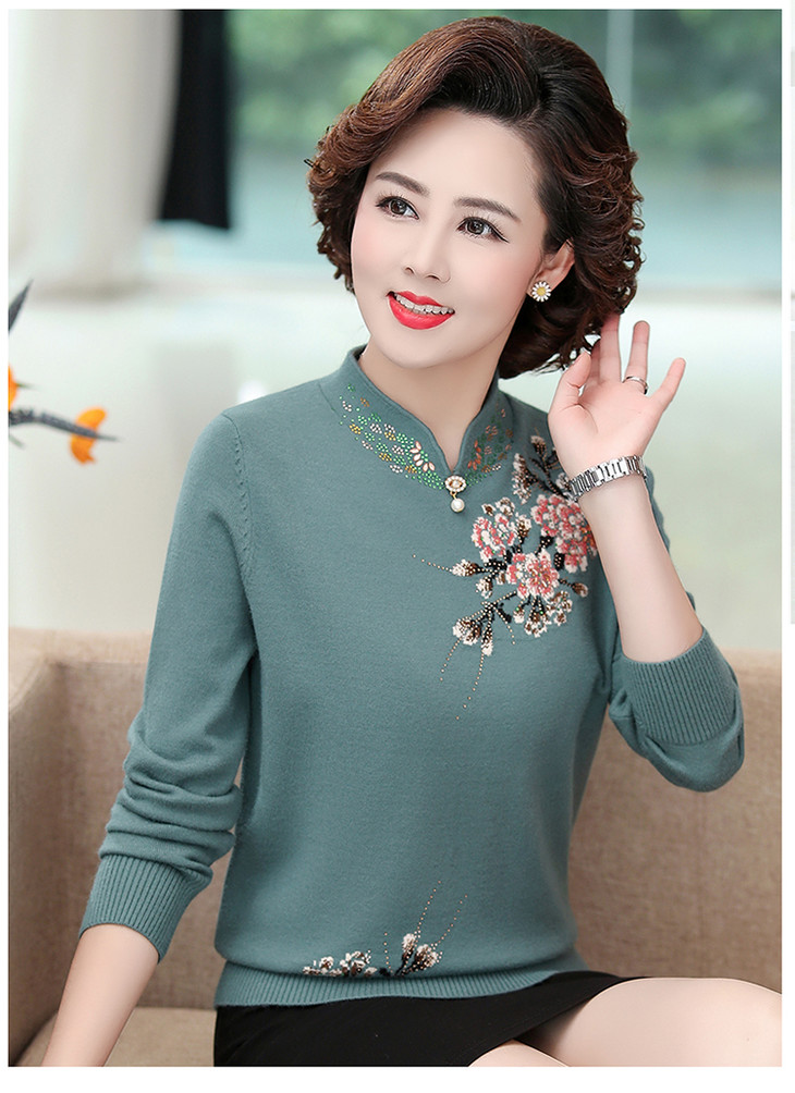 W-265788新款中老年洋气旗袍领刺绣花打底衫Y