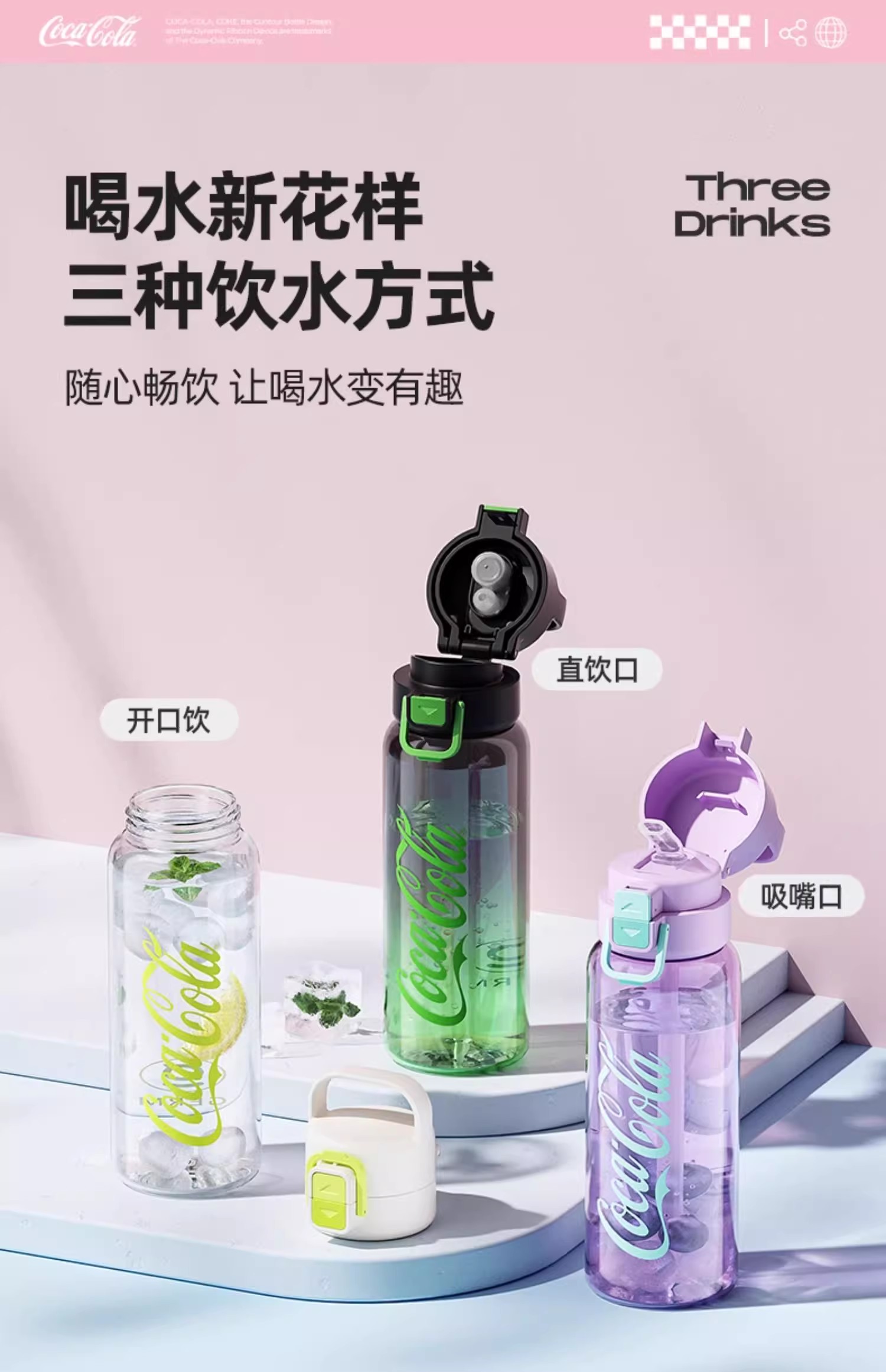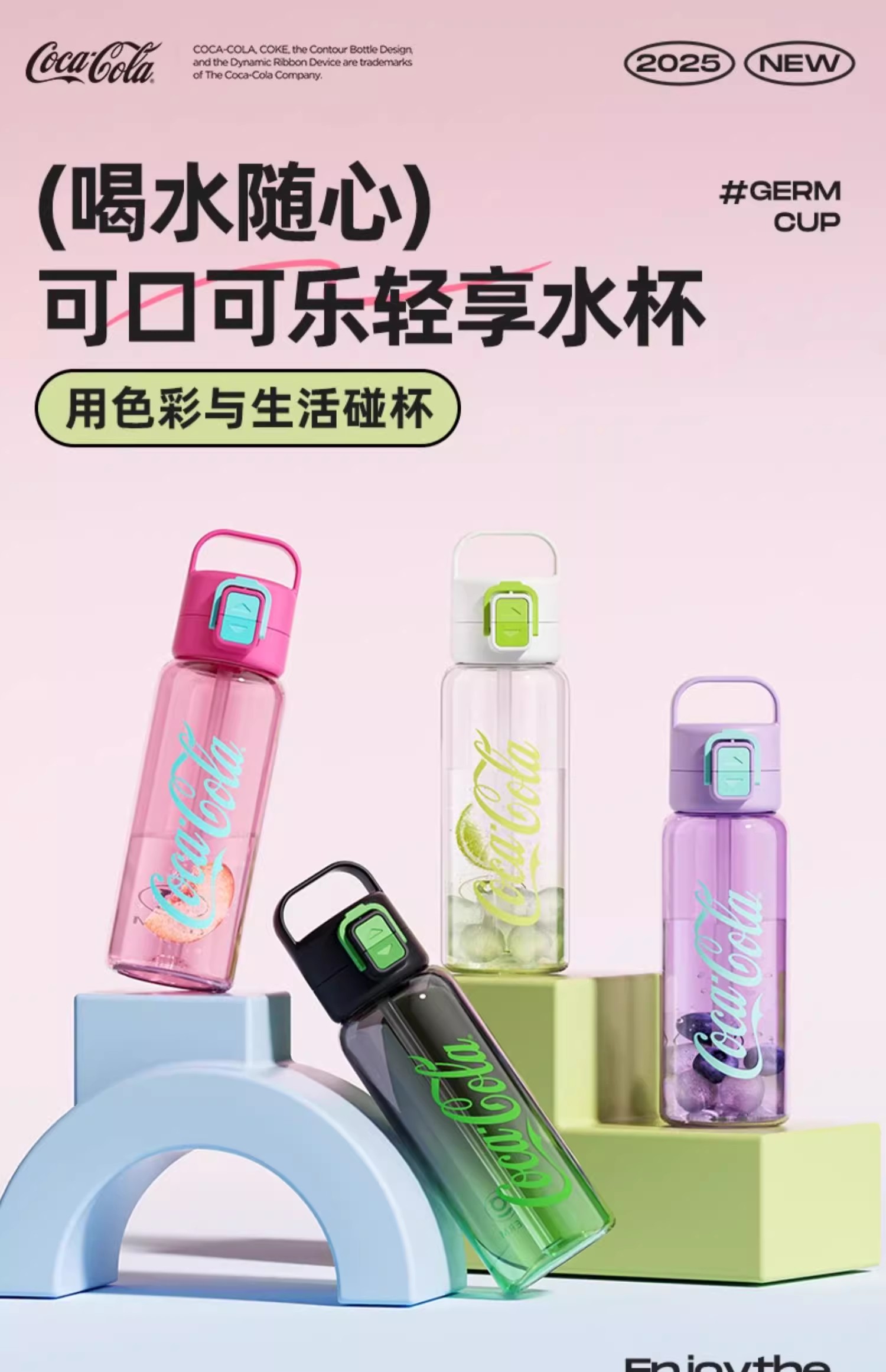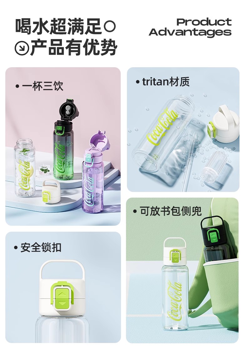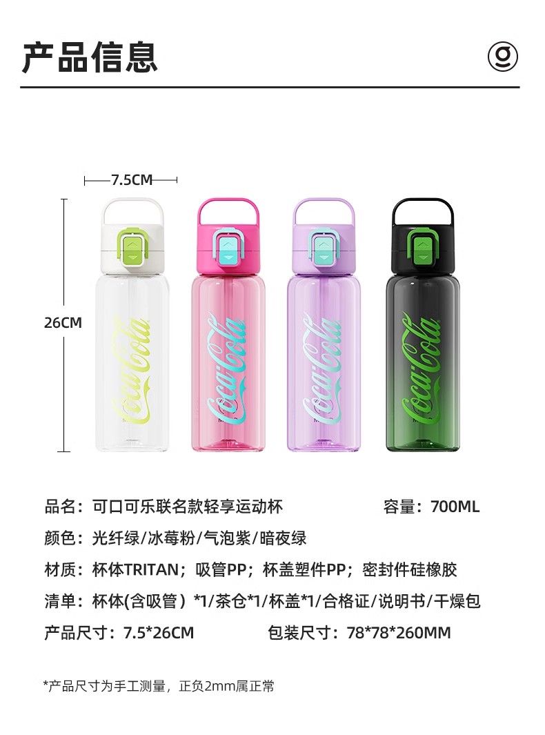 GERM可口可乐联名款轻享运动水杯700m1暗夜绿