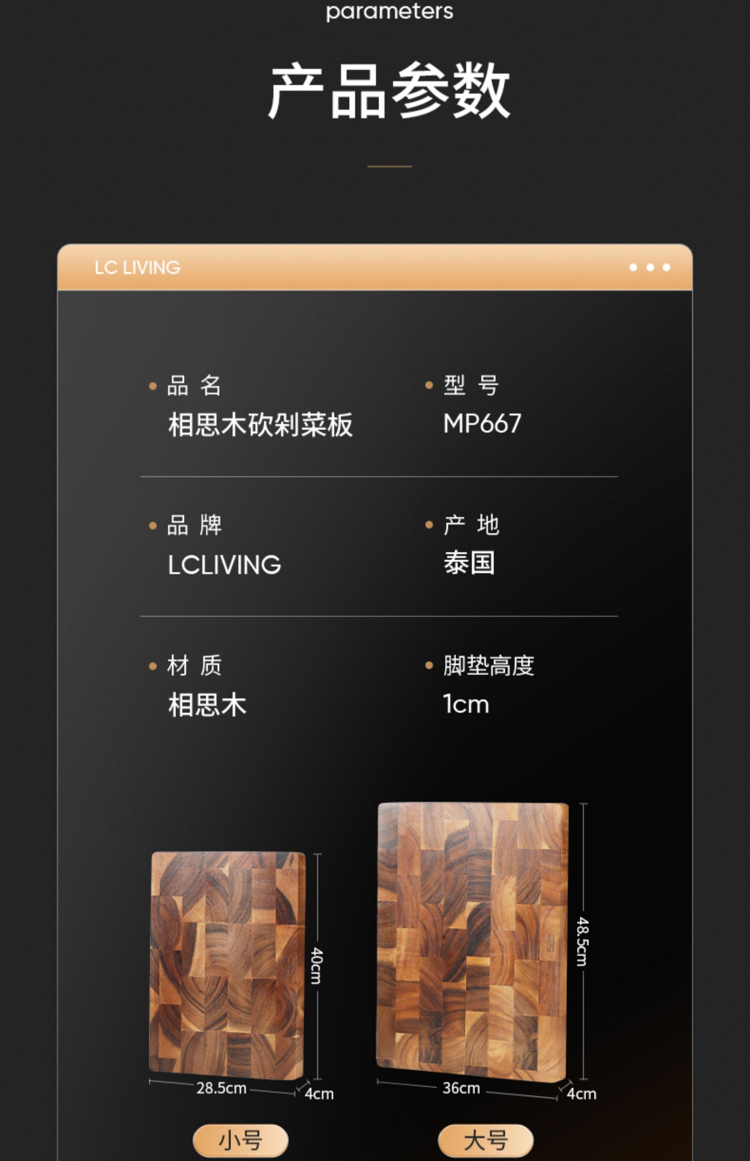 LC LIVING相思木恩格瑞长方形加厚菜板大号