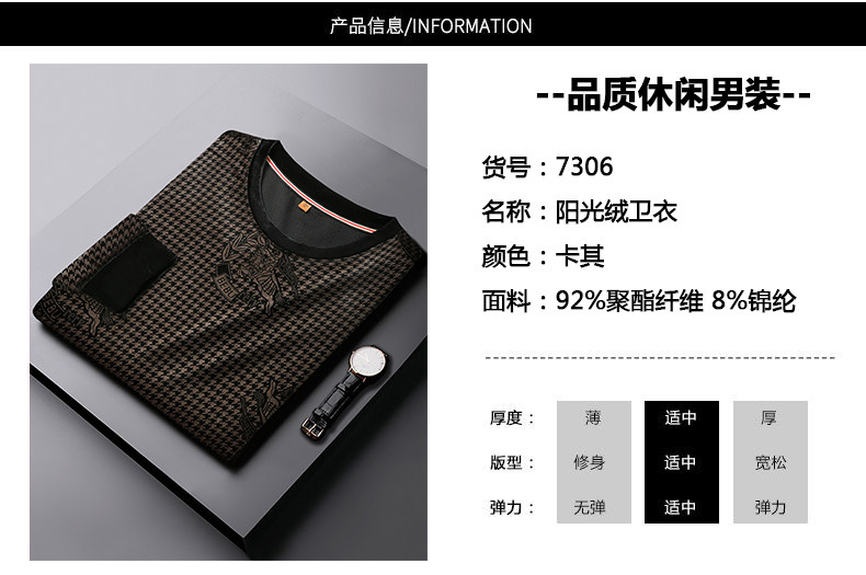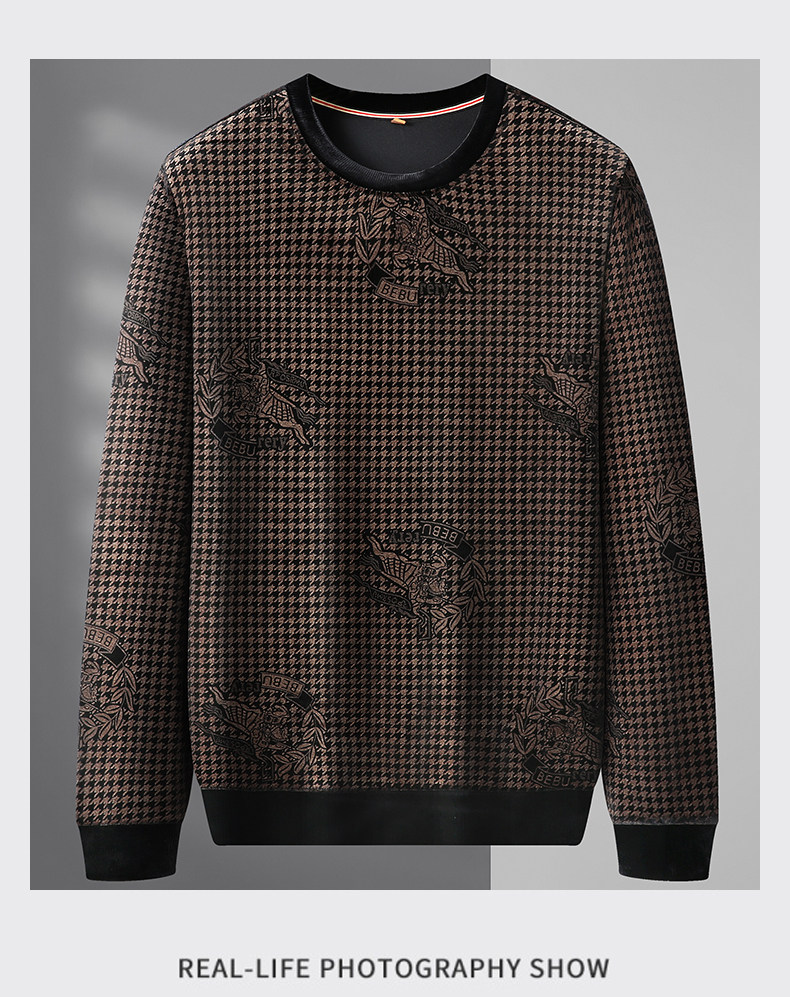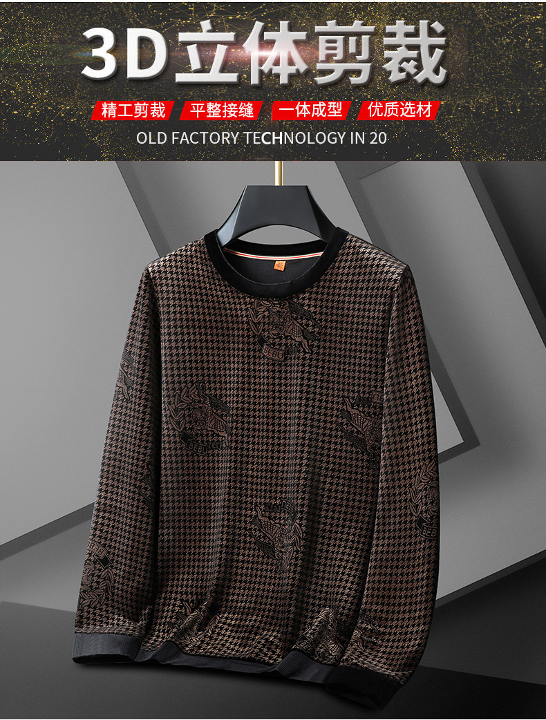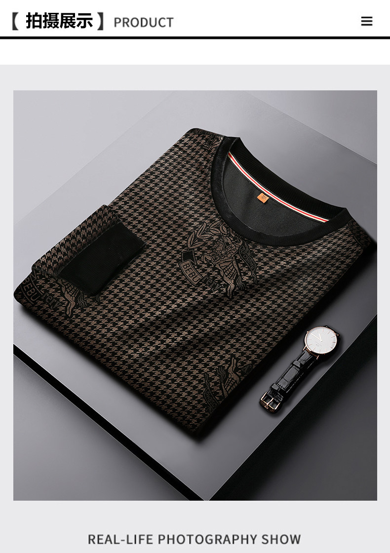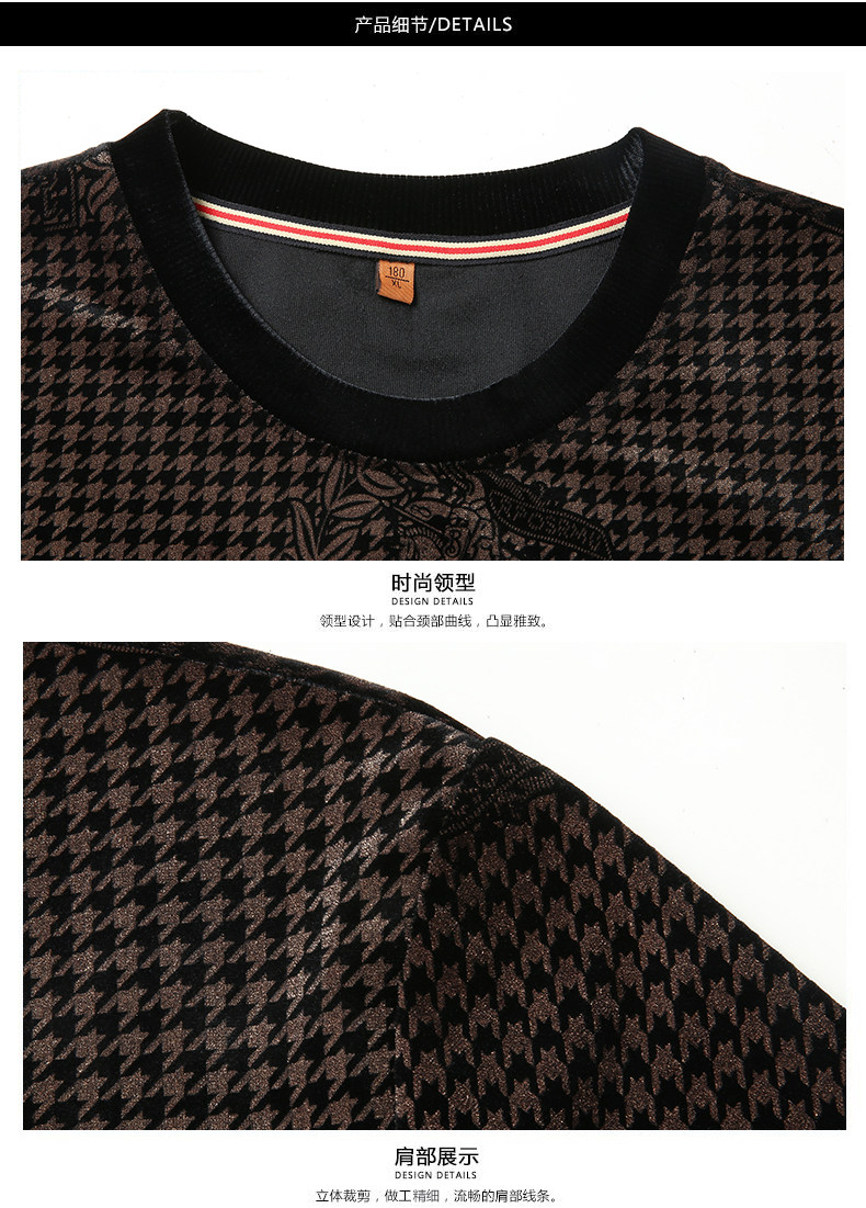 【DWP】大依优型大码男装圆领阳光绒卫衣花纹休闲加肥加大码卫衣上衣