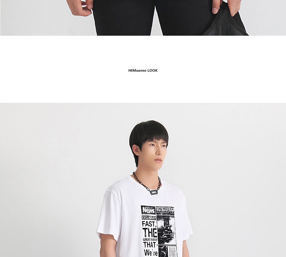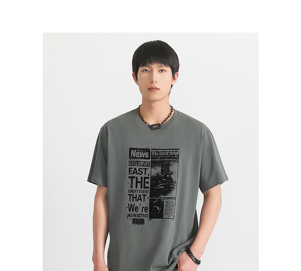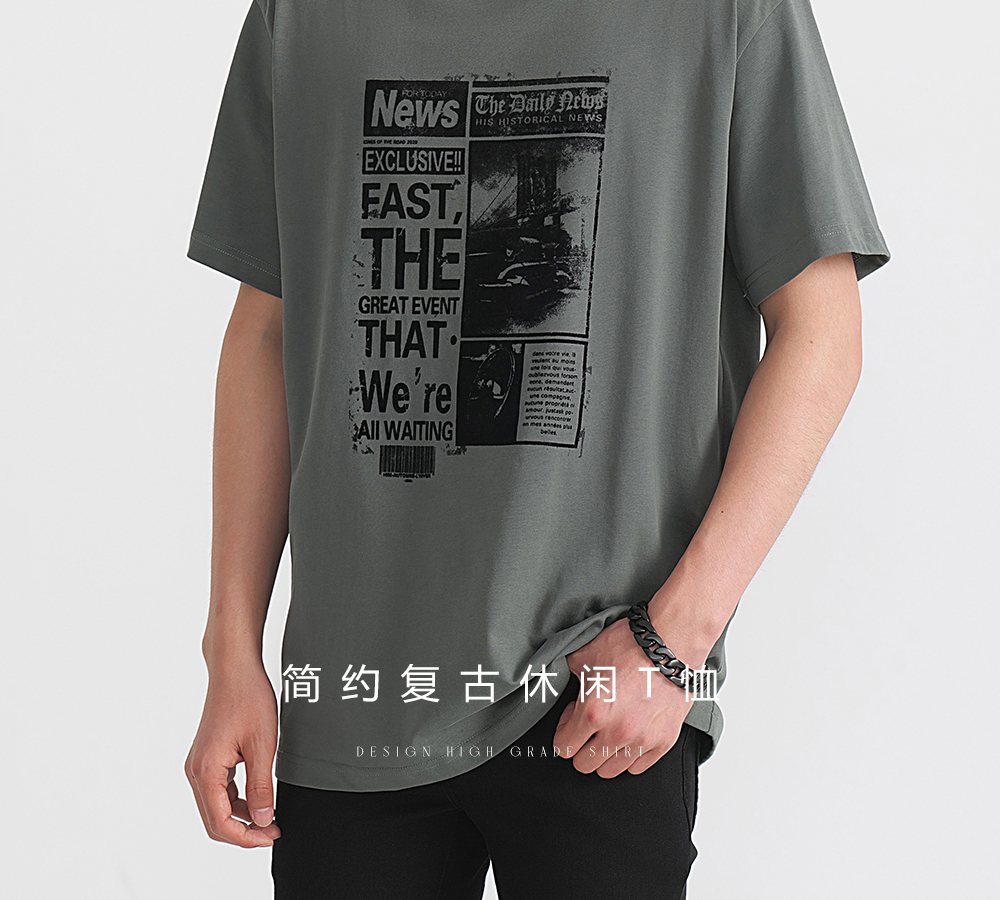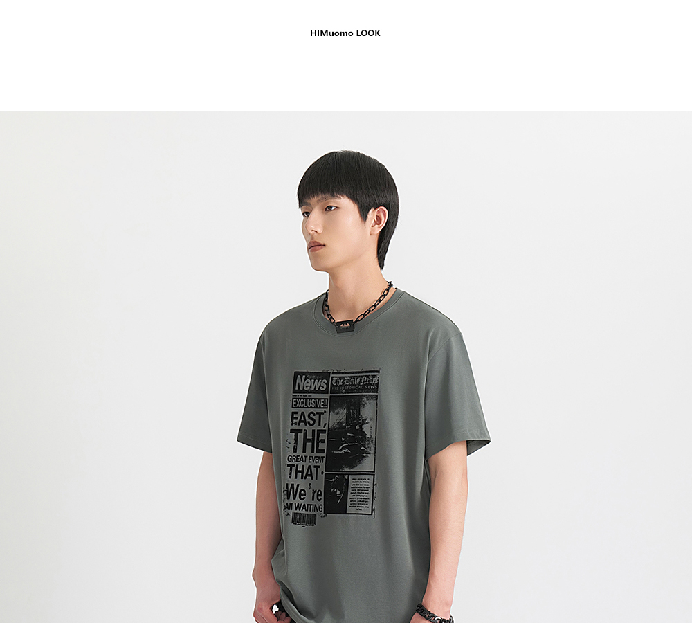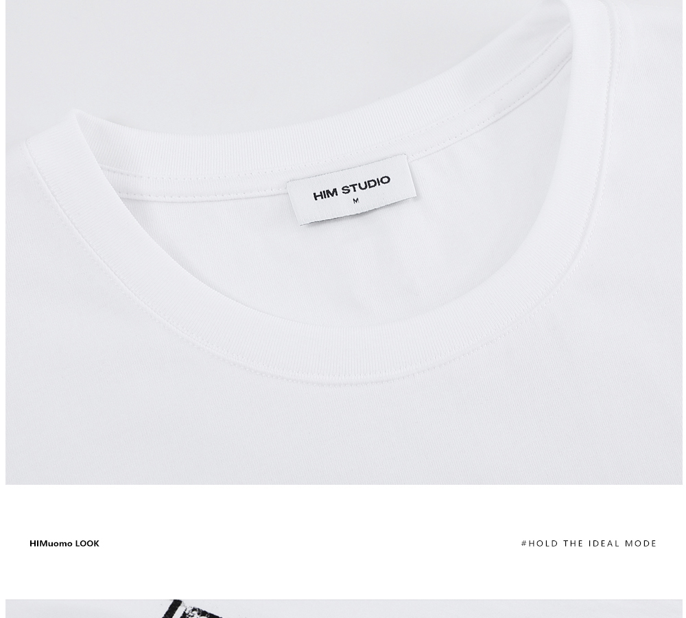 HIM漢崇 舒适透气休闲短袖T恤男士简约植绒印花圆领上衣 2026夏季