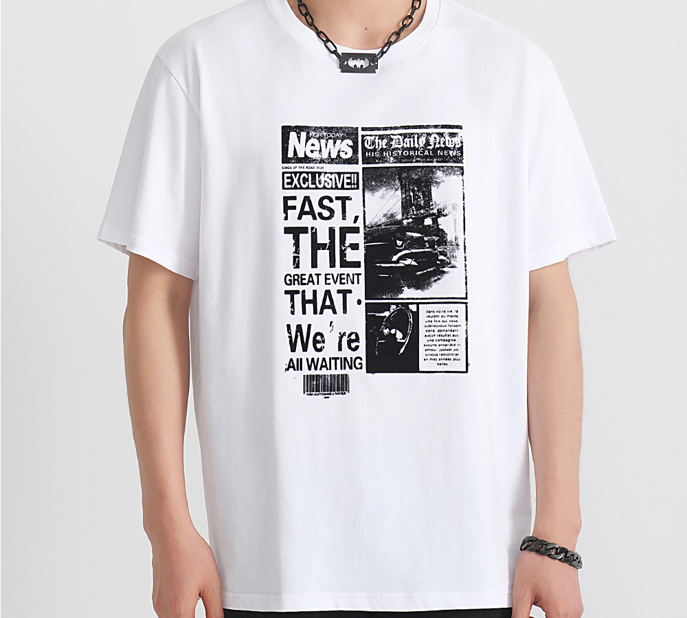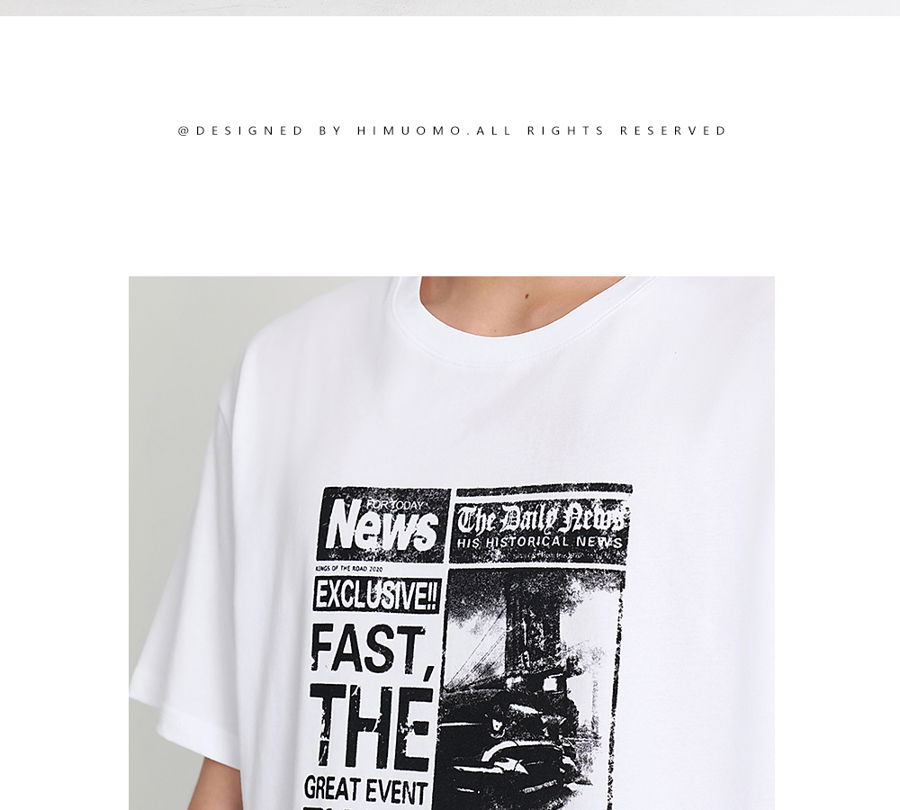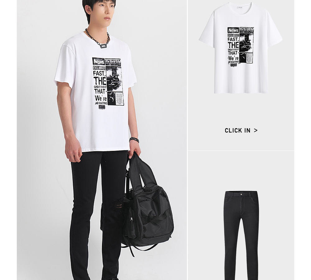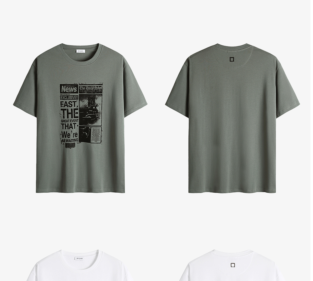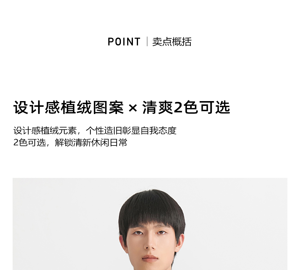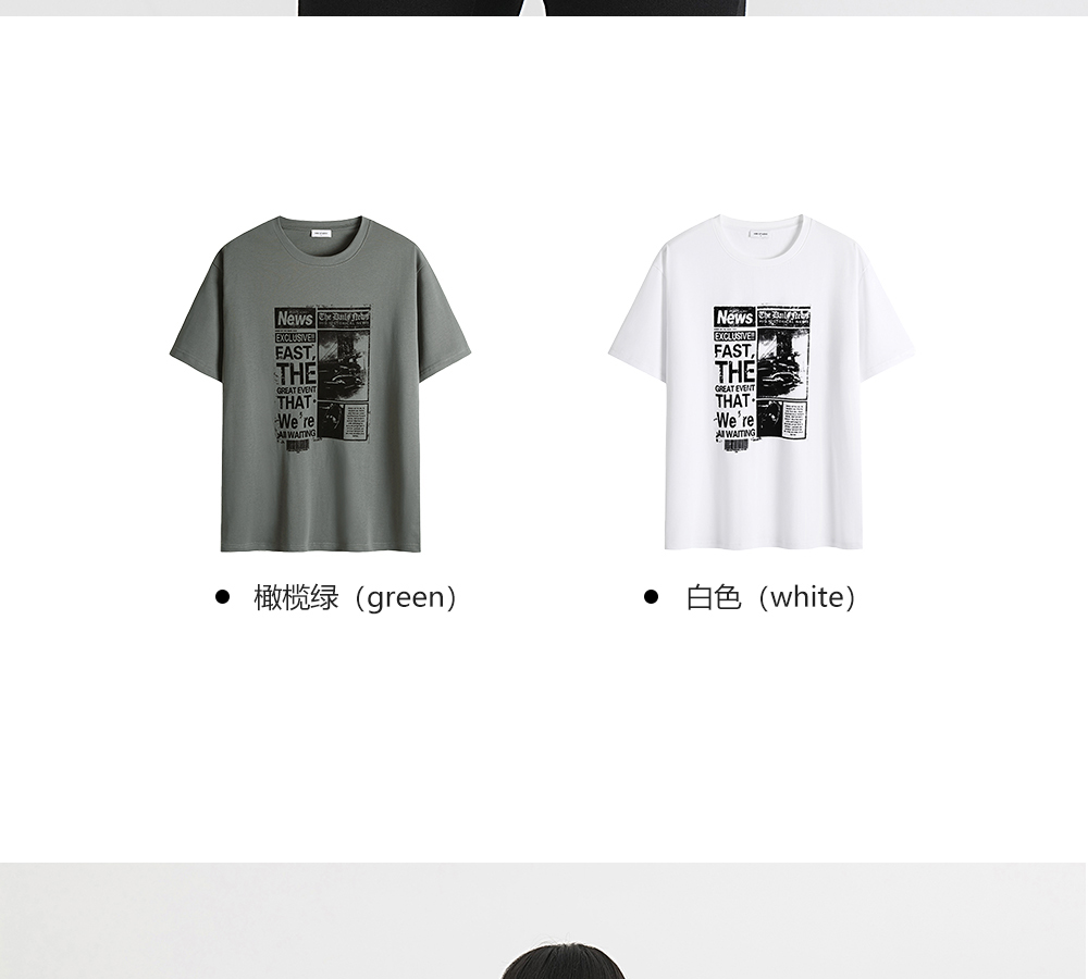 HIM漢崇 舒适透气休闲短袖T恤男士简约植绒印花圆领上衣 2026夏季