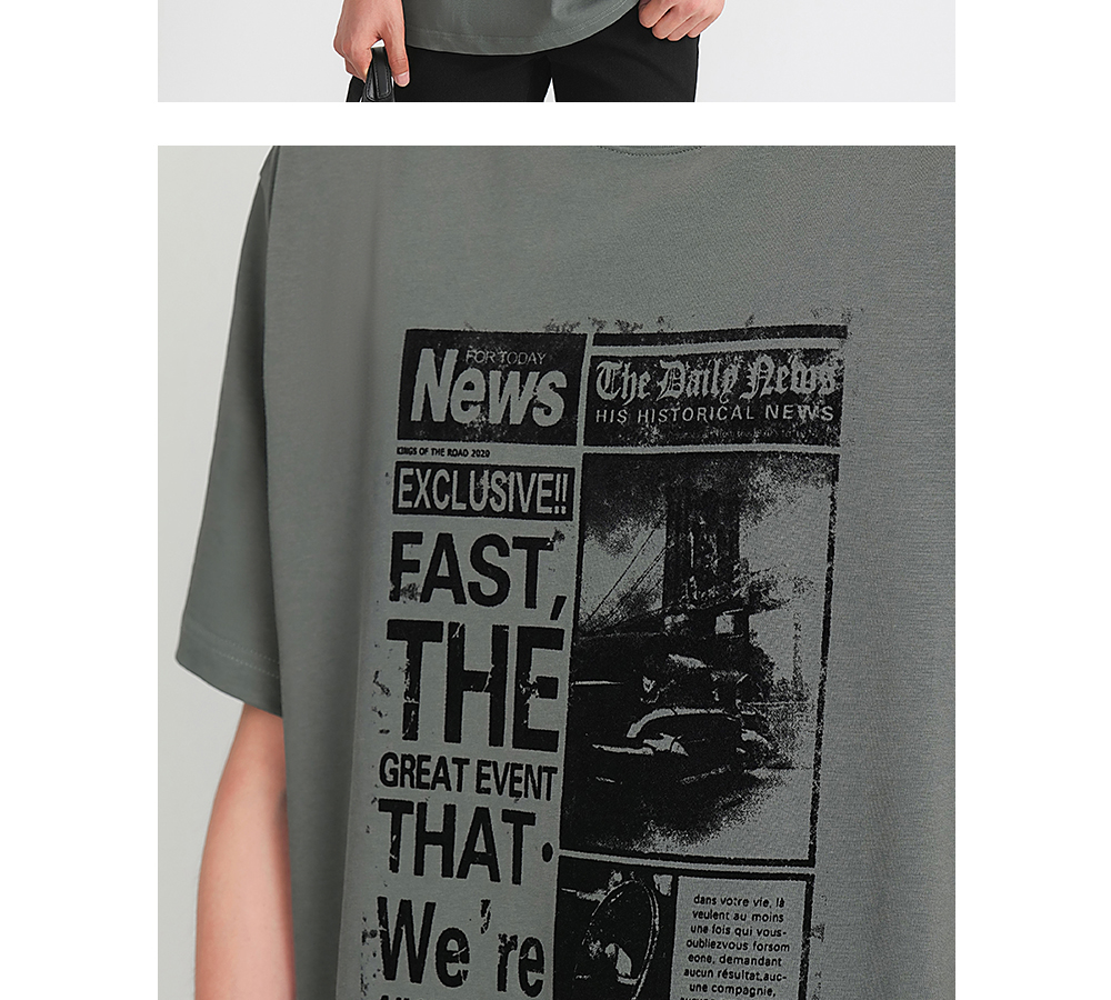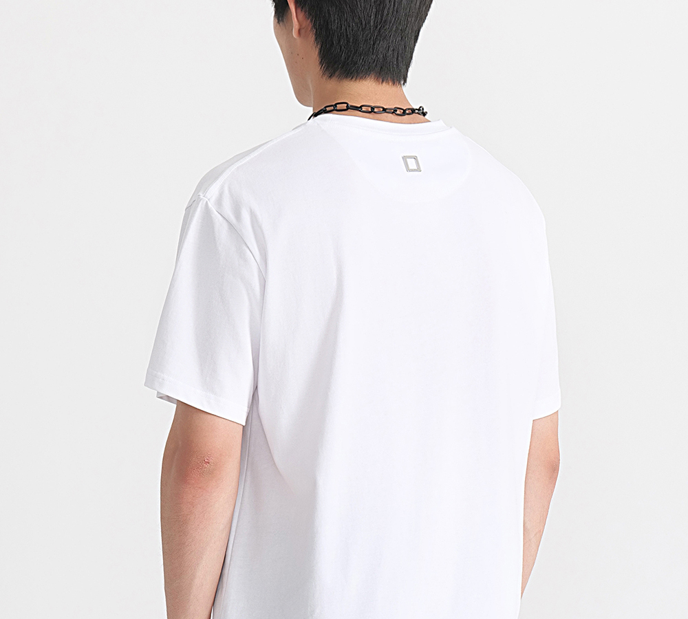 HIM漢崇 做旧植绒图案短袖T恤衫简约复古休闲圆领打底衫2026夏季
