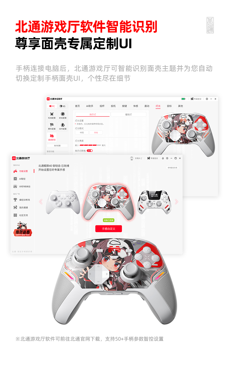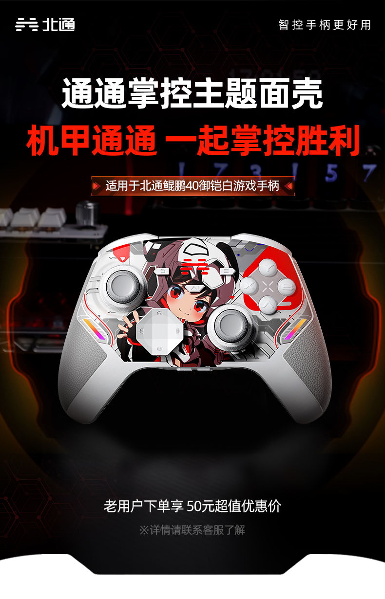 北通鲲鹏40御铠白游戏手柄 通通掌控主题面壳