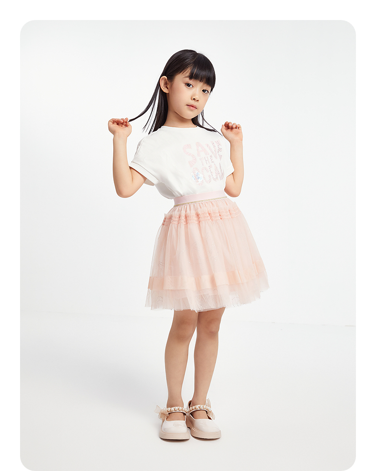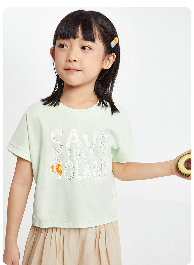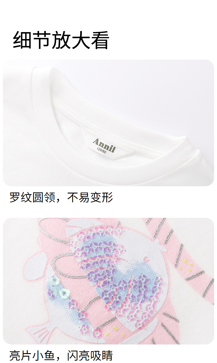 安奈儿童装女童圆领短袖针织衫2025夏新款