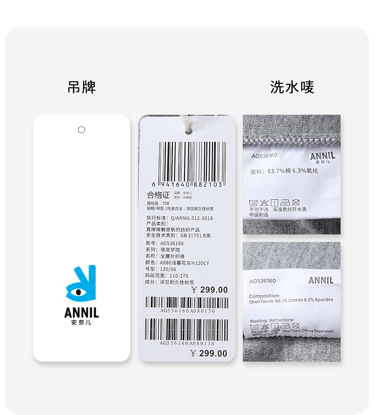 【实体店同款】女童全腰针织裤秋季新款安奈儿童装AG536160
