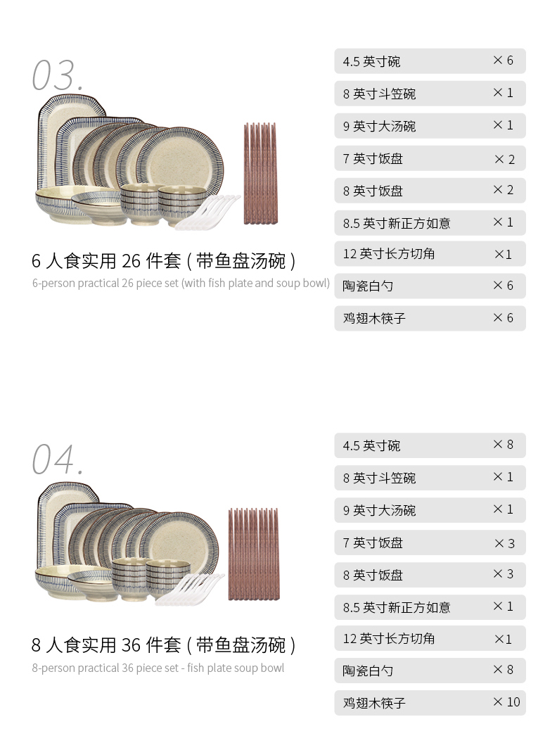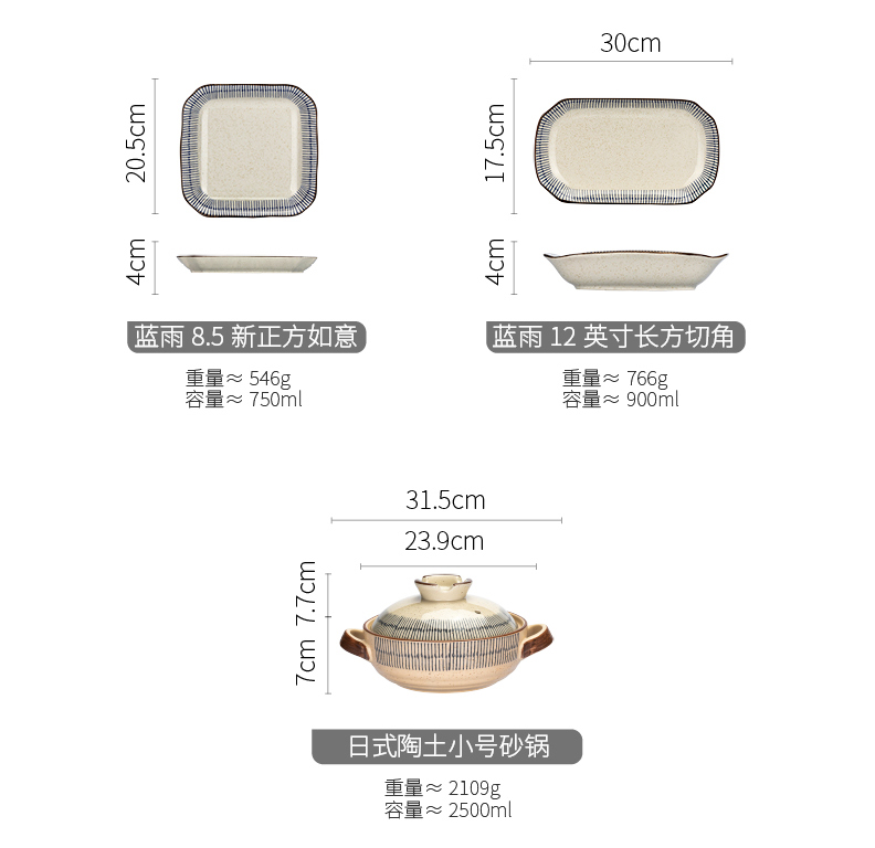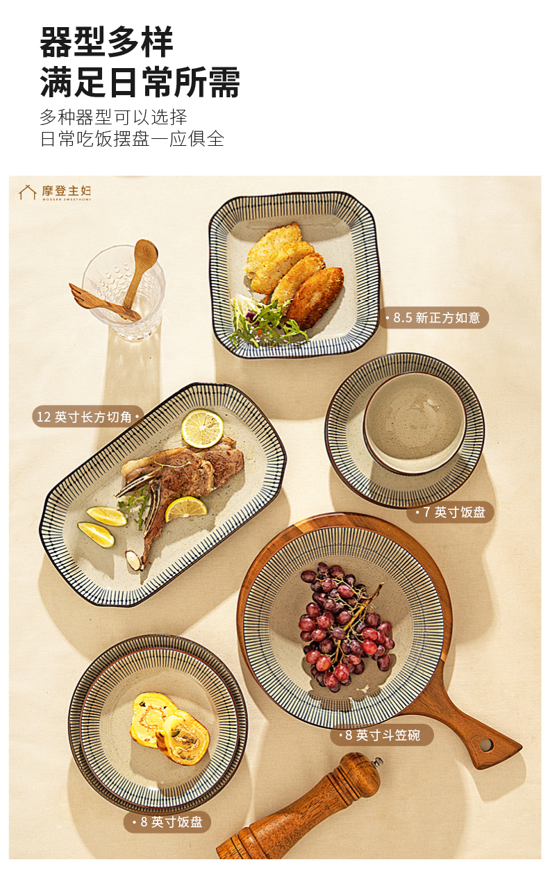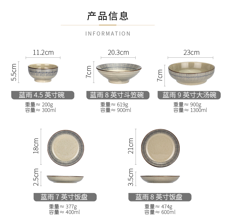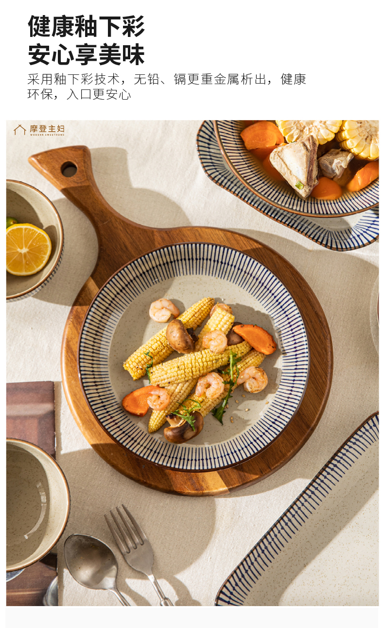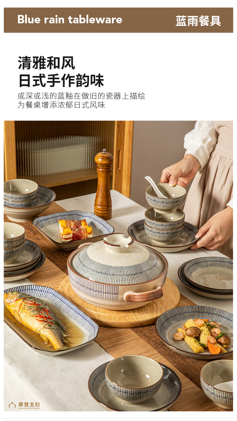 摩登主妇蓝雨日式碗碟套装陶瓷碗盘筷乔迁餐具套装碗家用2023新款