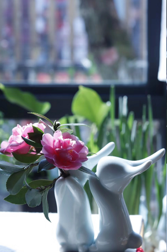 百货世界-汩湫安然作品海棠春睡系列双兔花插