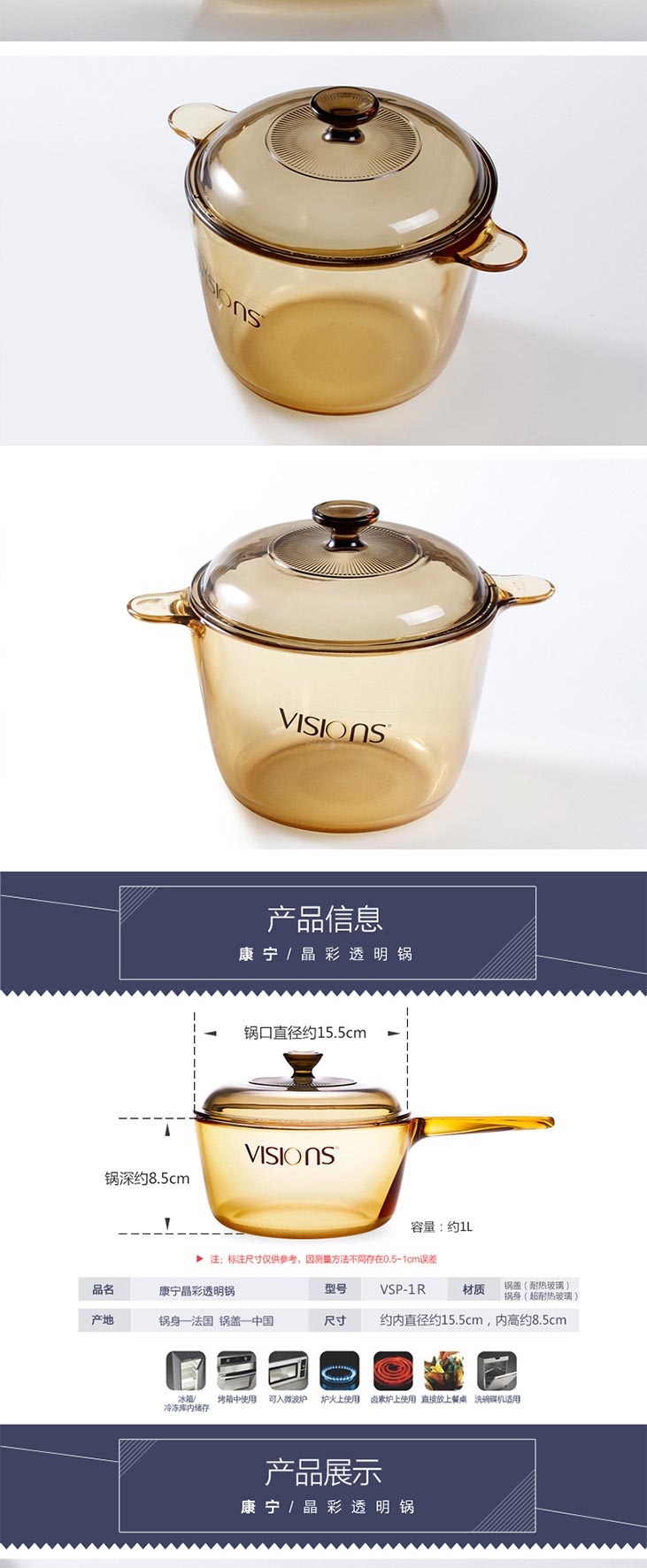 【组合】康宁VISIONS 3.5L+1L晶彩透明锅2件套( VS-35+VSP-1R)