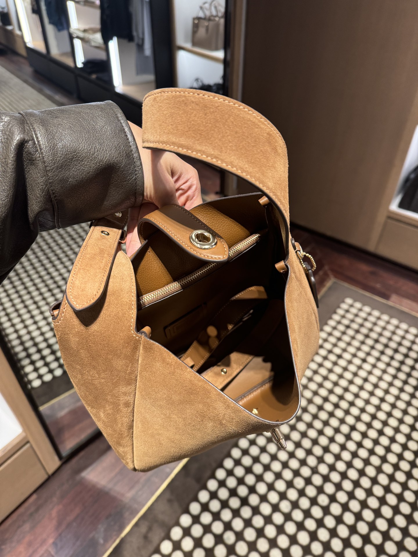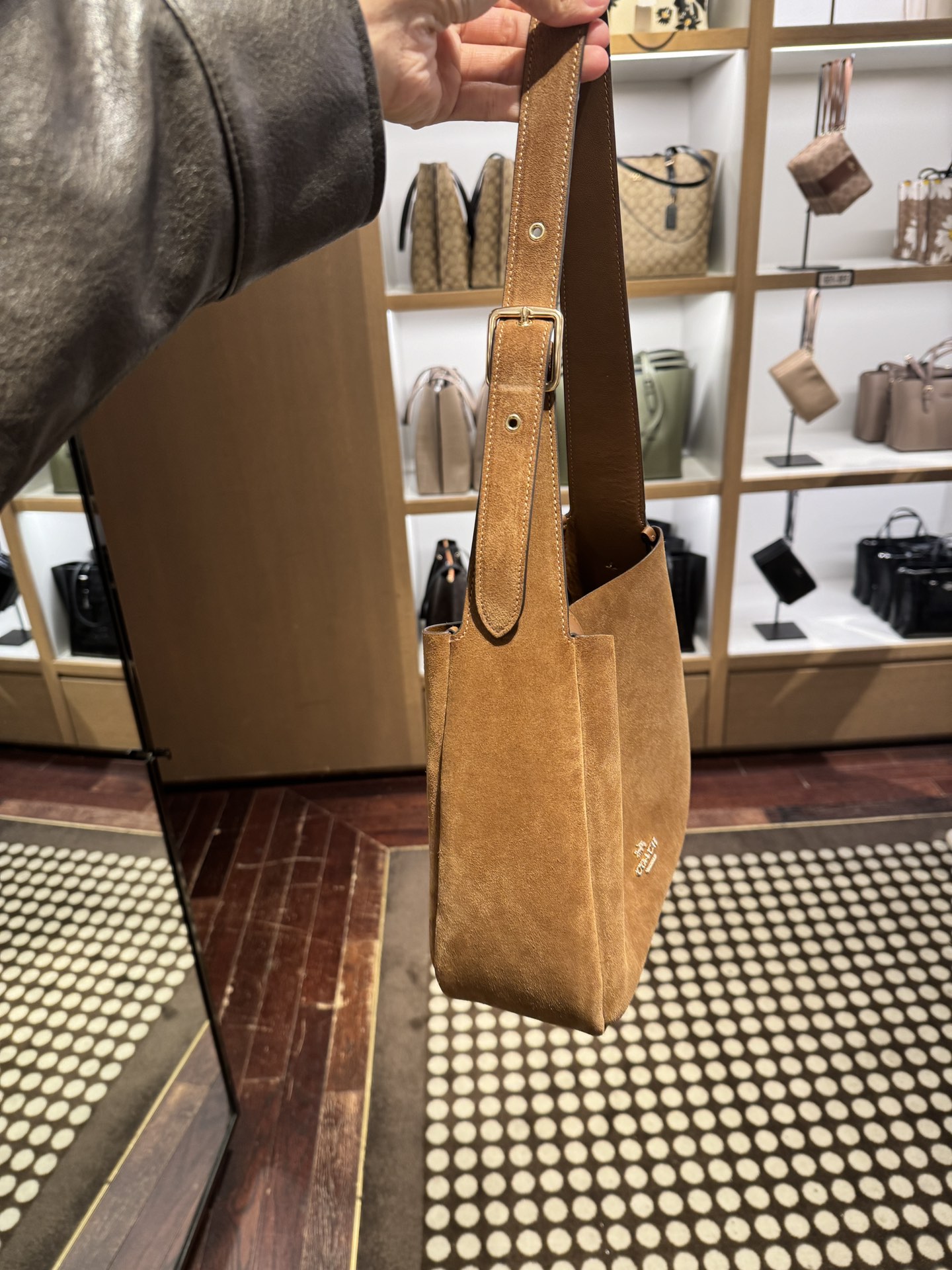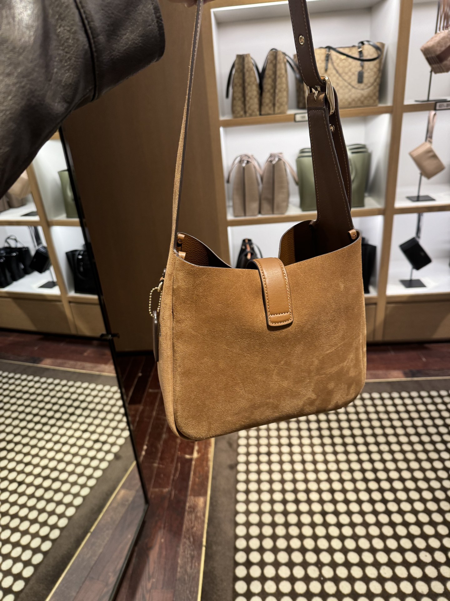 到手价1899元 Coach新品Hadley 腋下斜挎包,洋气翻毛皮棕色真的有气质 尺寸25x24x8cm 美国代购,无中文标签,介意慎拍