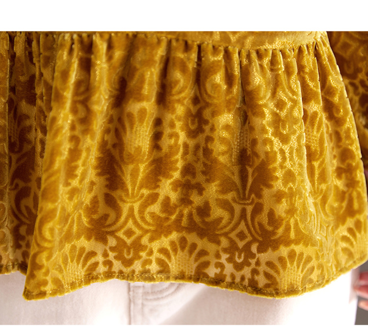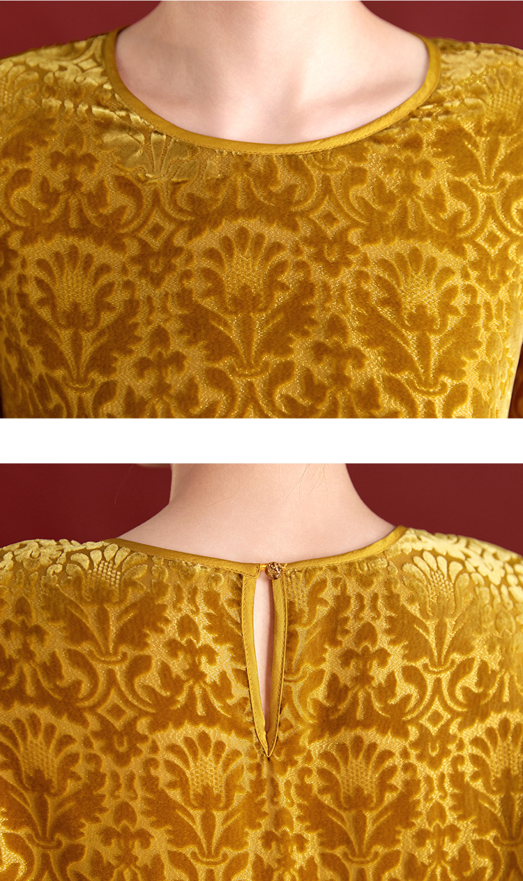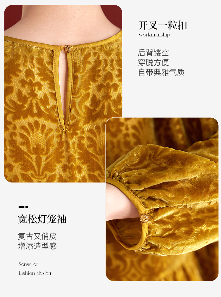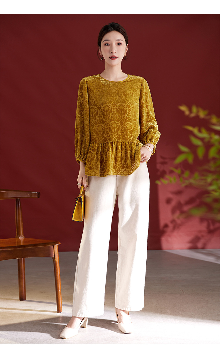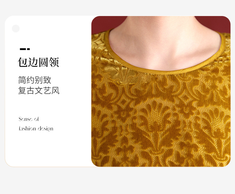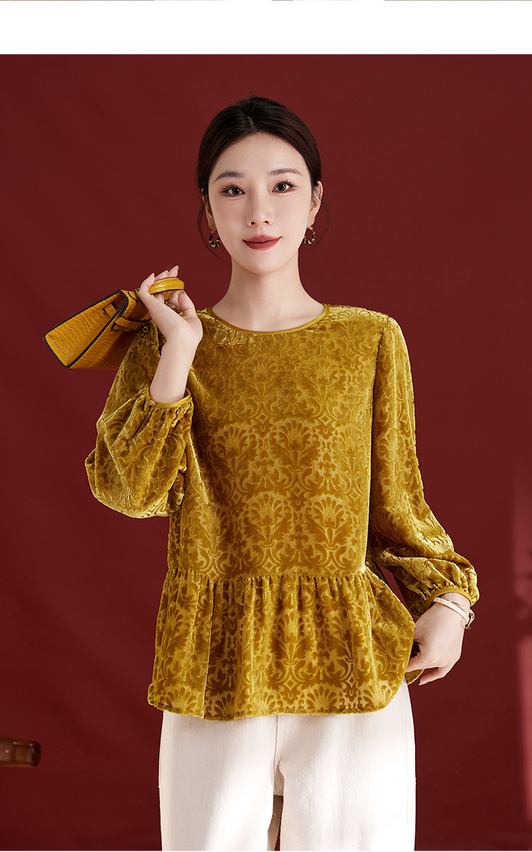 QS真丝丝绒女上衣年轻减龄款国风拼接印花长袖圆领款女上衣T恤1307