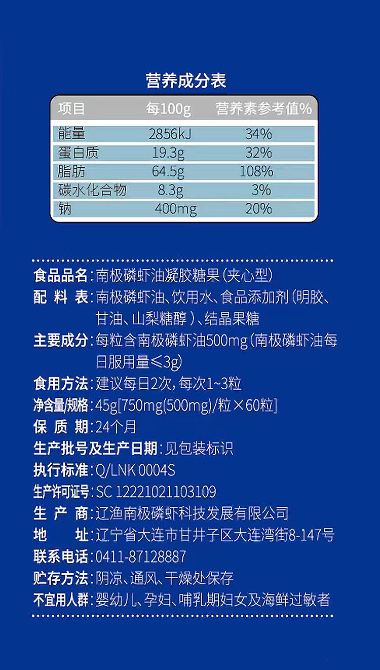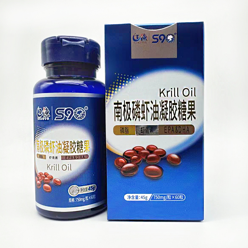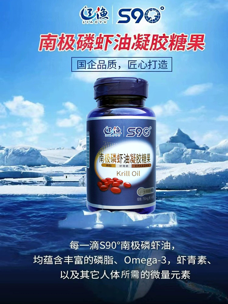 大连辽渔集团S90南极磷虾油凝胶糖果750mg*60粒 纯油型磷脂虾青素