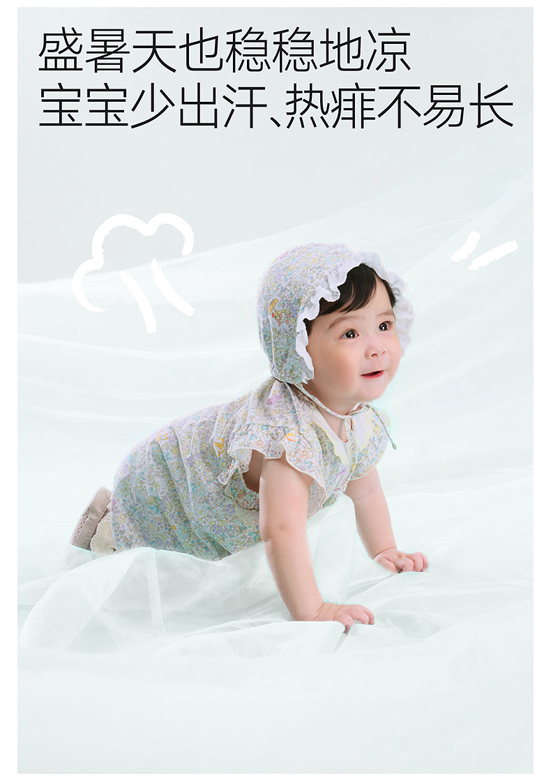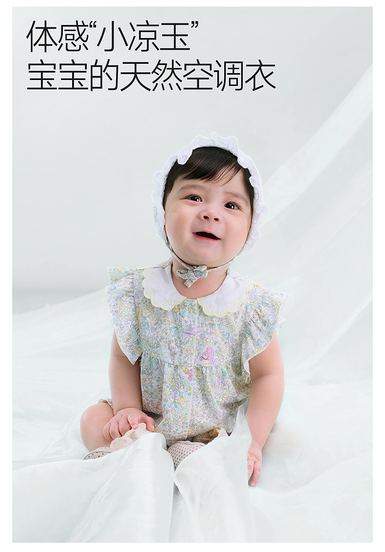 【商场同款】英氏婴儿连体衣女宝宝家居服连身衣夏季凉感短袖哈衣