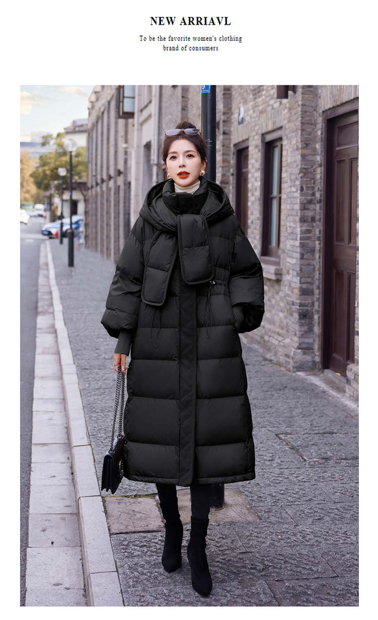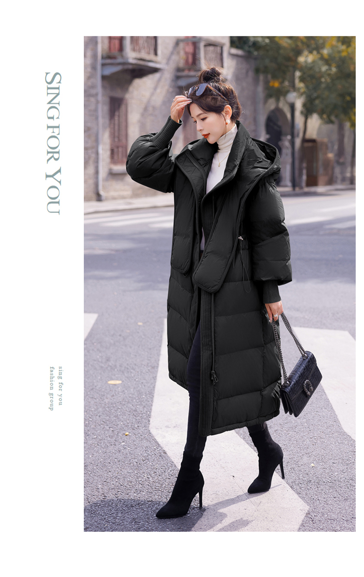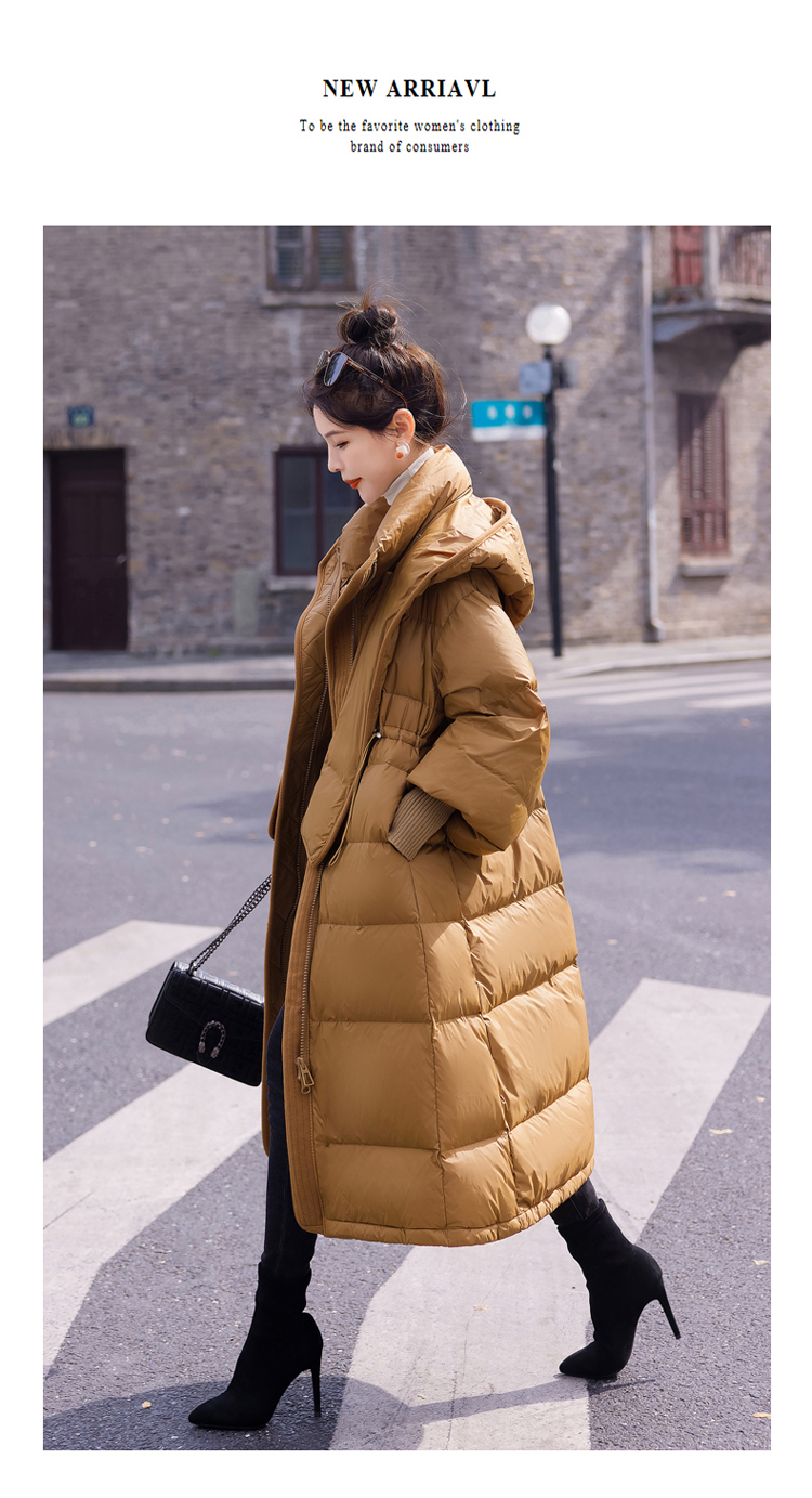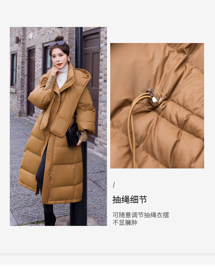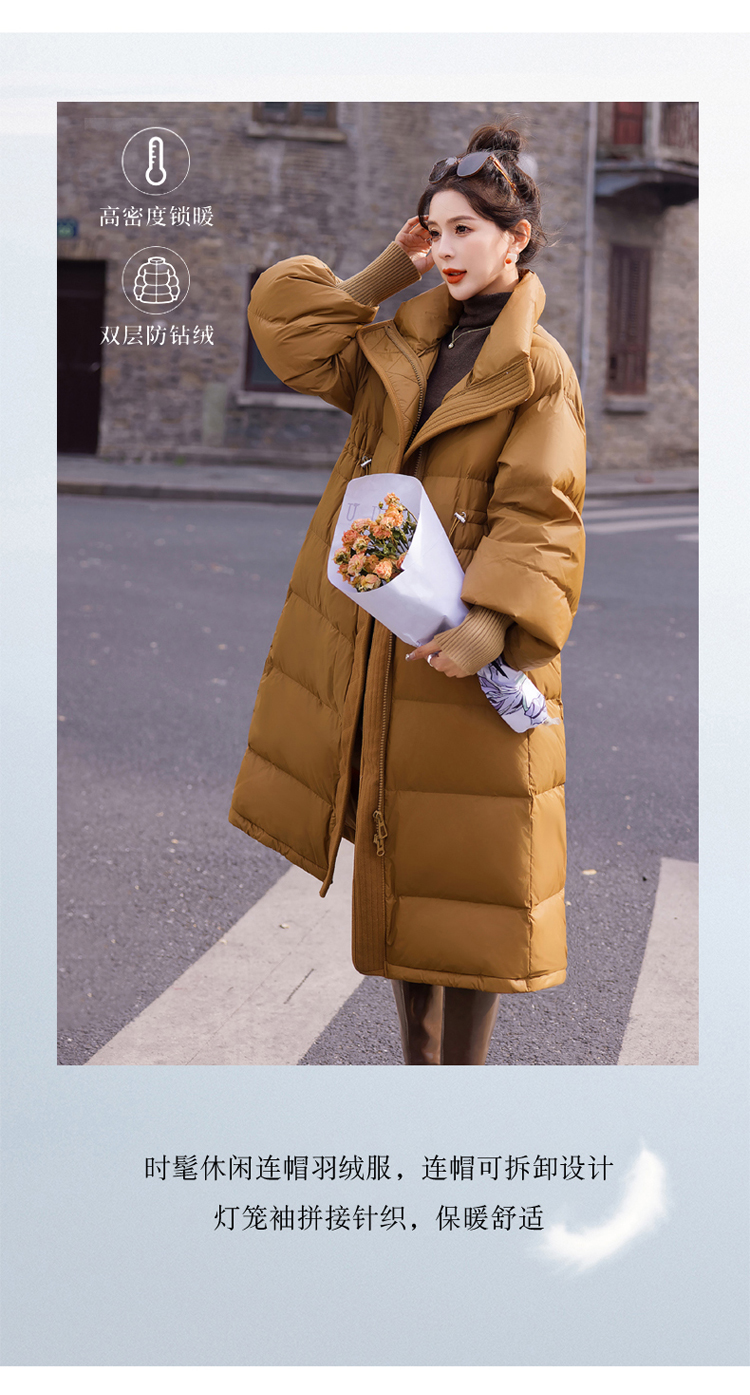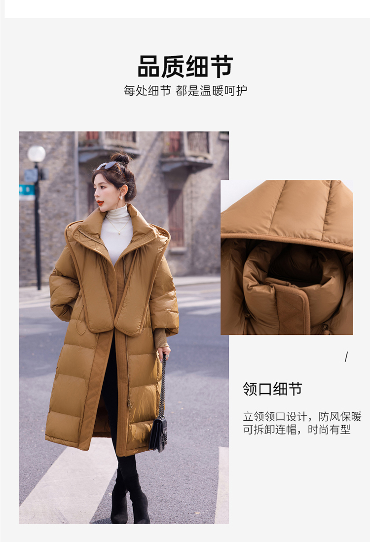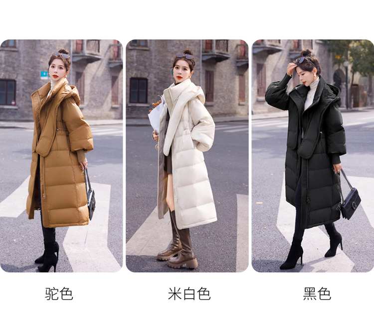冬装新款,90白鸭绒加厚长款连帽羽绒服(帽子可拆卸)HR-YJLY9008