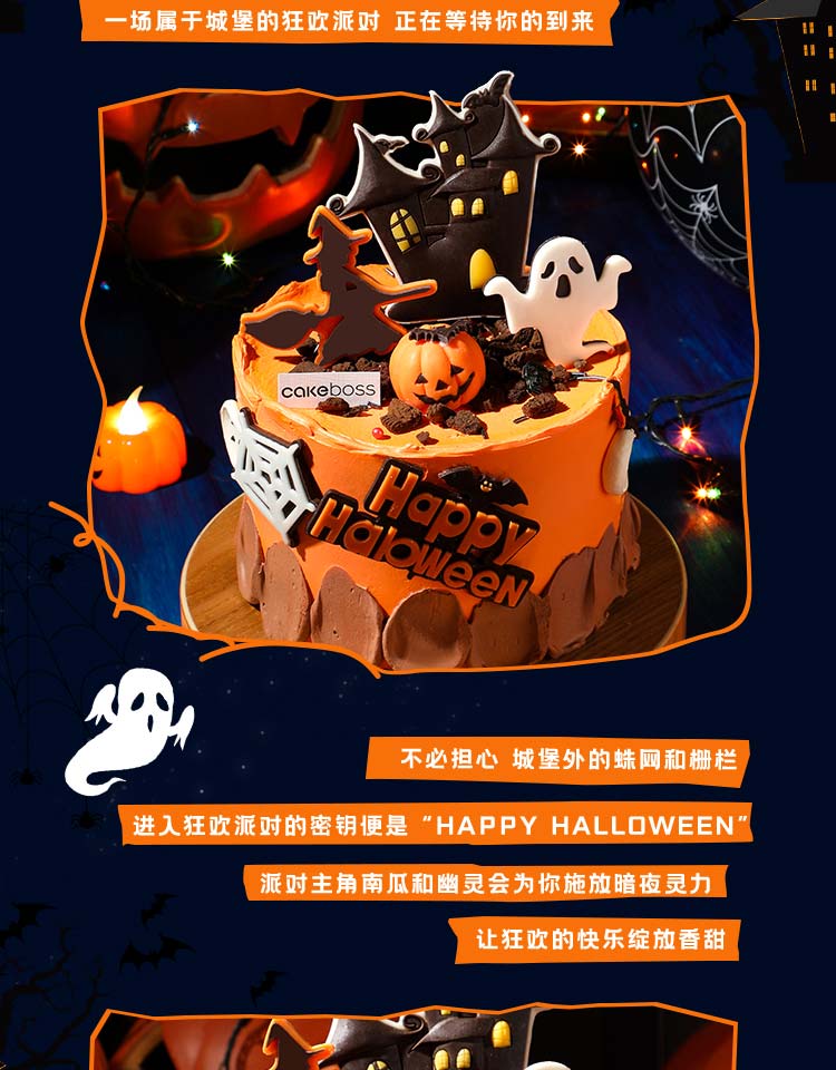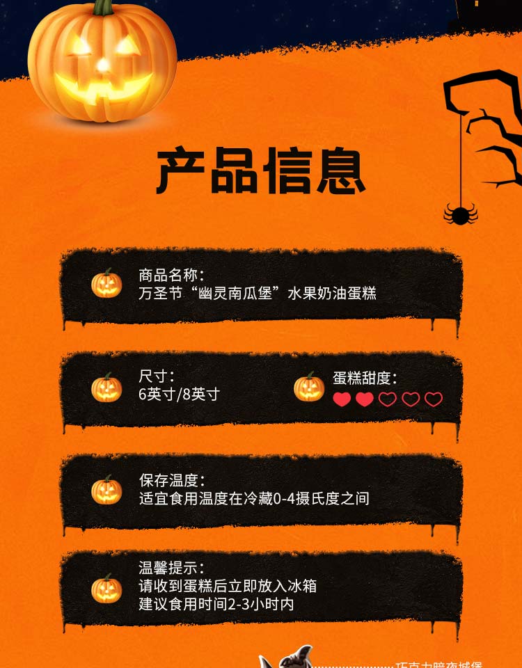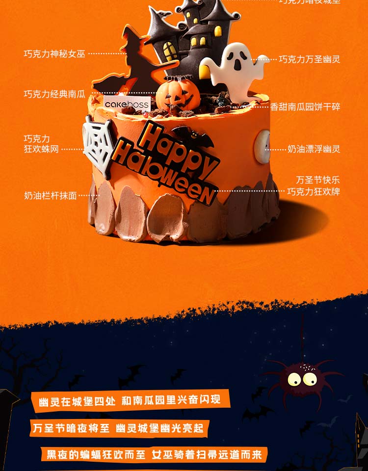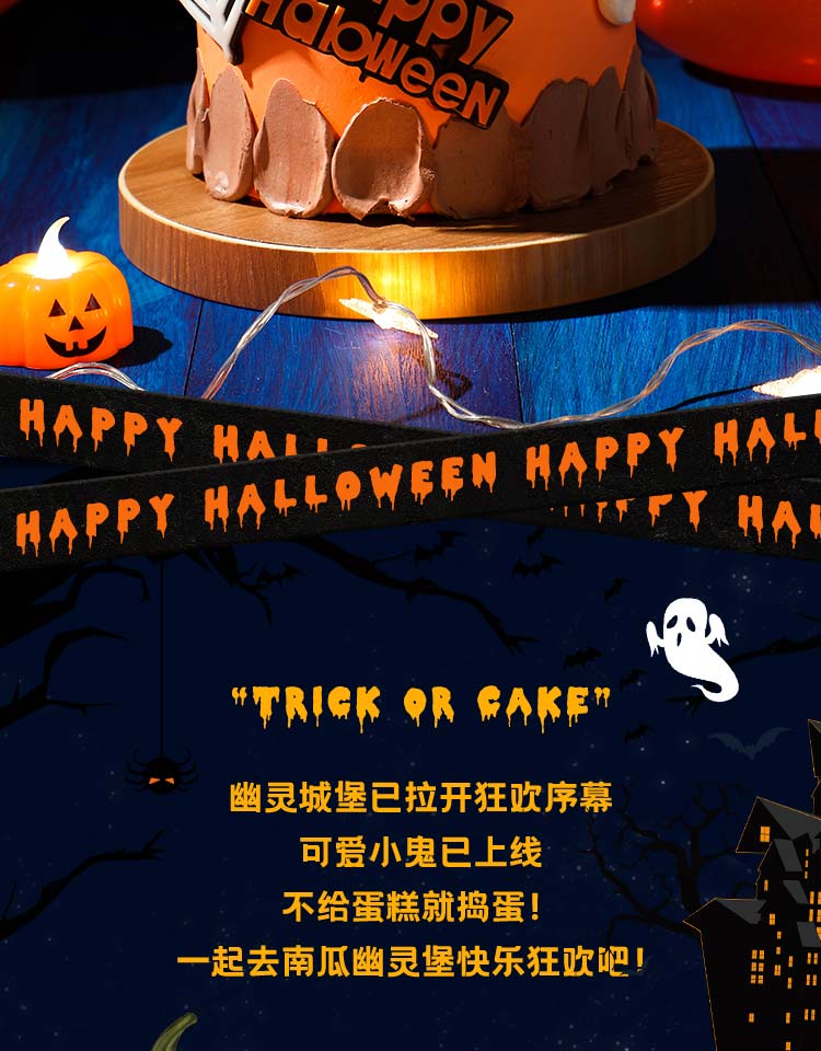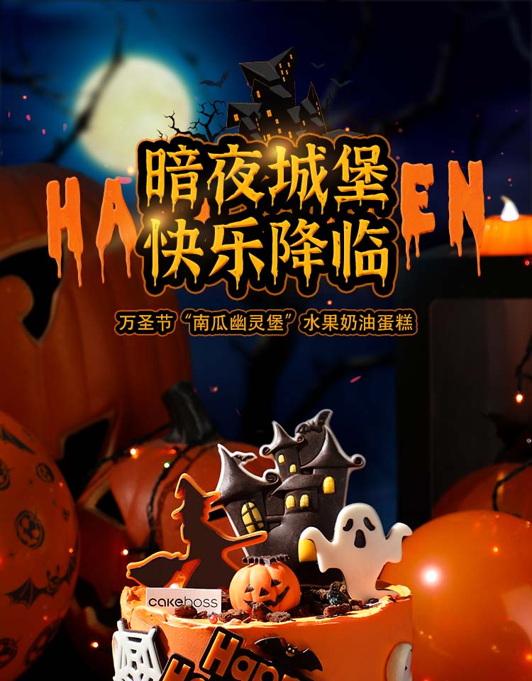 万圣节“南瓜幽灵堡”动物奶油鲜果蛋糕